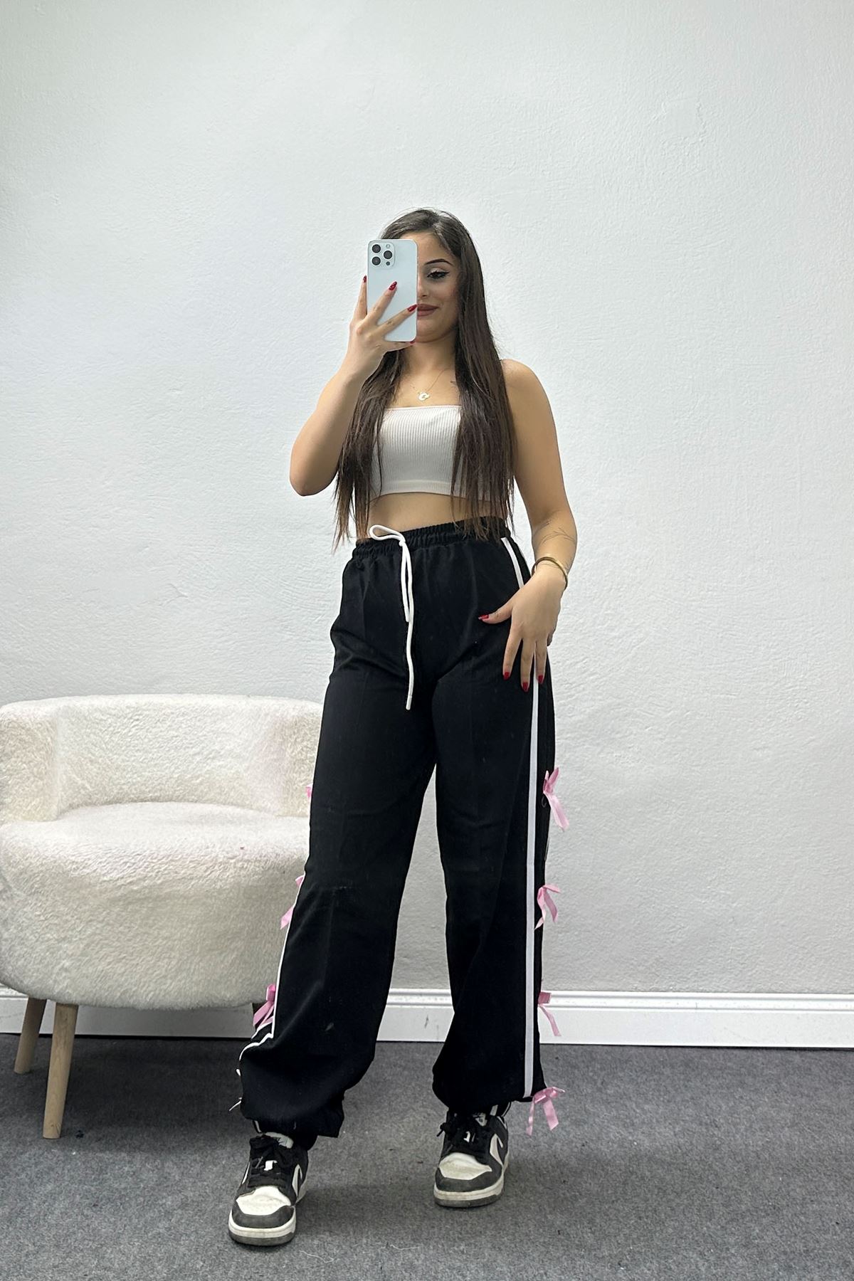 Kurdele Detaylı 2 İplik Eşofman Altı Siyah - 50528.1857.