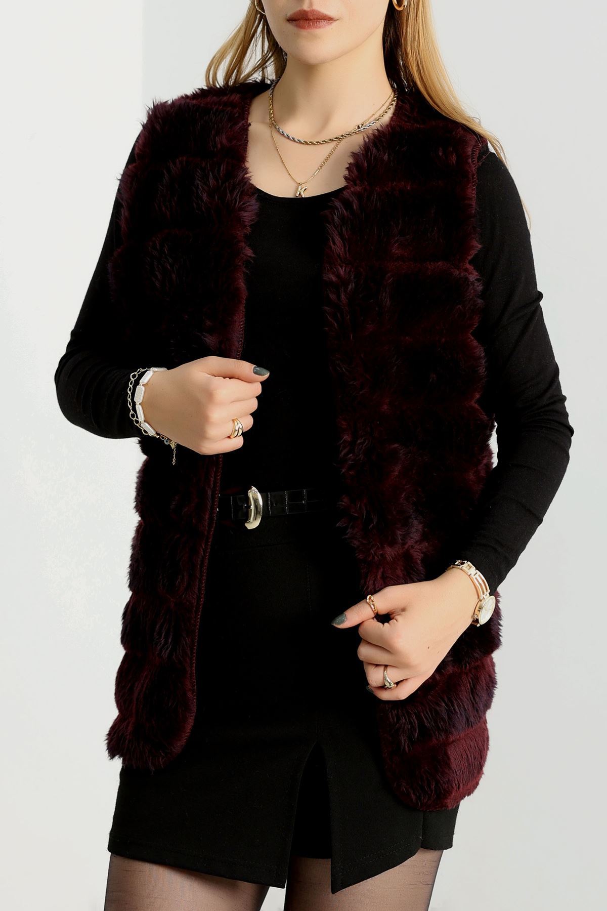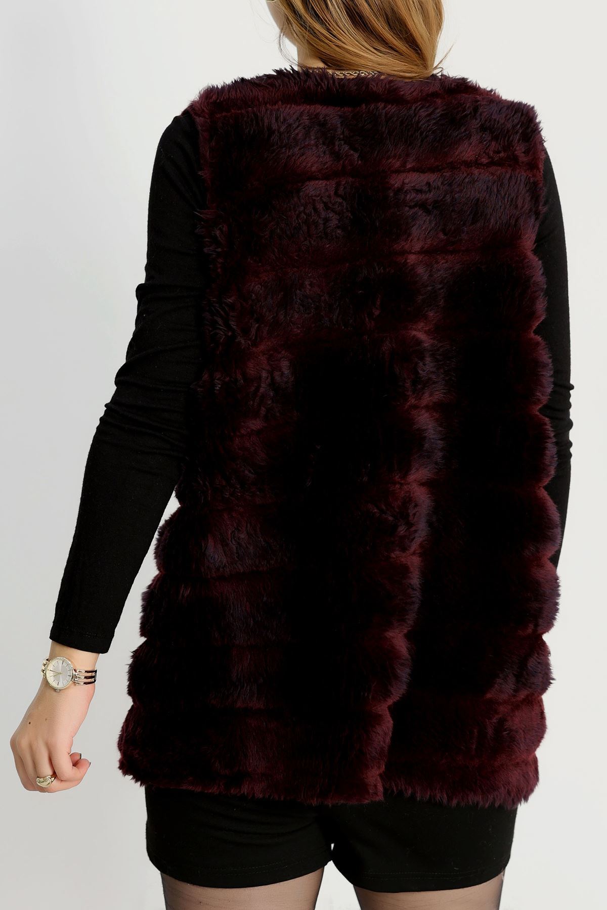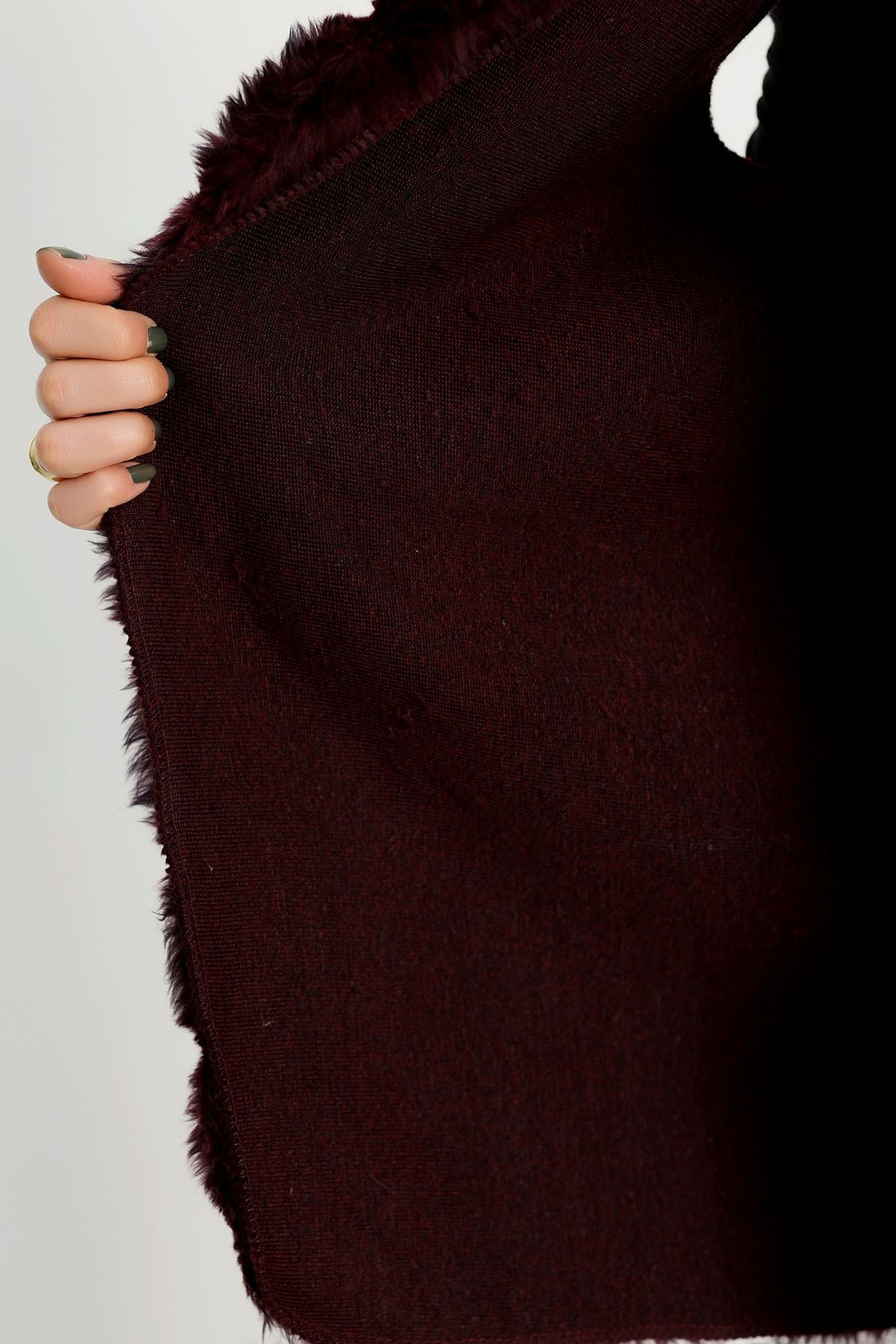 Kürk Görünümlü Yelek Bordo - 80899.107.