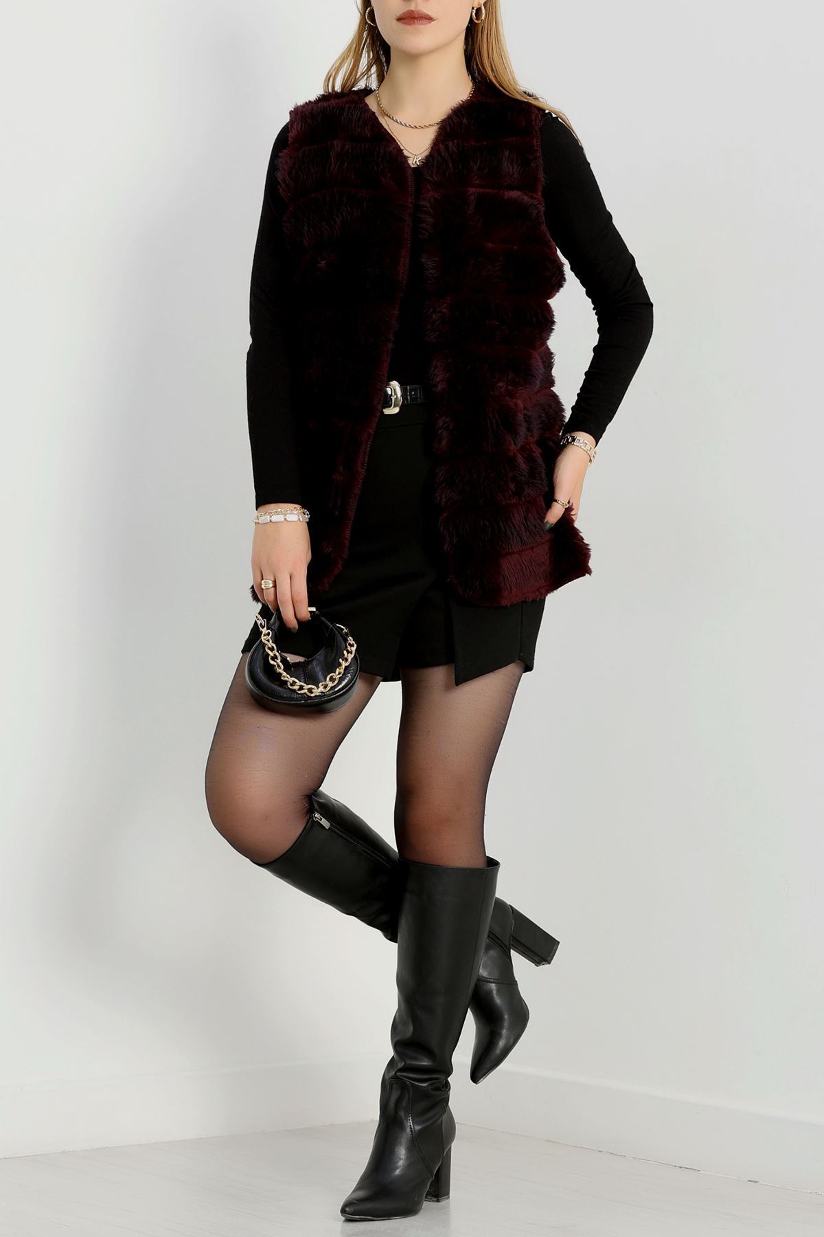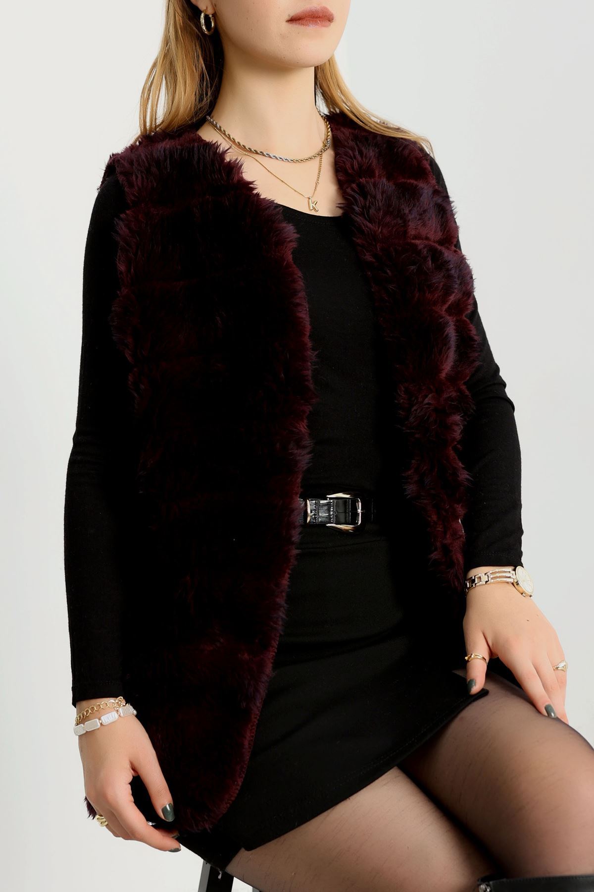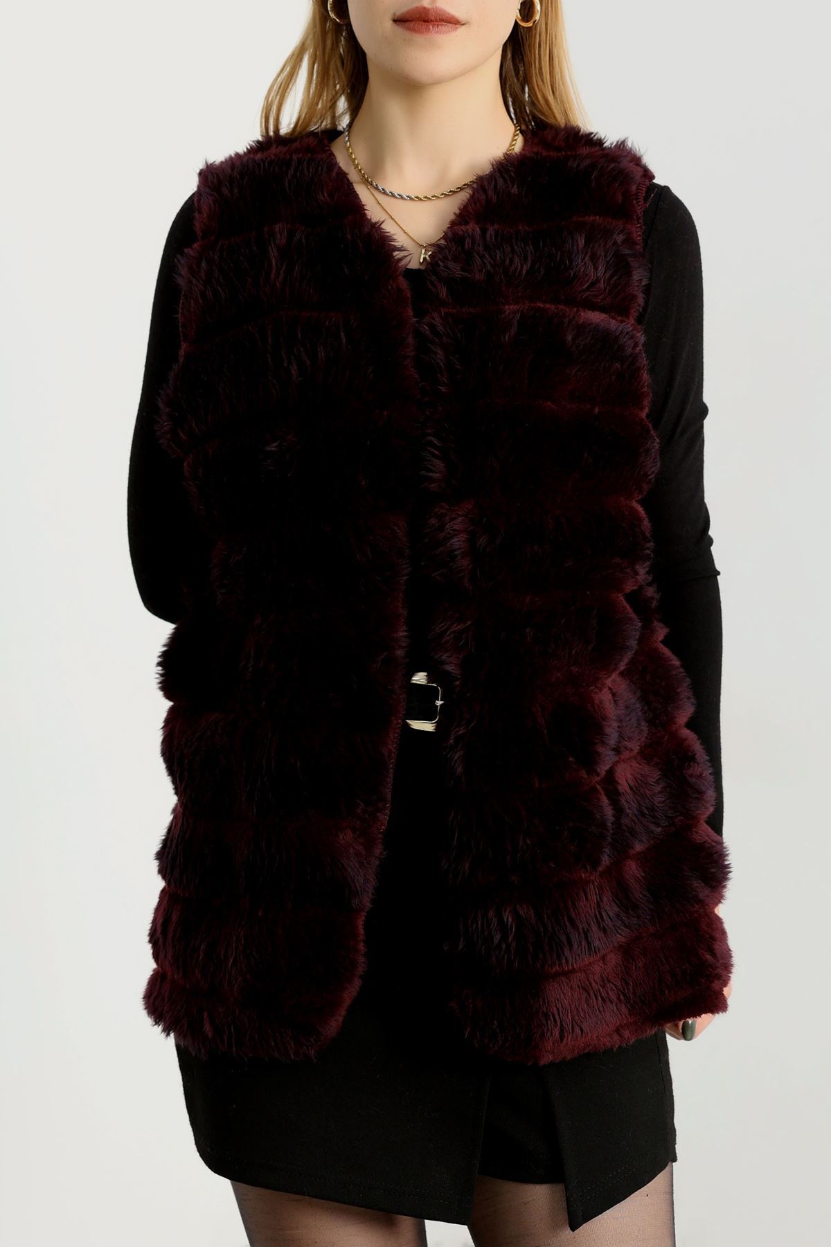 Kürk Görünümlü Yelek Bordo - 80899.107.