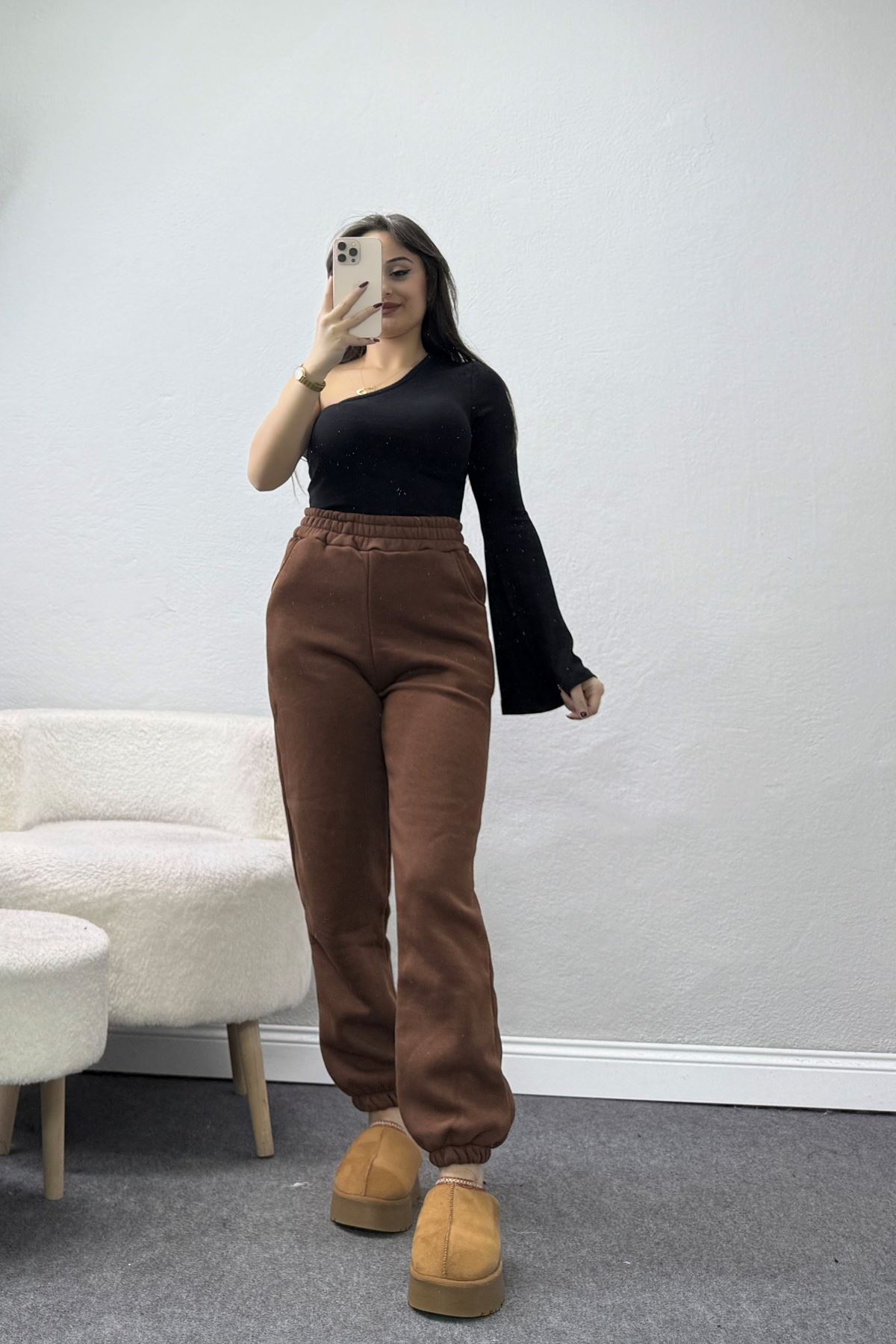 Lastikli 3 İplik Eşofman Altı Kahve1 - 20956.1878.