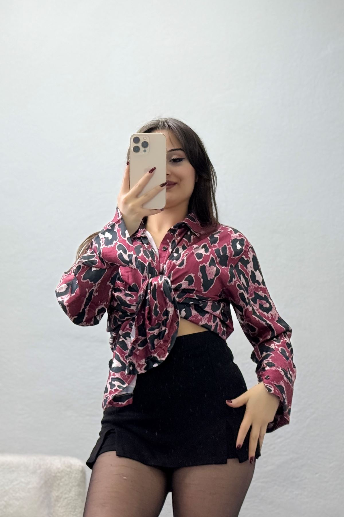 Leopar Desenli Saten Gömlek Gülkurusu - 90139.1949.