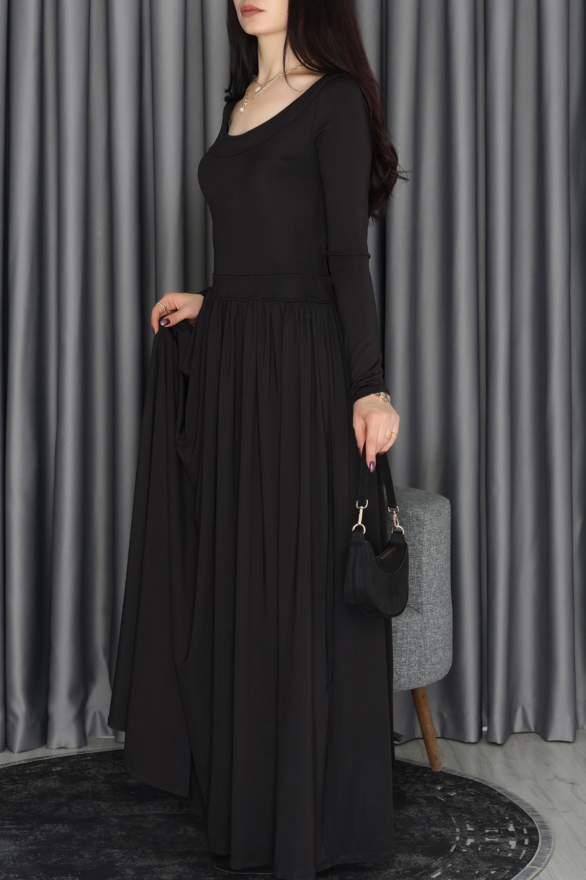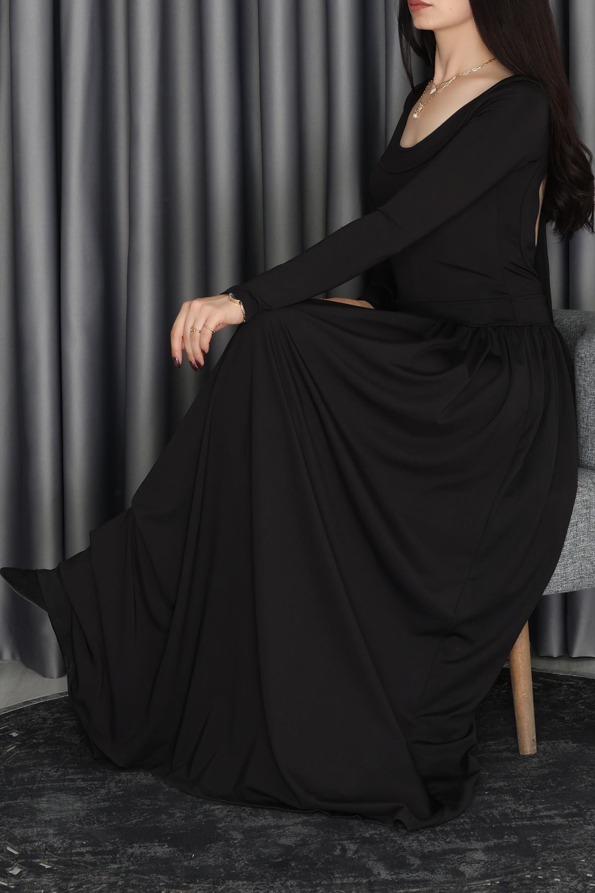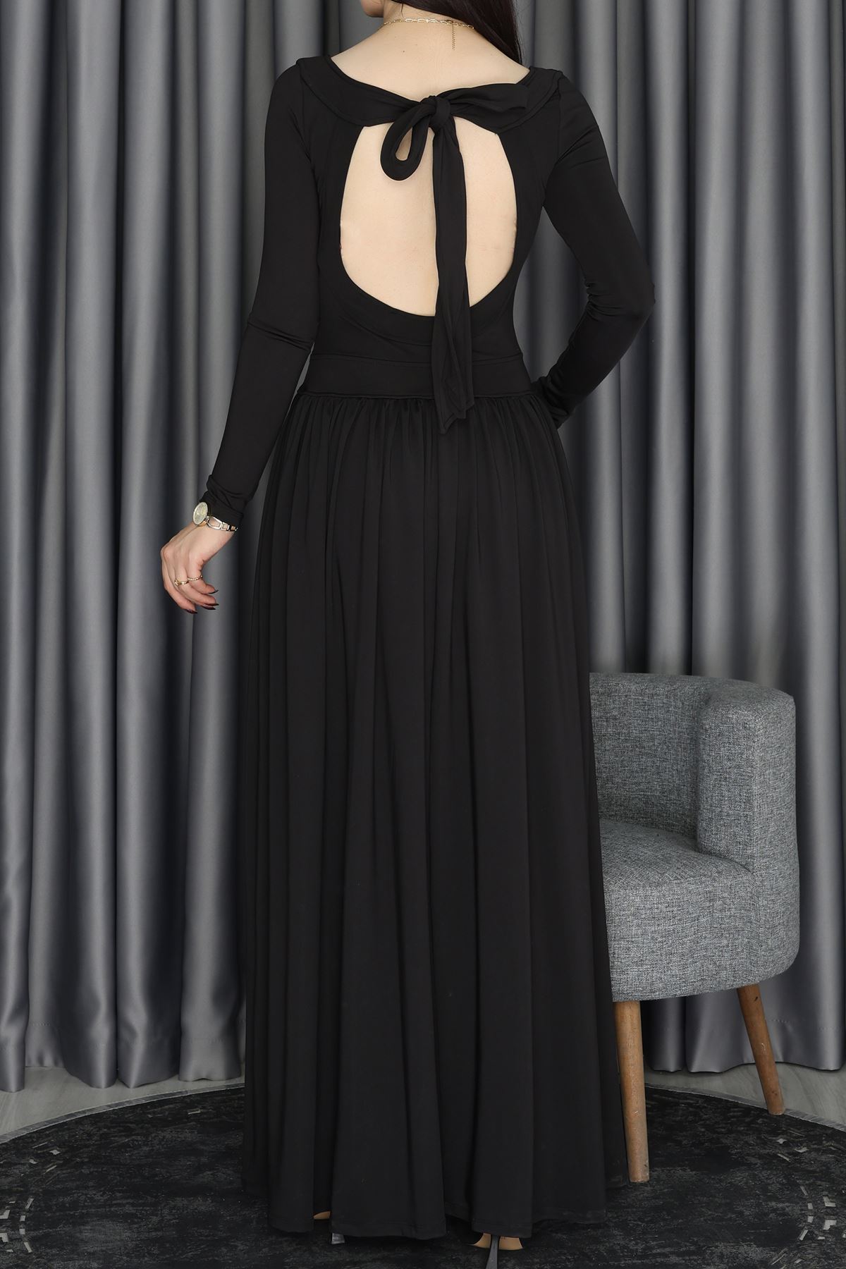 Loch Bel Büzgülü Sırt Fiyonklu Elbise Siyah - 2681.1997.