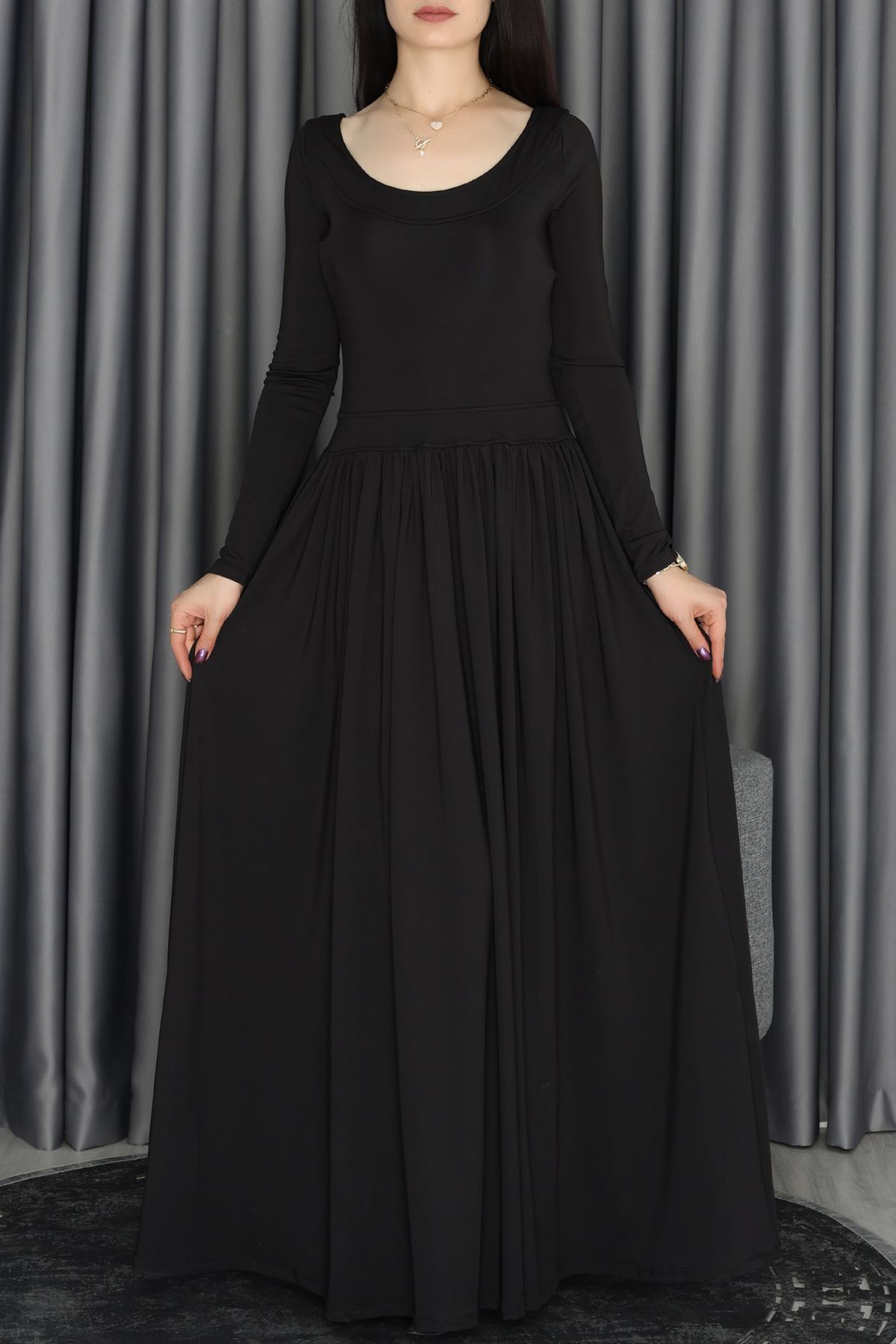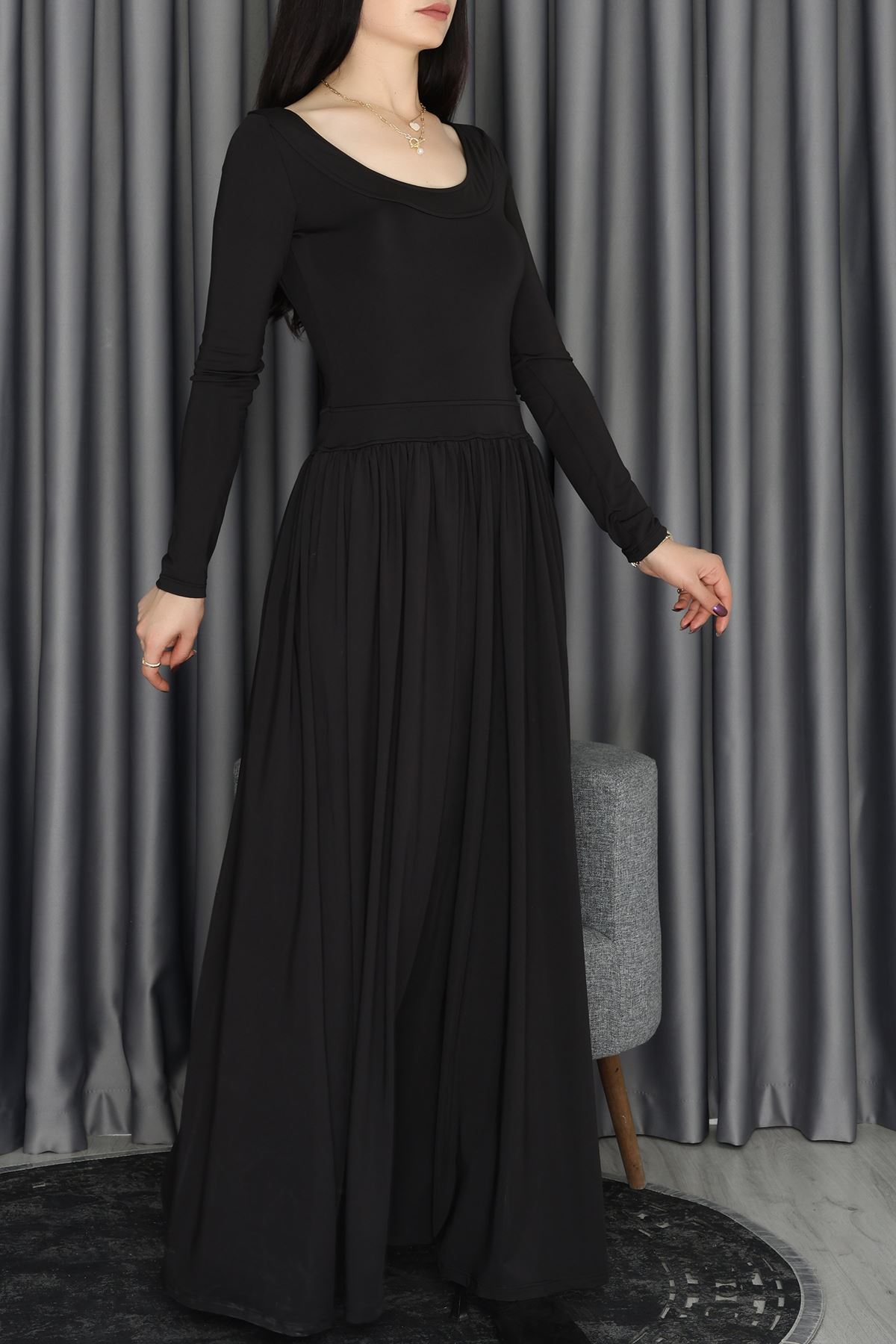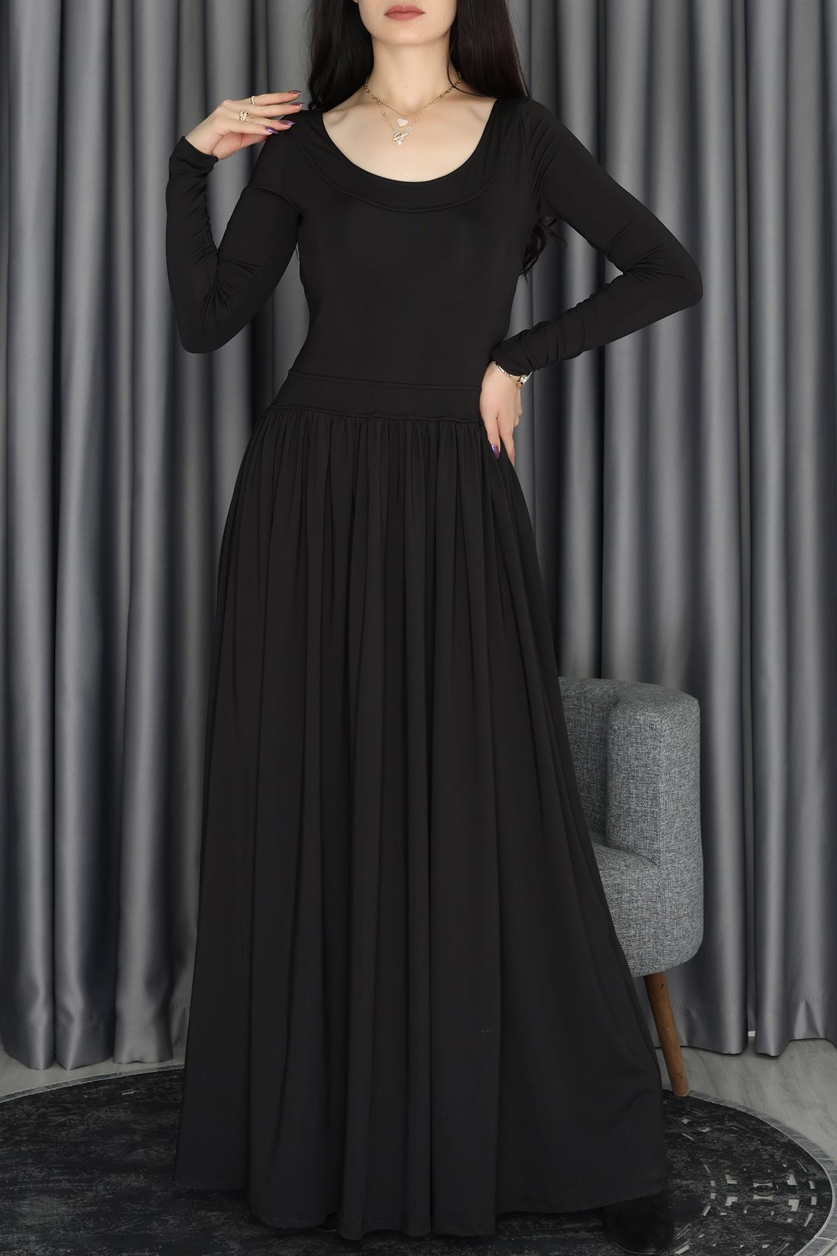 Loch Bel Büzgülü Sırt Fiyonklu Elbise Siyah - 2681.1997.