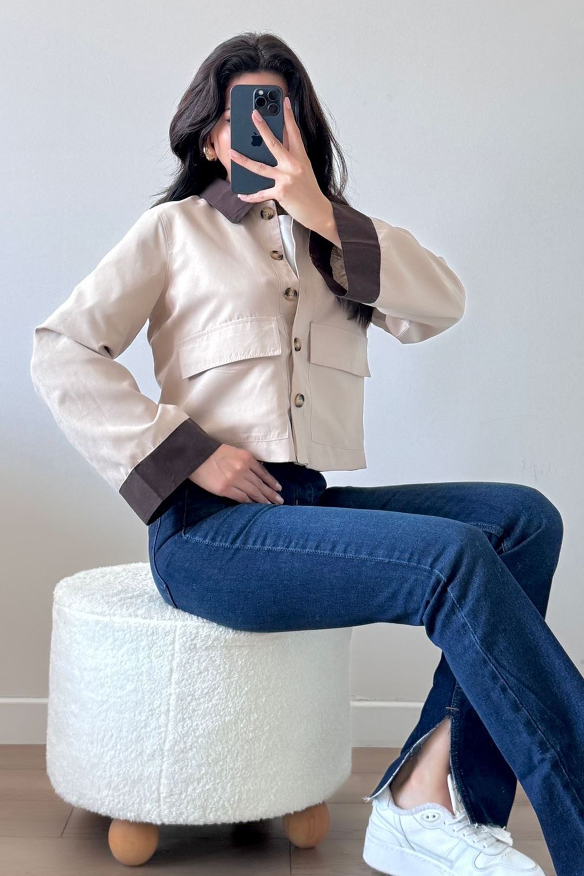 Loch Garnili Süet Trenç Ceket Bej - 2684.1997.