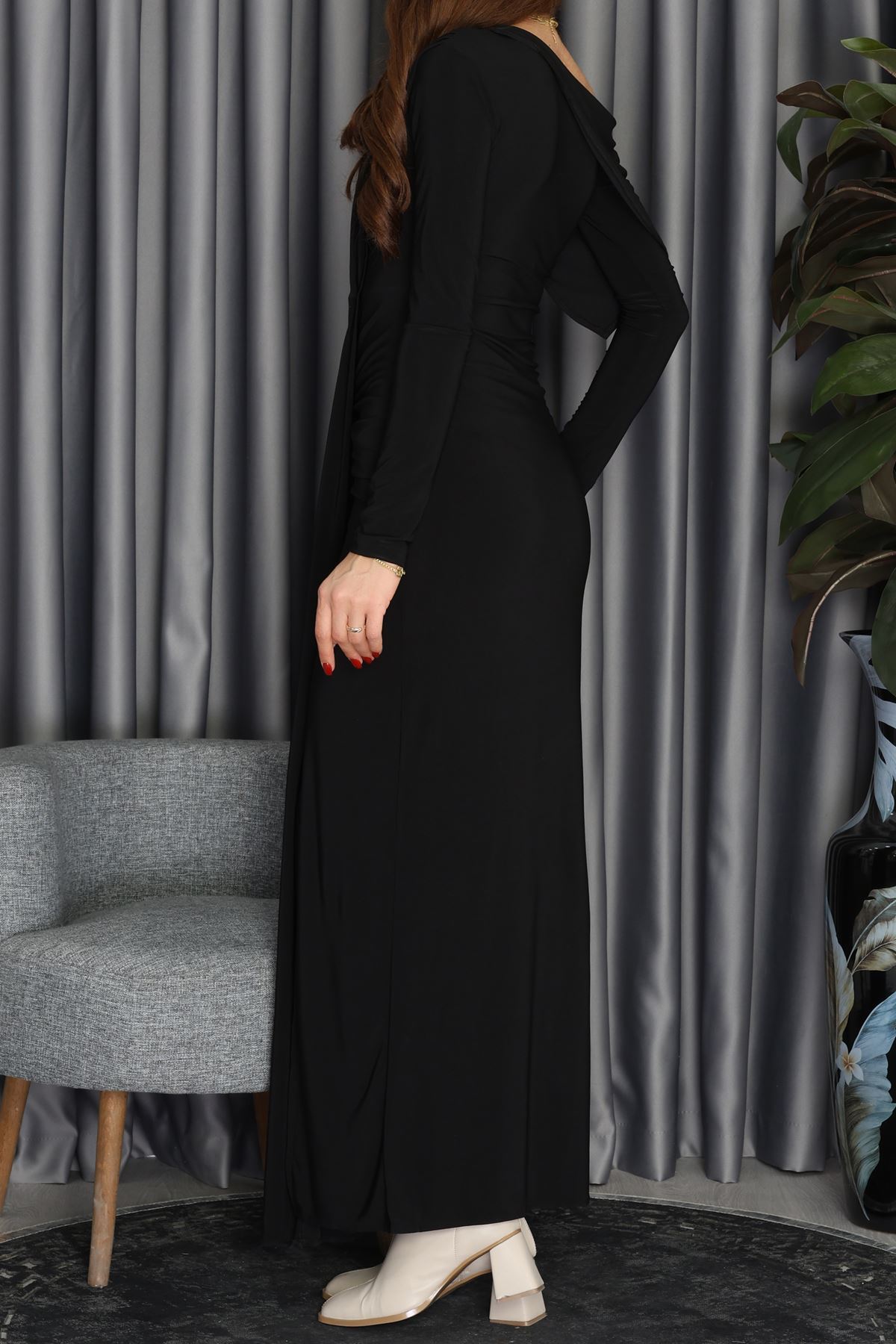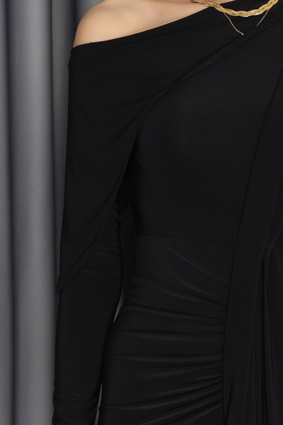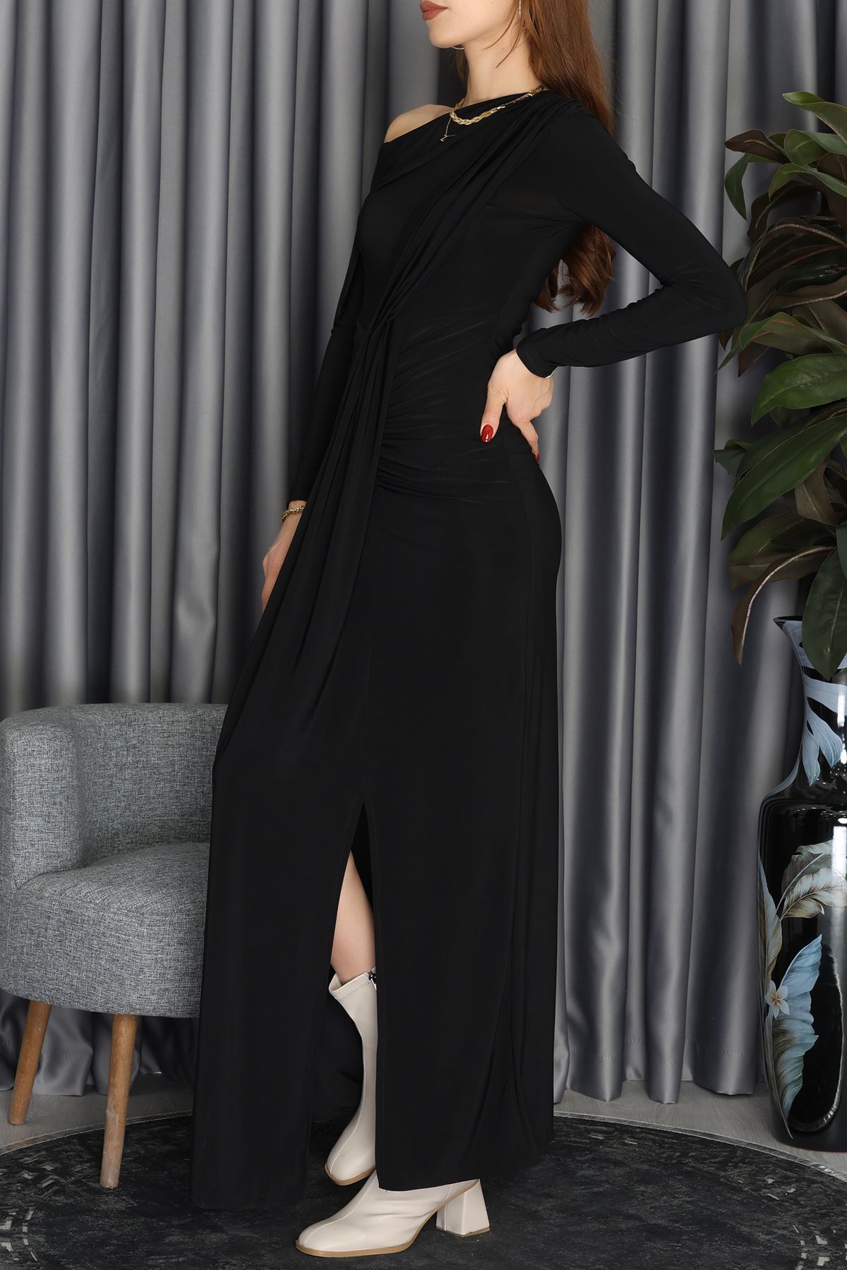 Loch Omuz Parcalı Çapraz Büzgülü Elbise Siyah - 2679.1997.