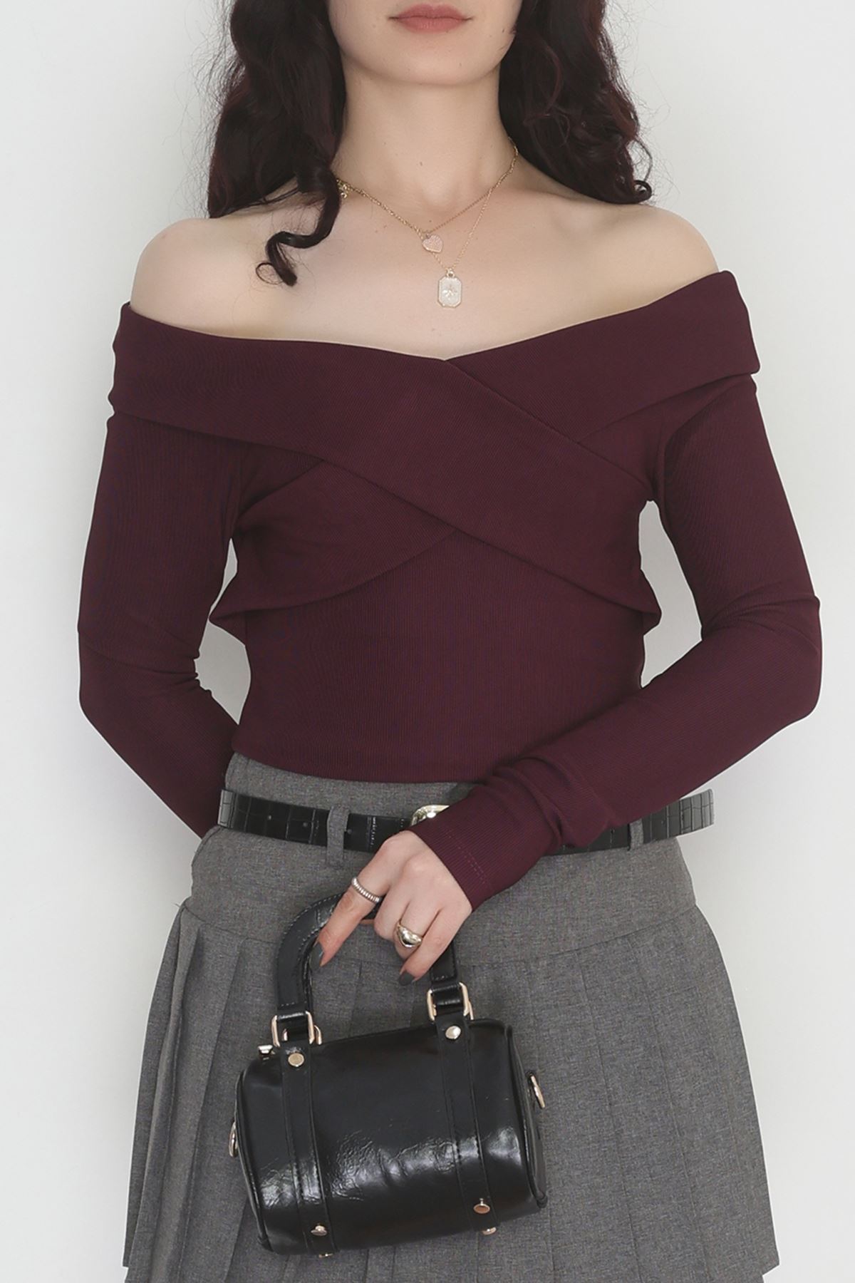 Madonna Yaka Kemer Detaylı Bluz Bordo - 4323.1595.