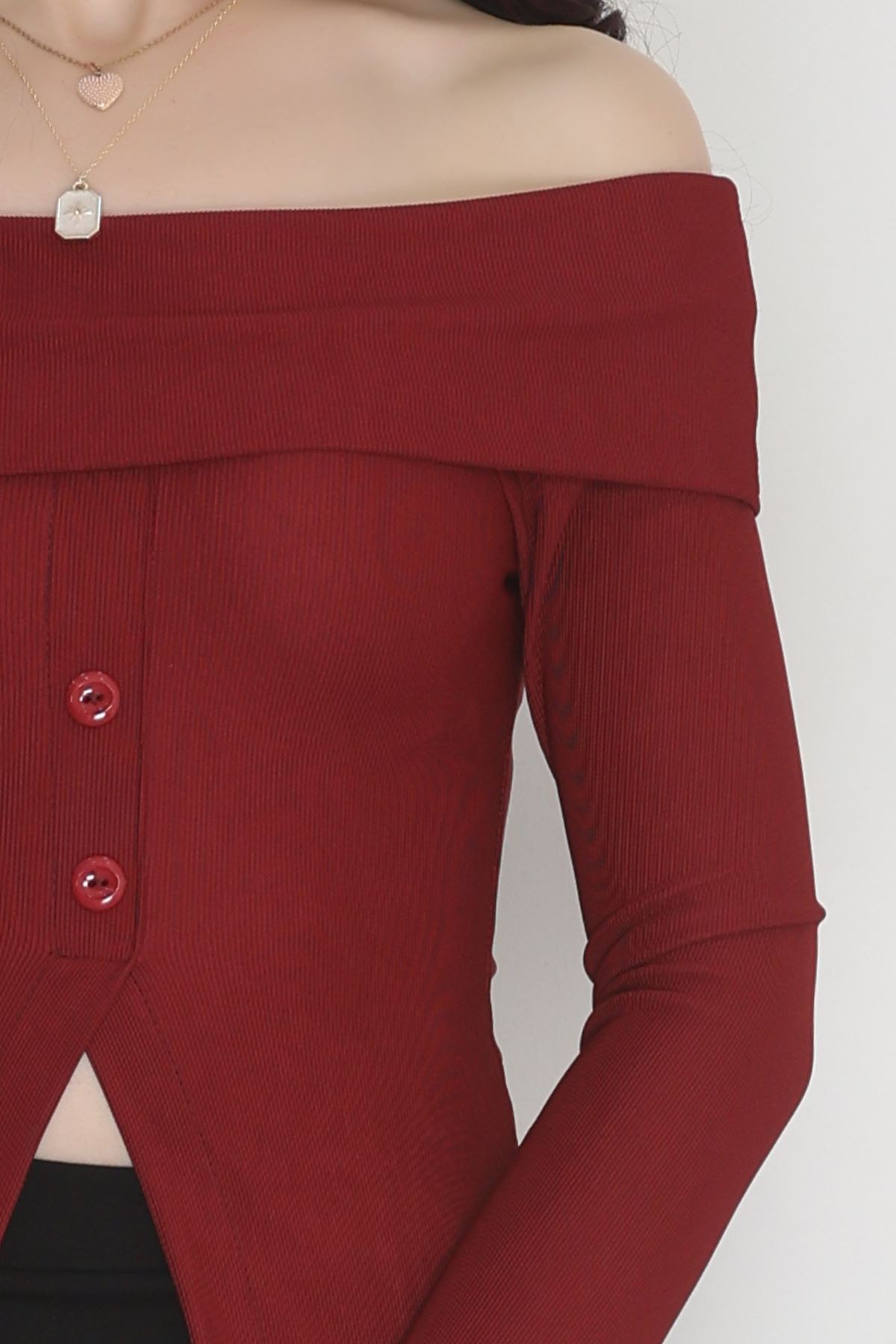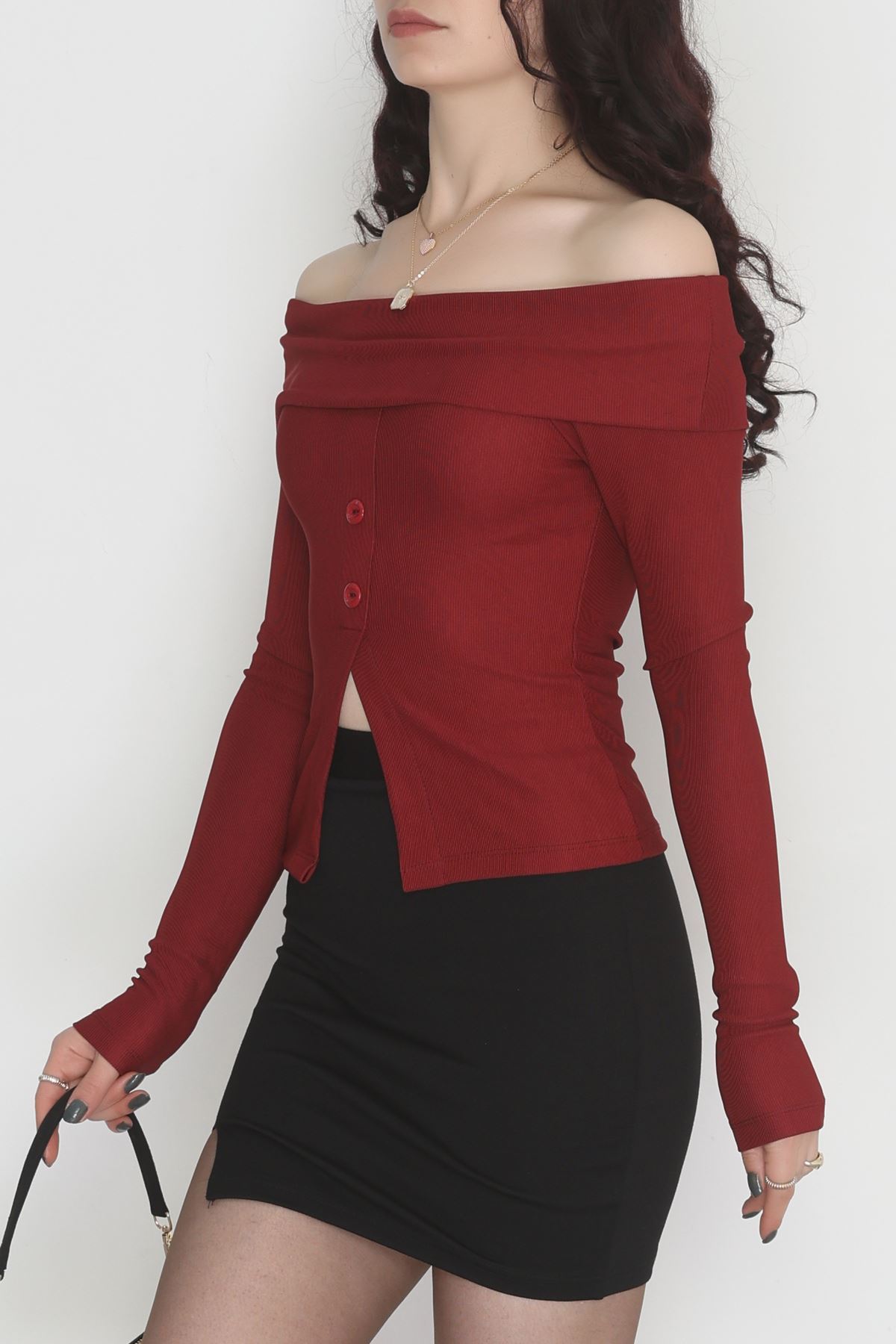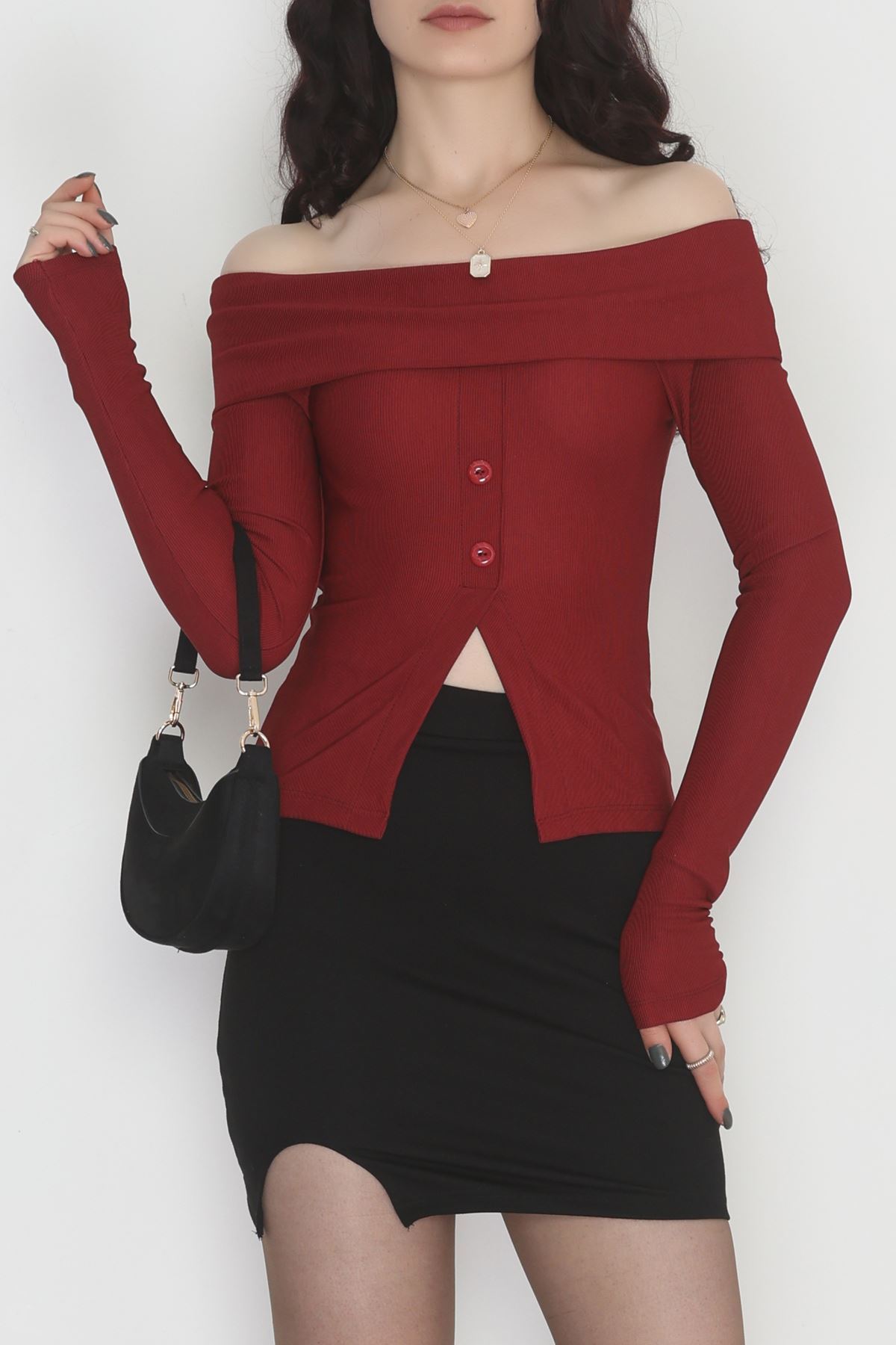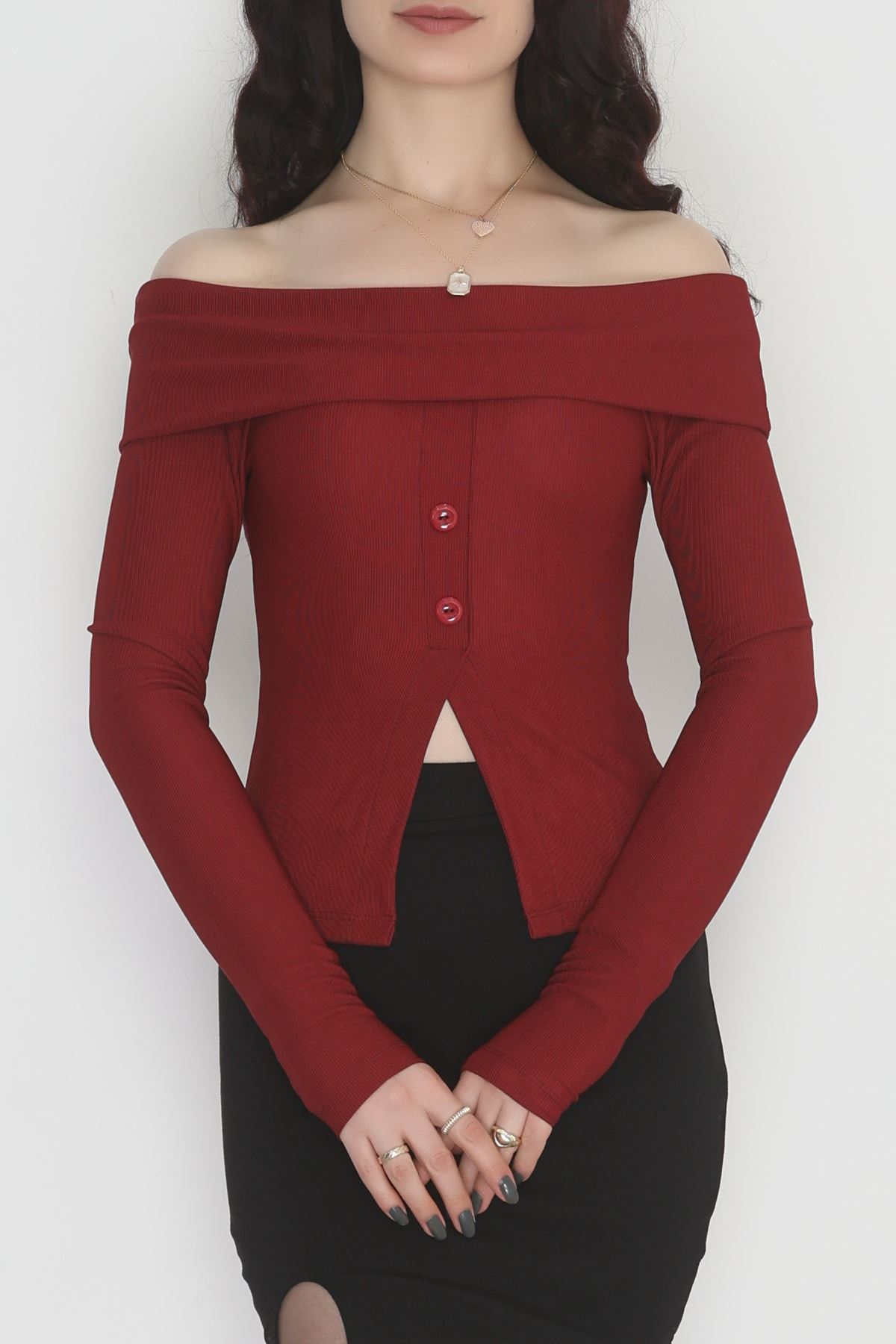 Madonna Yaka Düğmeli Bluz Bordo - 45620.1595.