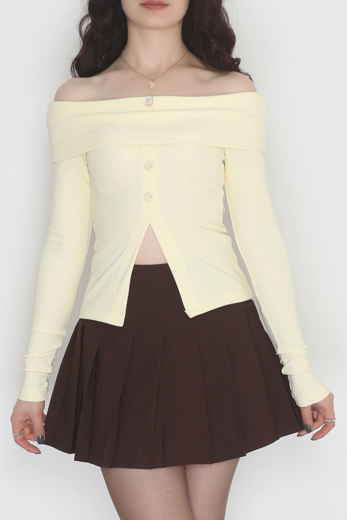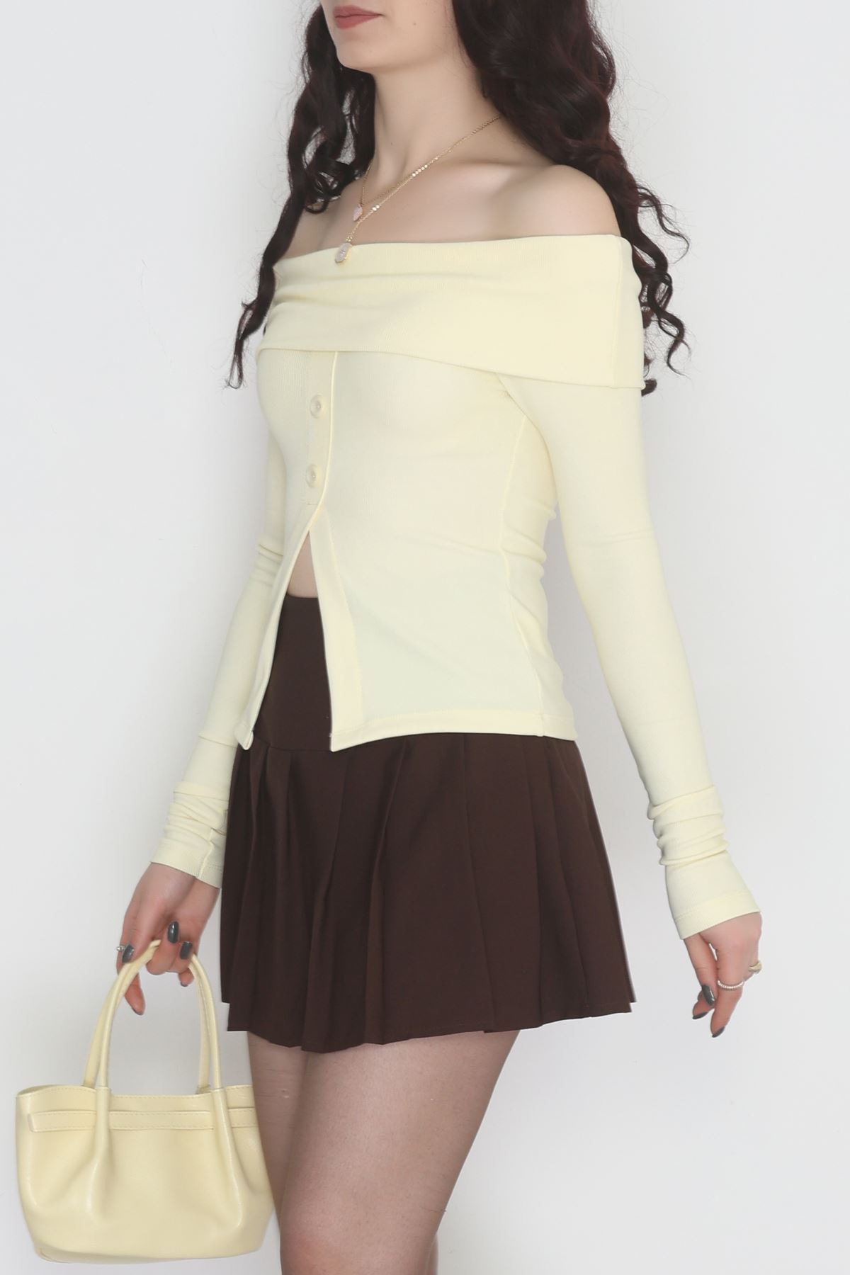 Madonna Yaka Düğmeli Bluz Sarı - 45620.1595.