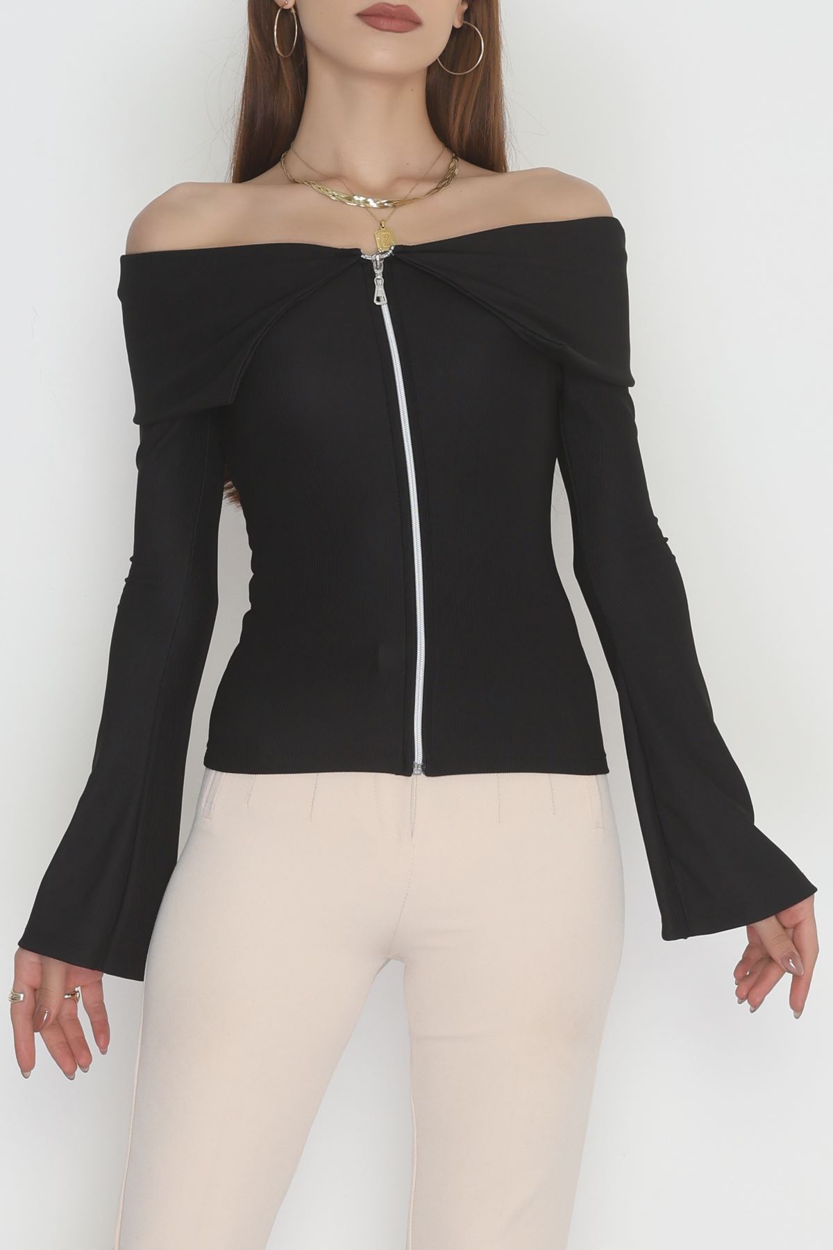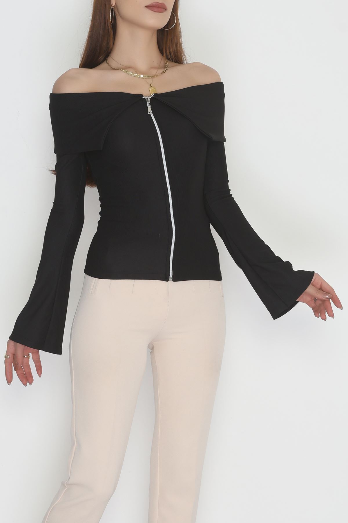 Madonna Yaka Fermuarlı Bluz Siyah - 4330.1595.