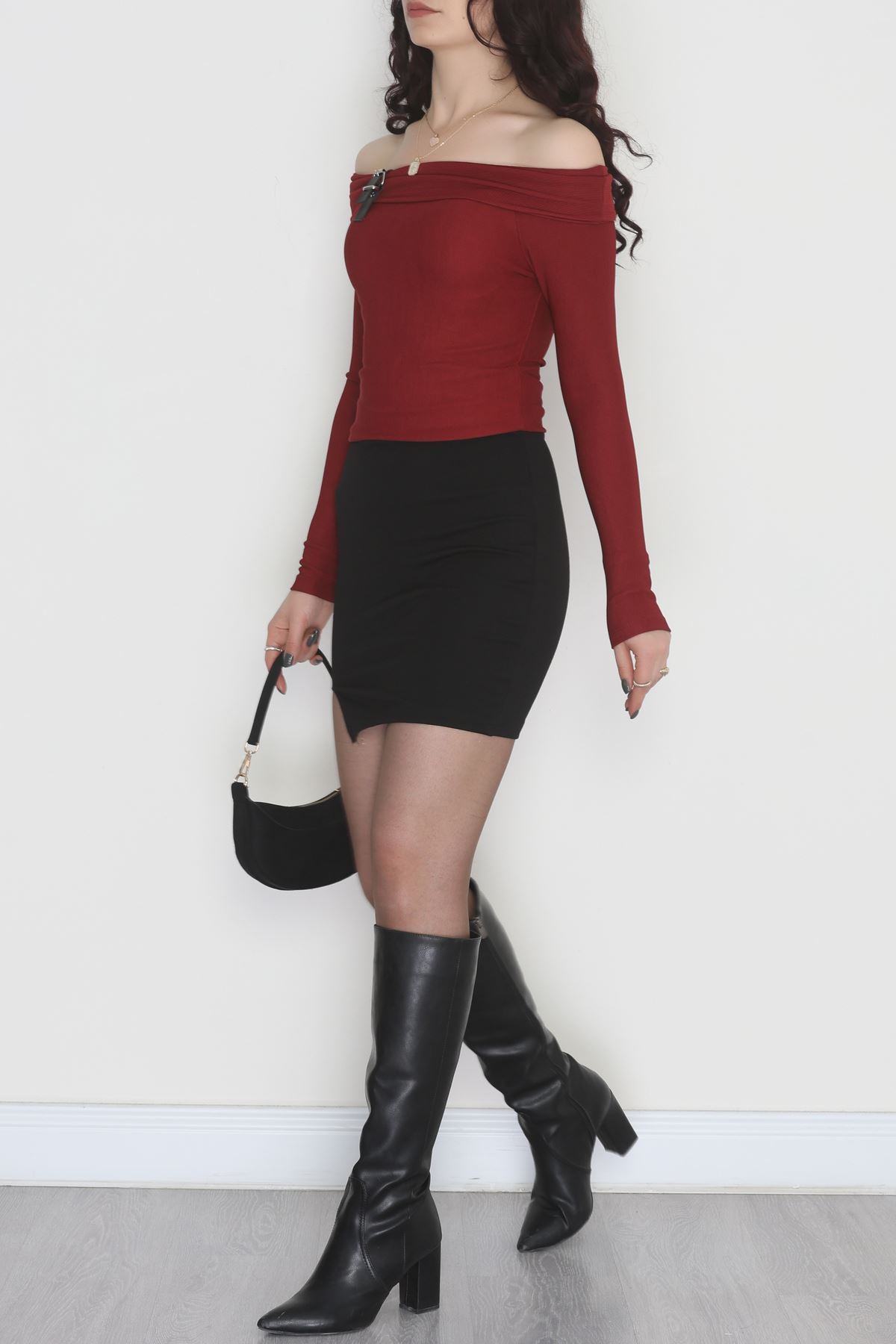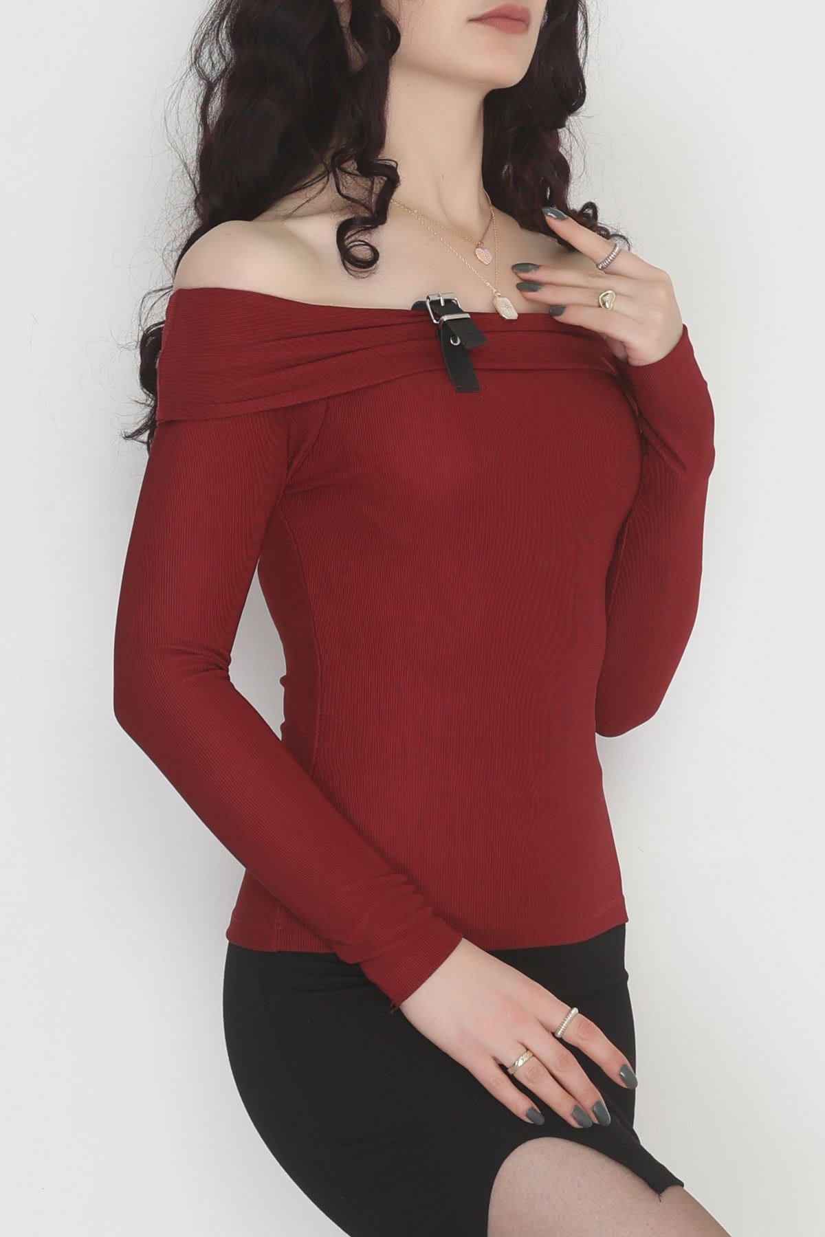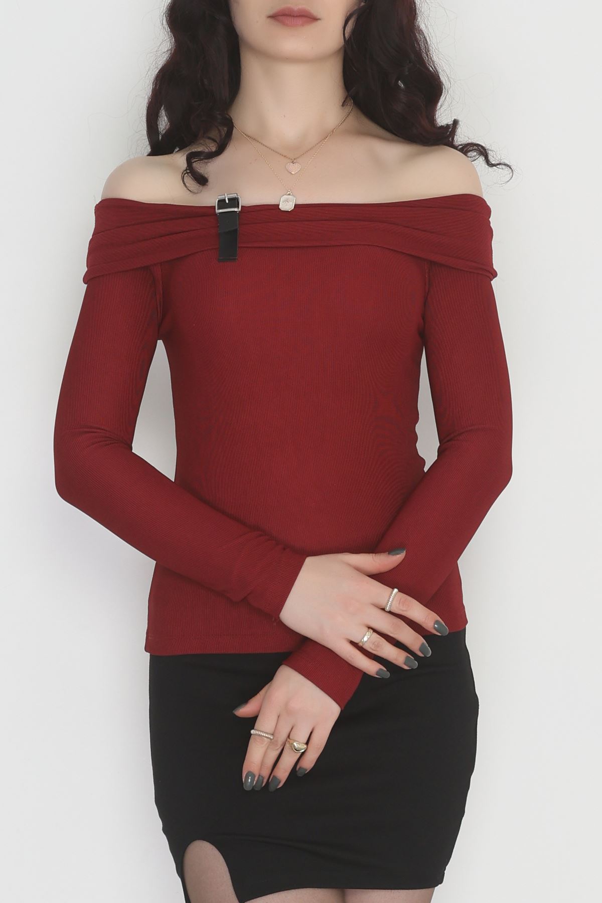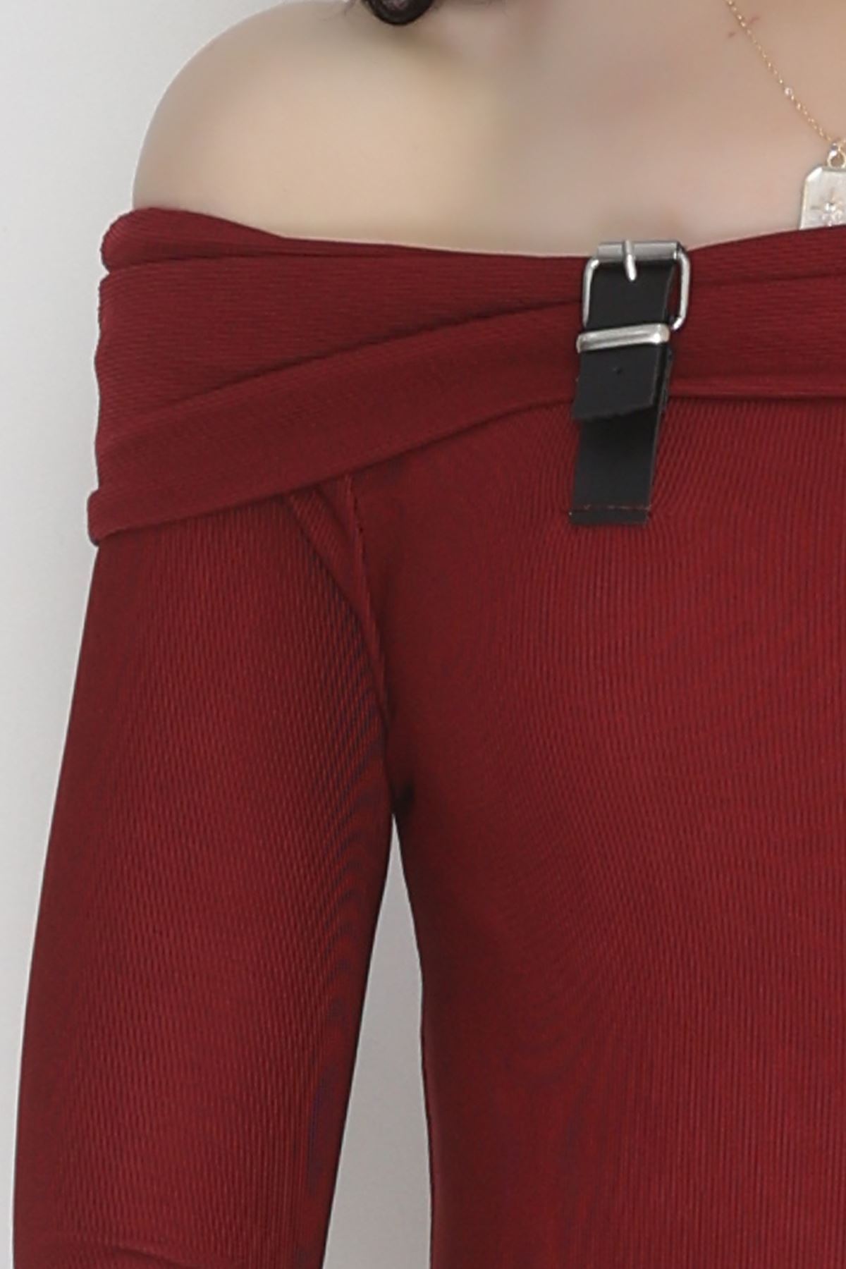 Madonna Yaka Kemer Detaylı Bluz Bordo - 4323.1595.