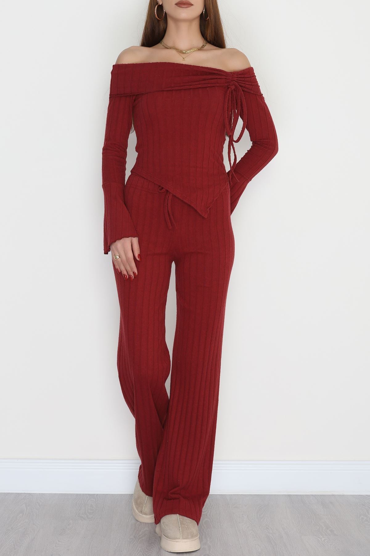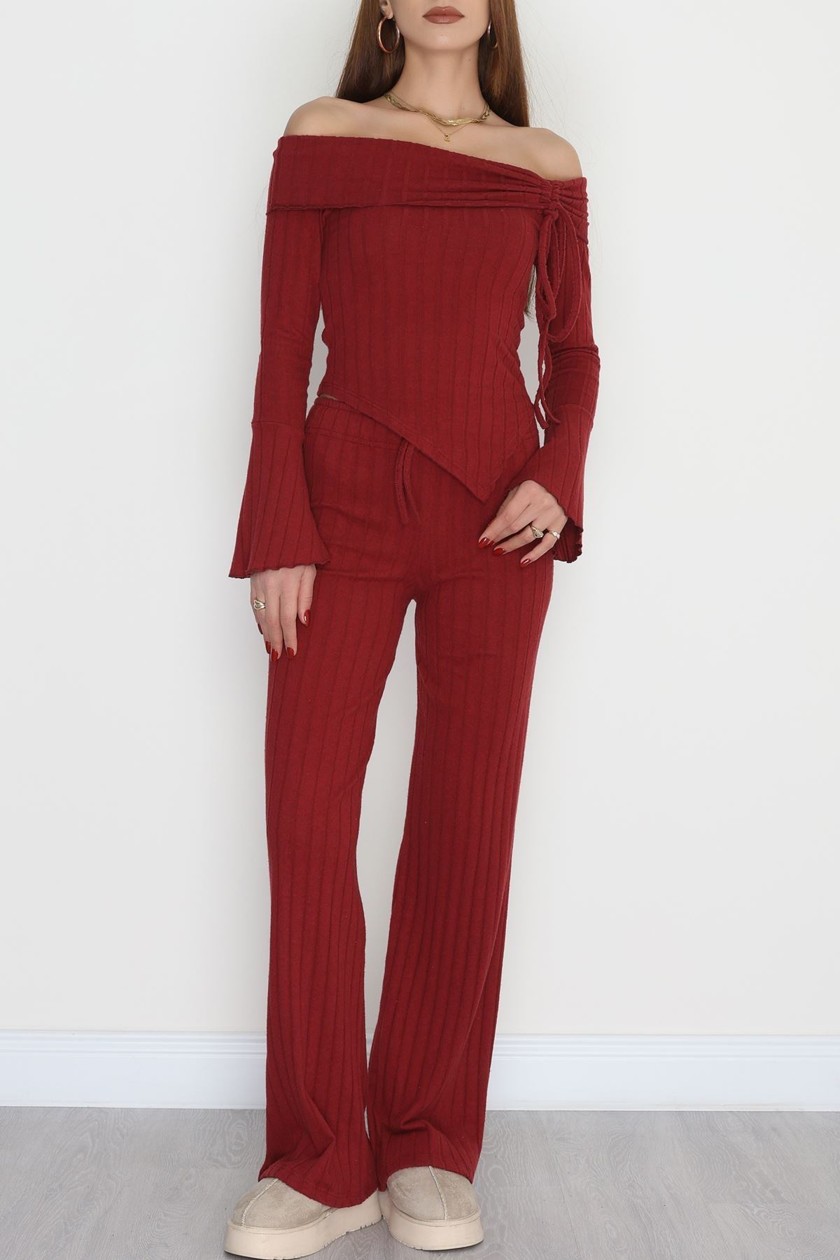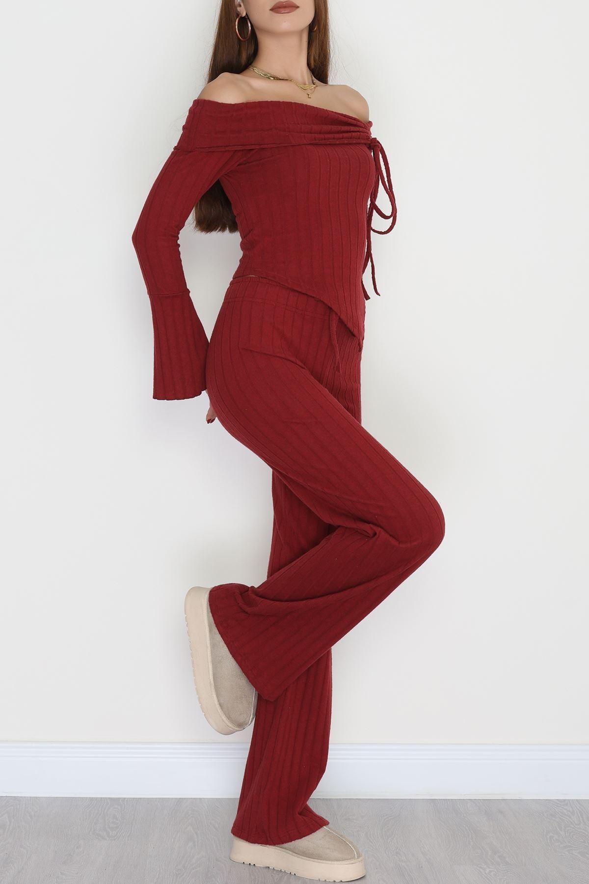 Madonna Yaka Likralı İnterlok Fitilli Takım Bordo - 90967.1748.