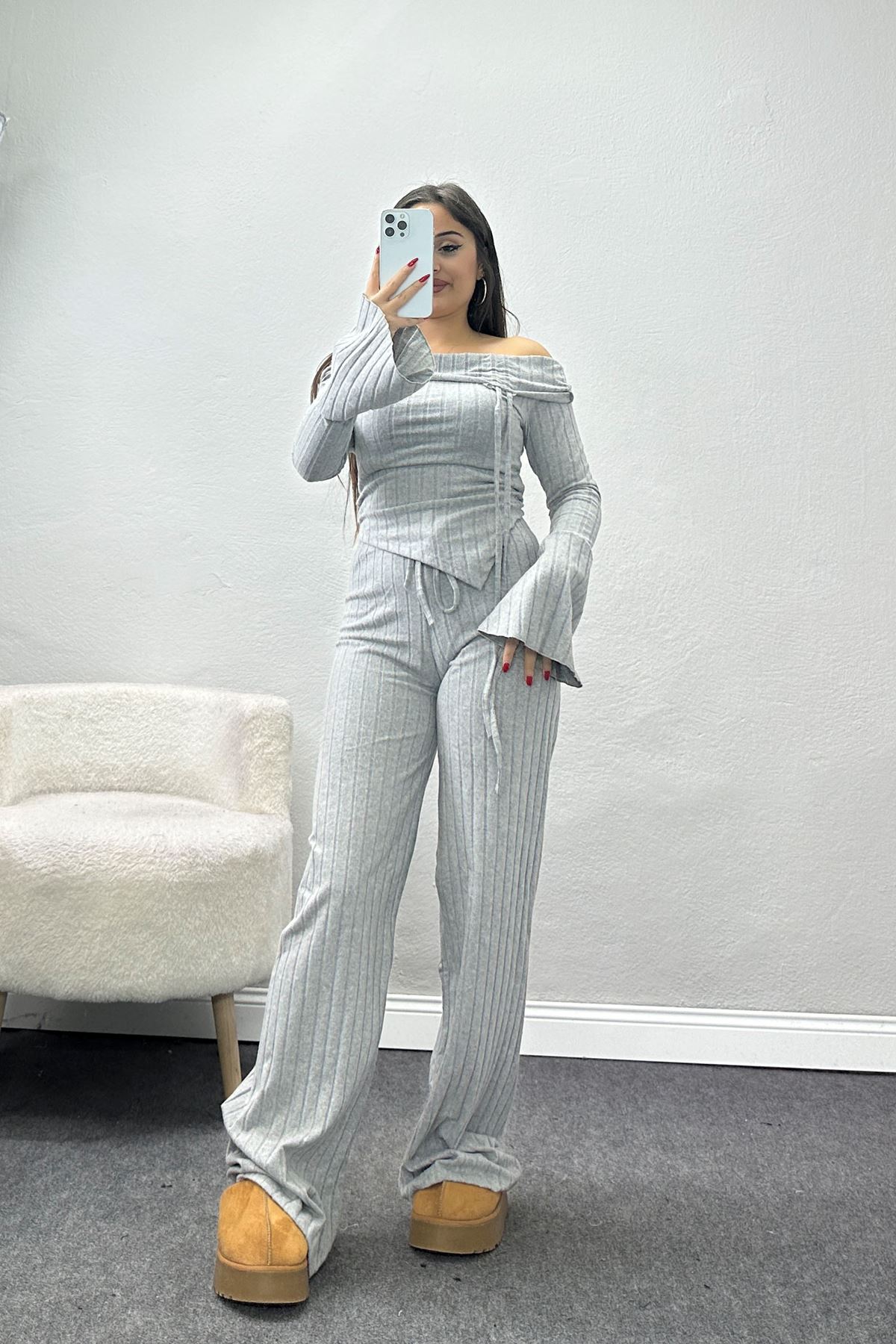 Madonna Yaka Likralı İnterlok Fitilli Takım Gri - 90967.1748.