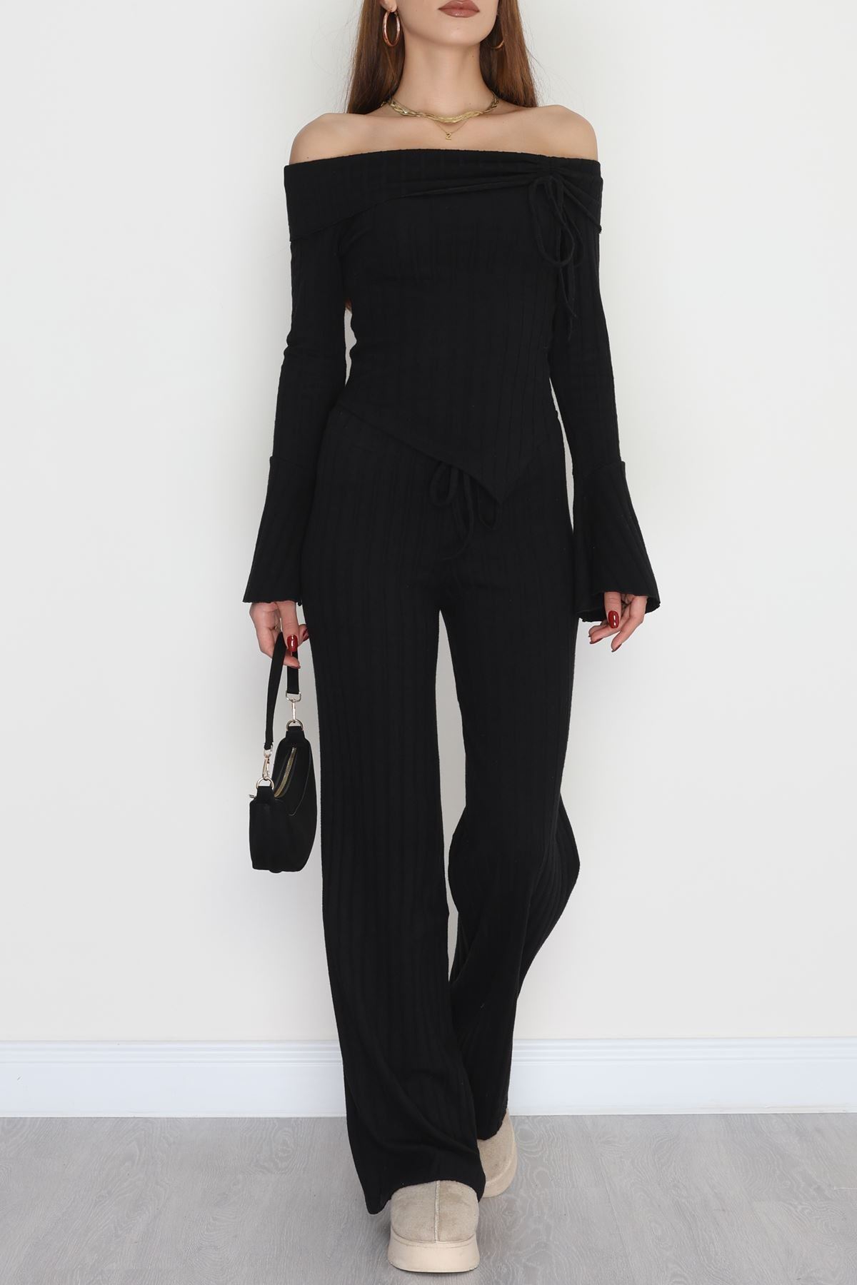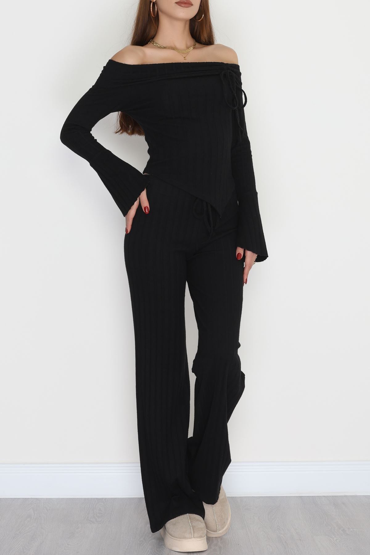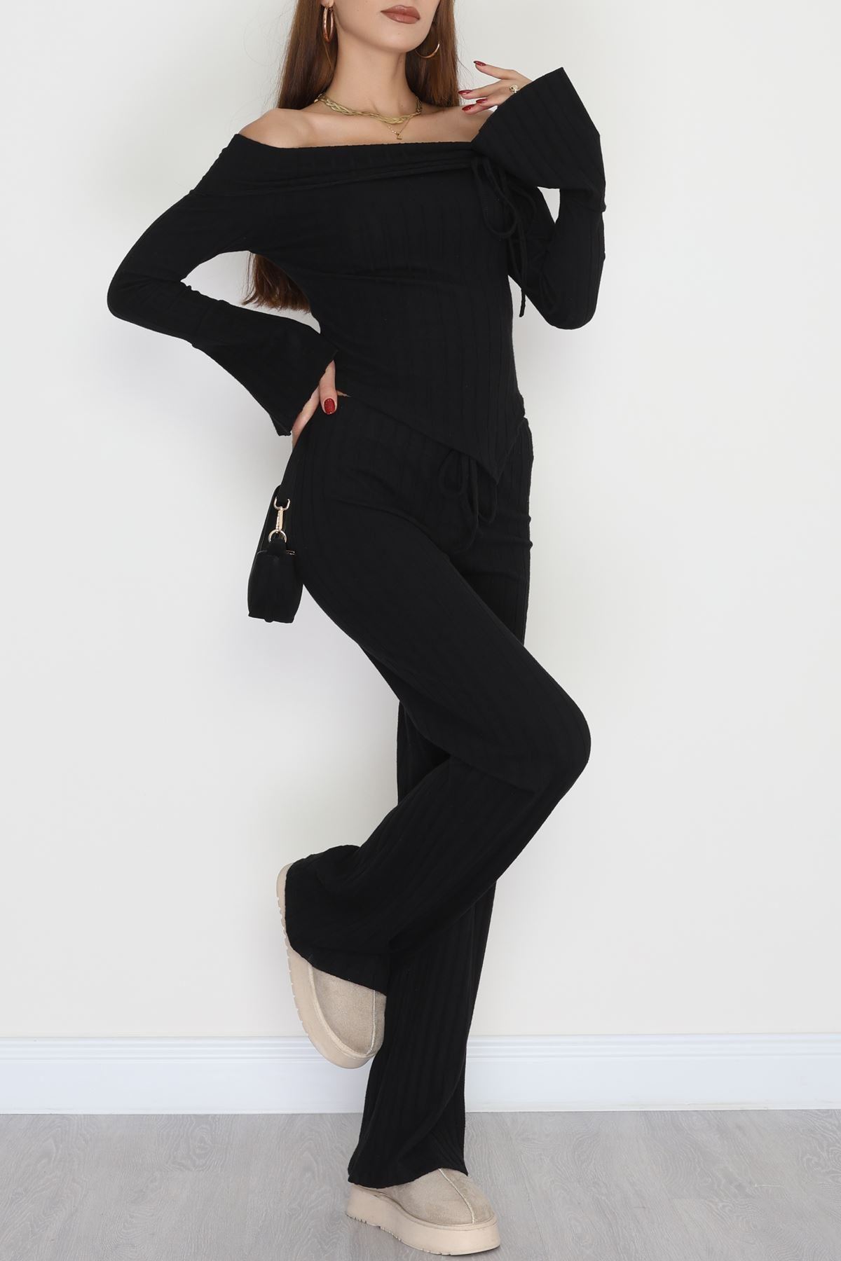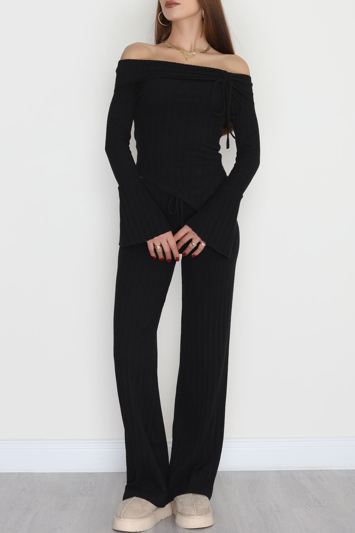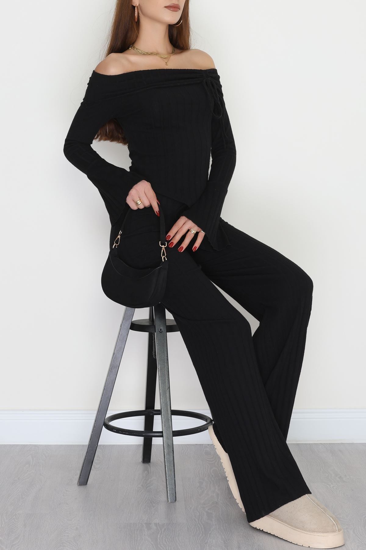 Madonna Yaka Likralı İnterlok Fitilli Takım Siyah - 90967.1748.