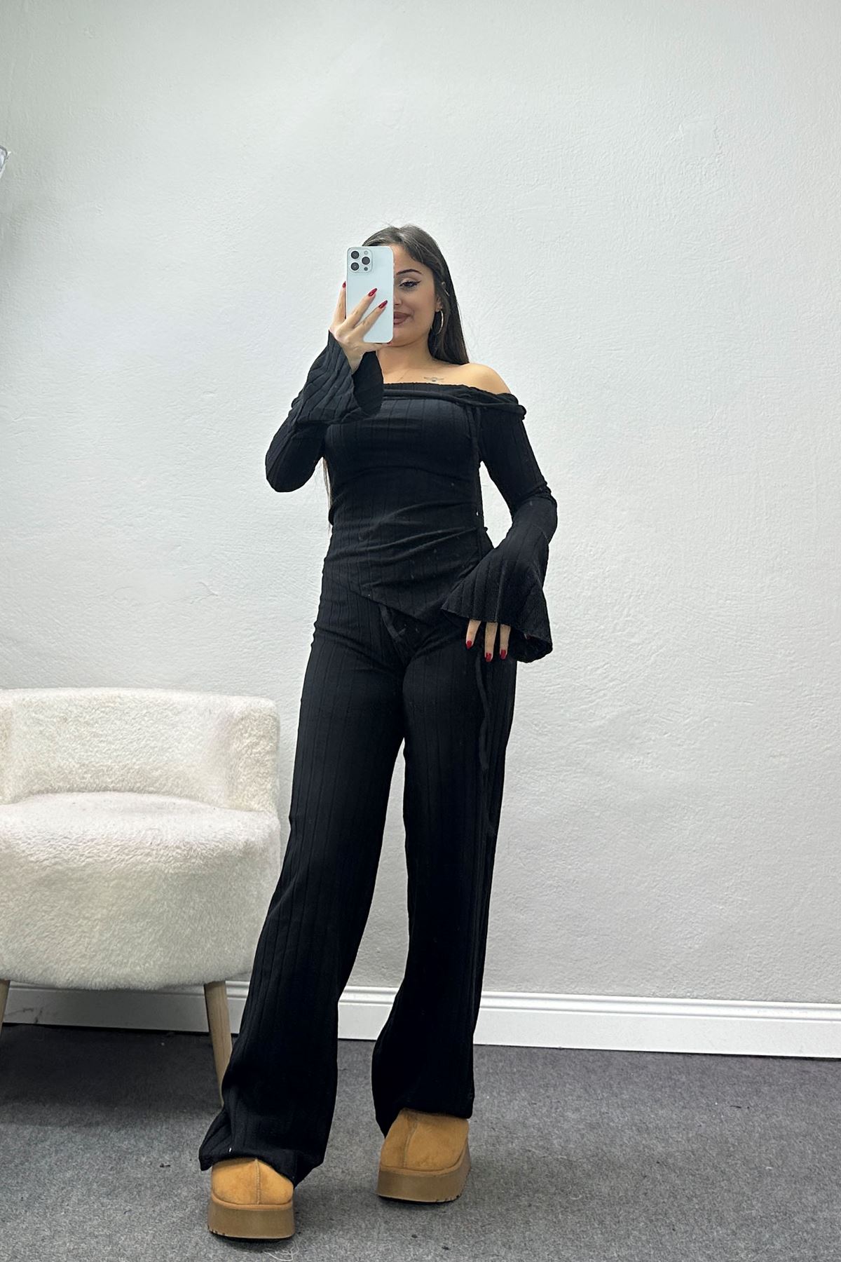 Kayık Yaka Modal Kumaş İkili Takım Siyah - 42673.1247.