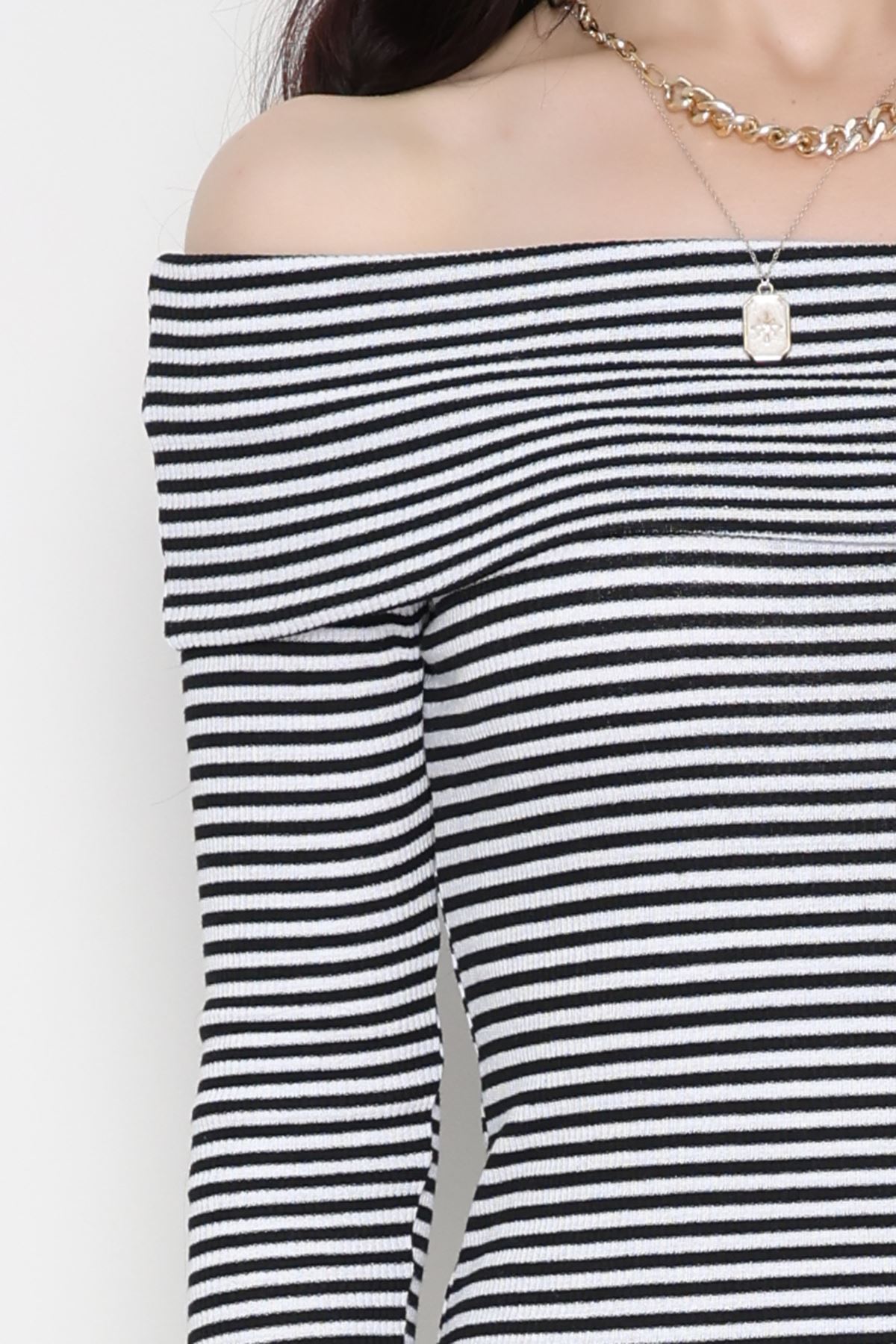 Madonna Yaka Likralı Kaşkorse Elbise Siyahbeyaz - 42764.1567.