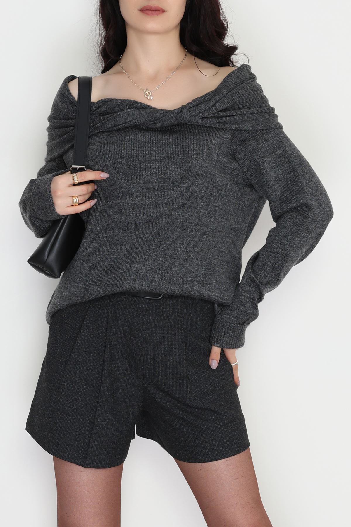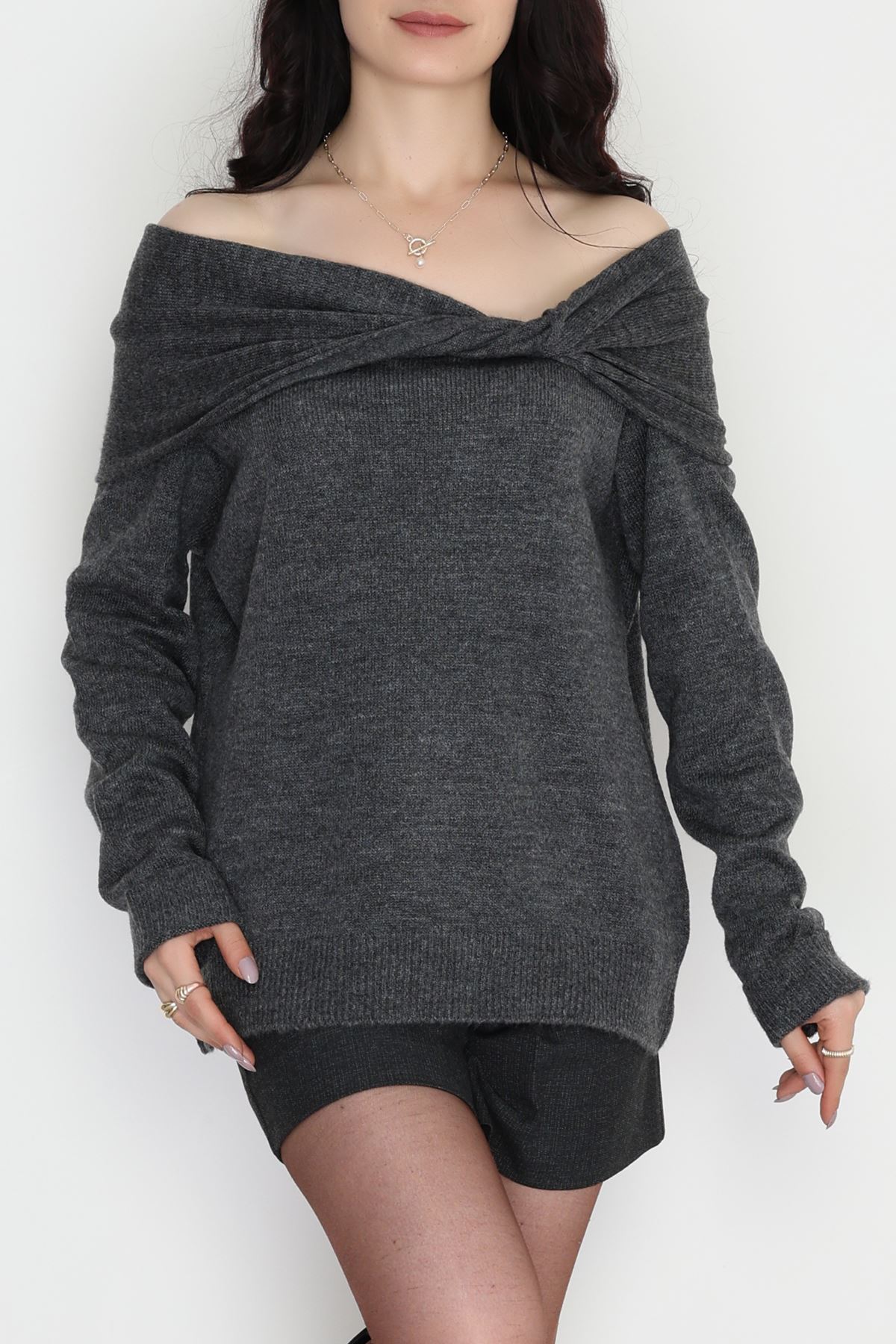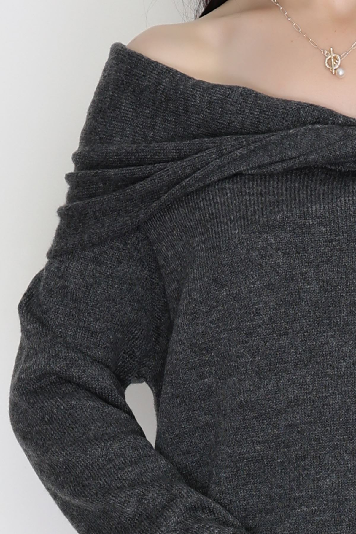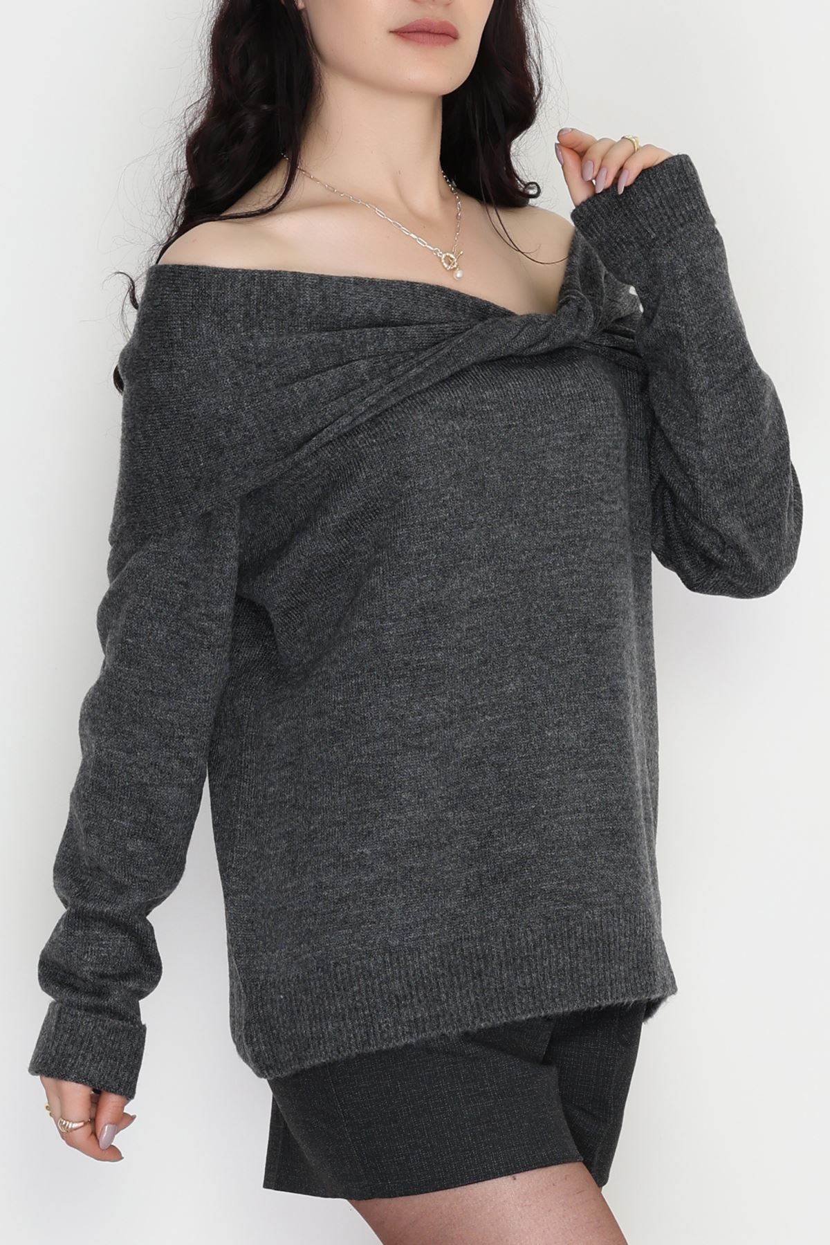 Madonna Yaka Önü Düğümlü Triko Antrasit - 2432.1765.