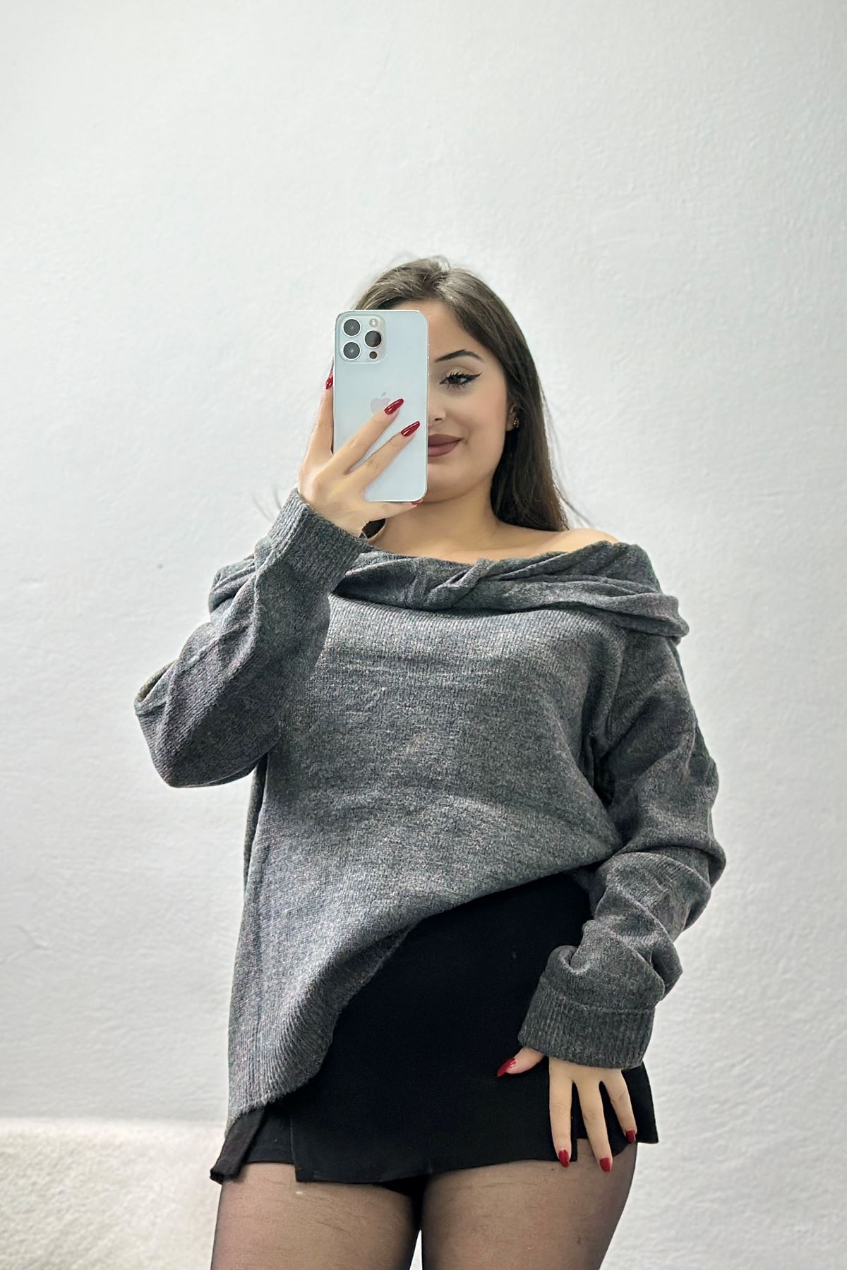 Madonna Yaka Önü Düğümlü Triko Antrasit - 2432.1765.