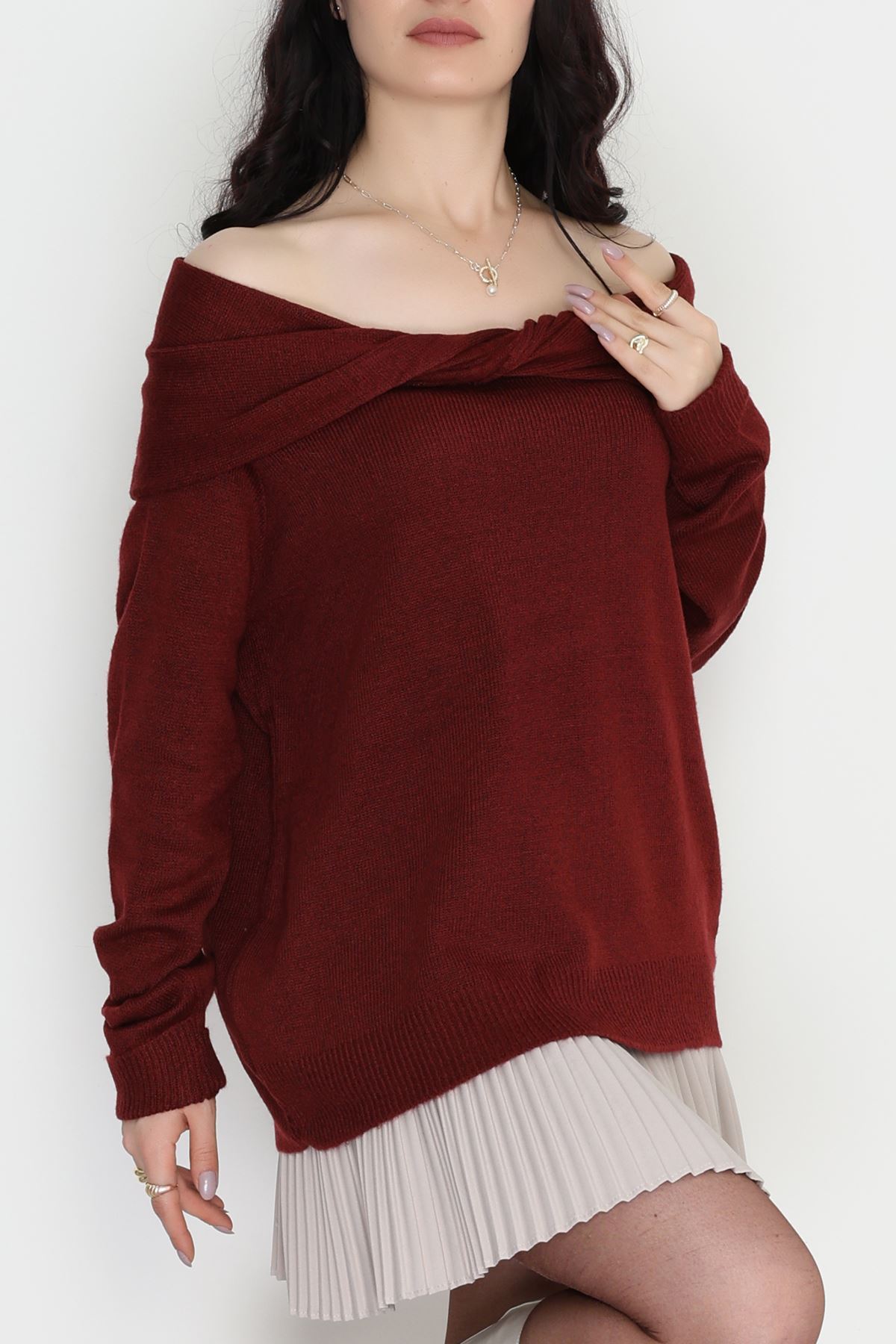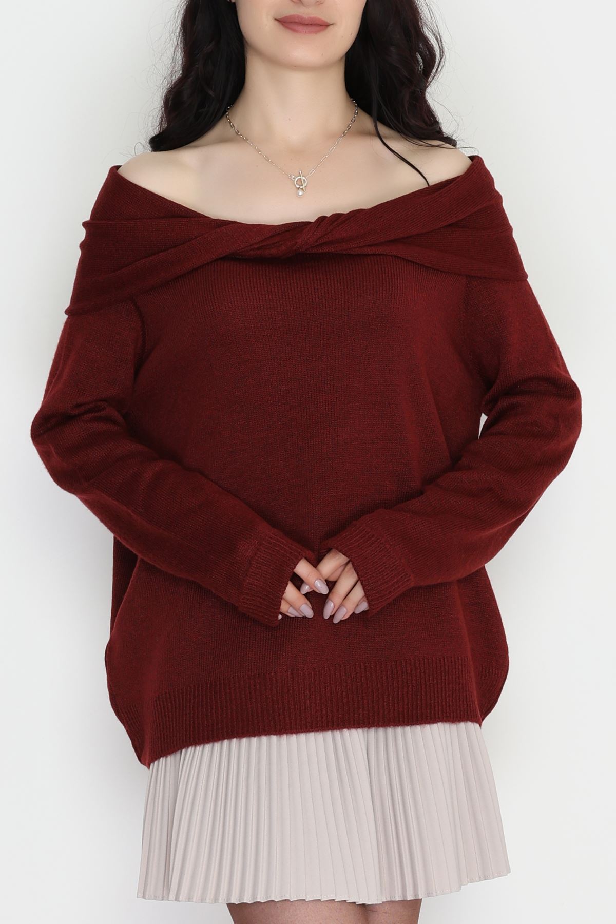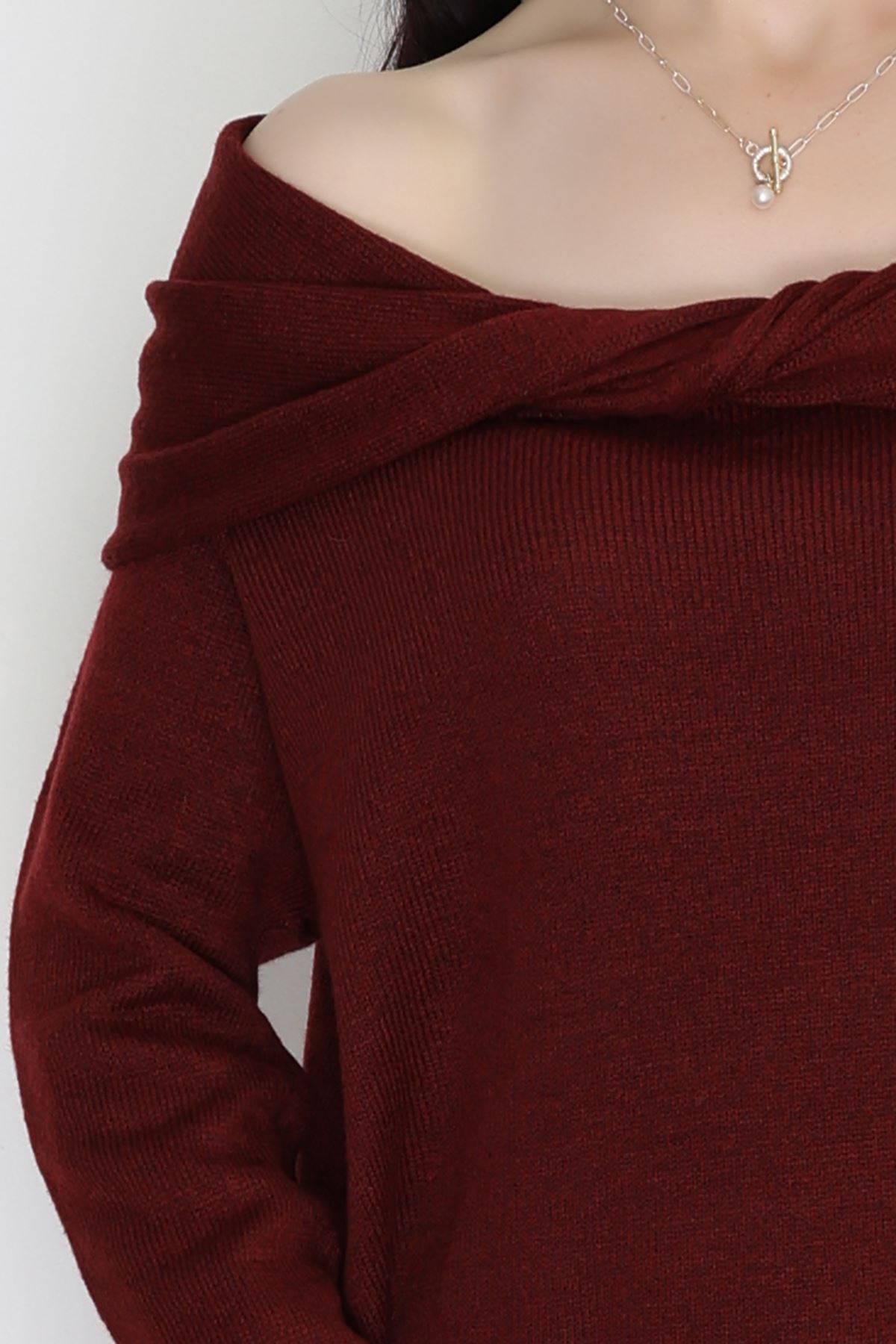 Madonna Yaka Önü Düğümlü Triko Bordo - 2432.1765.