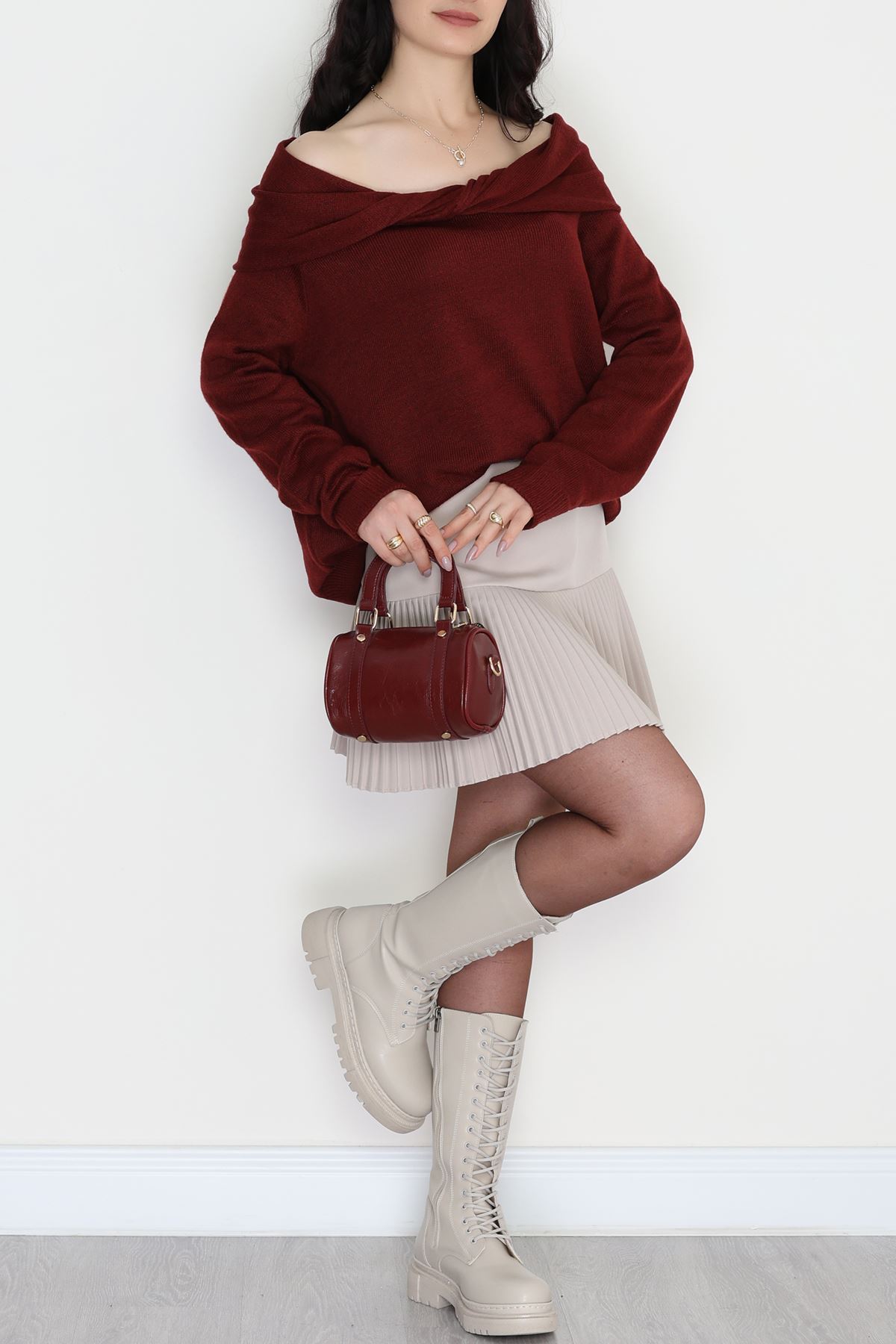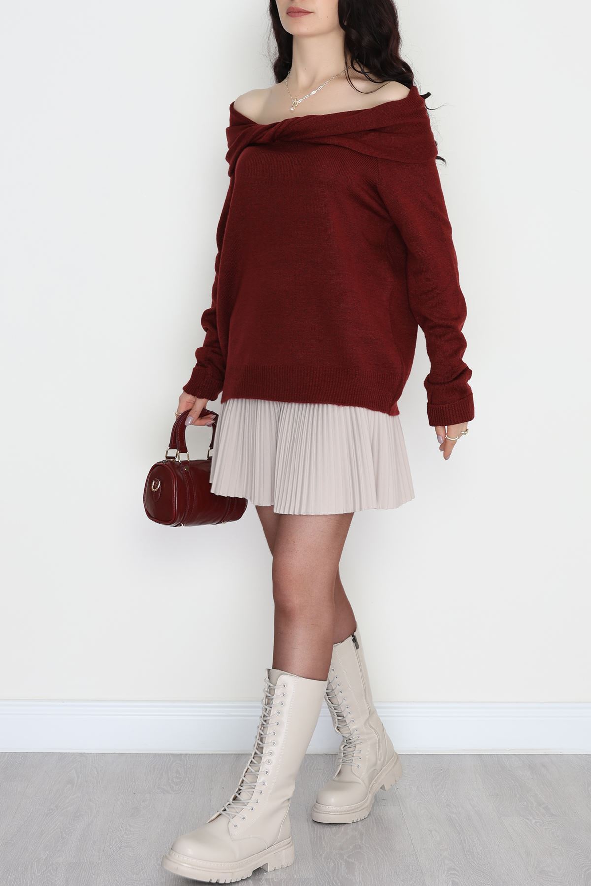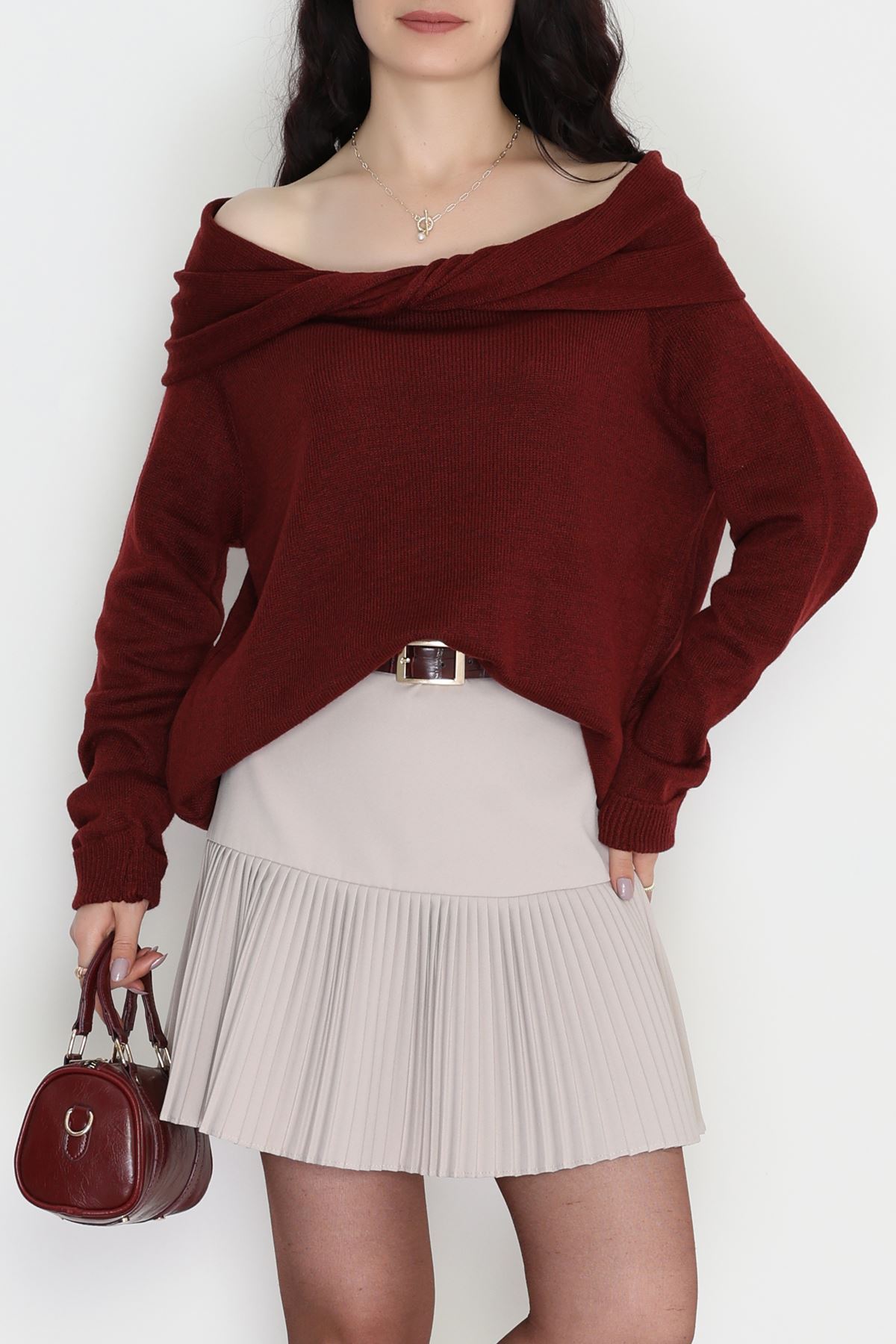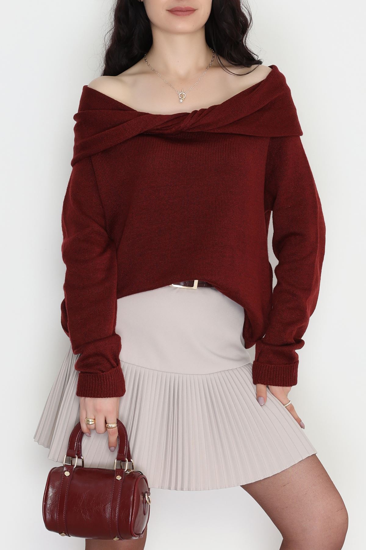 Madonna Yaka Önü Düğümlü Triko Bordo - 2432.1765.