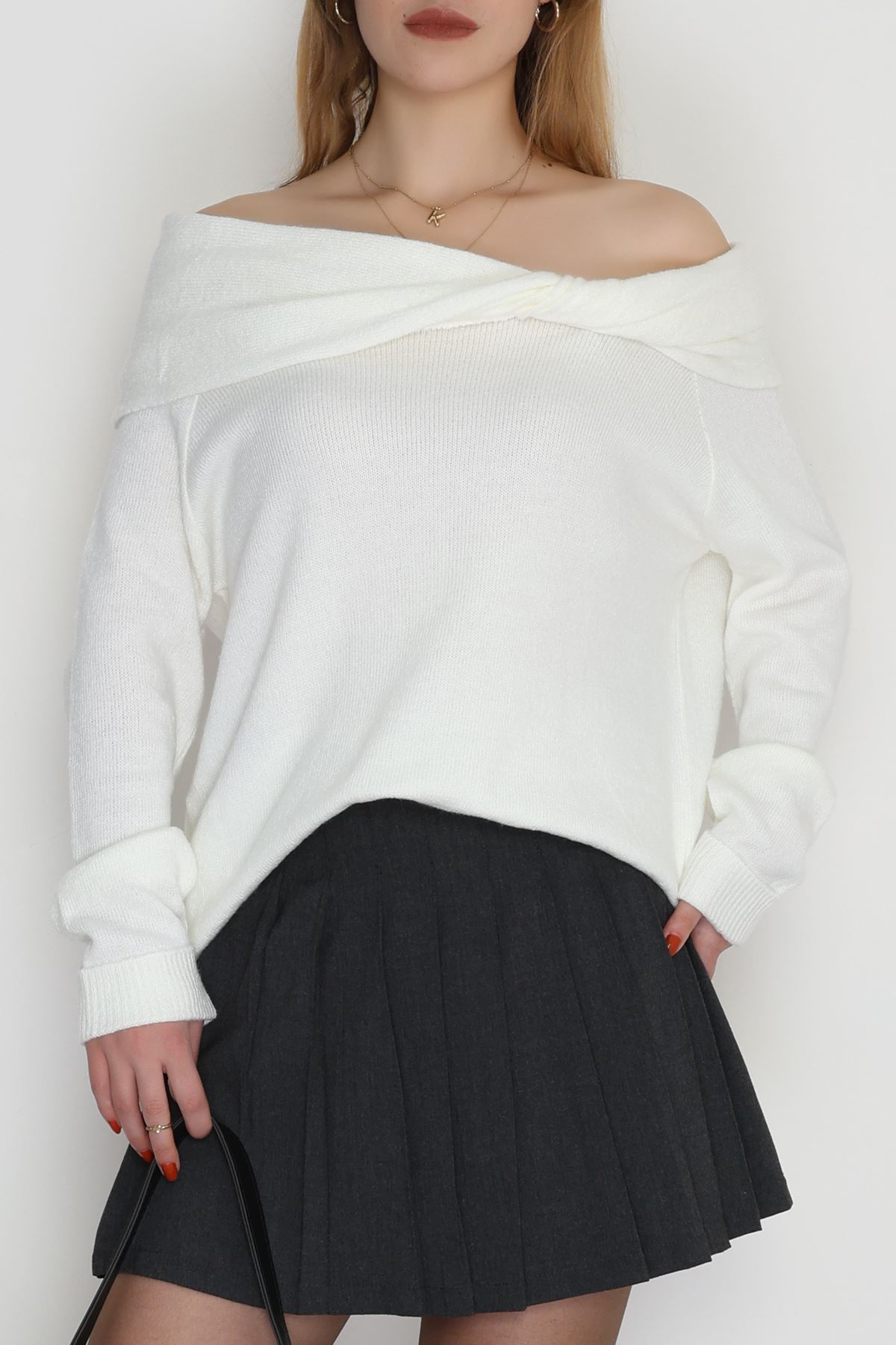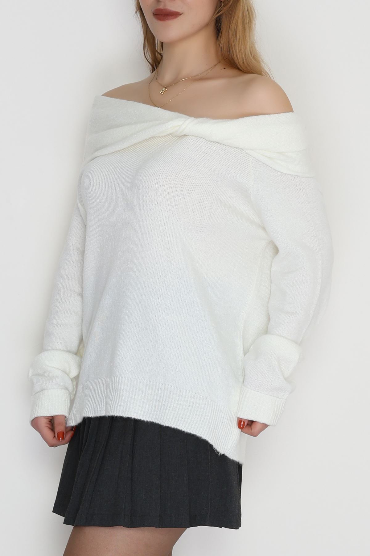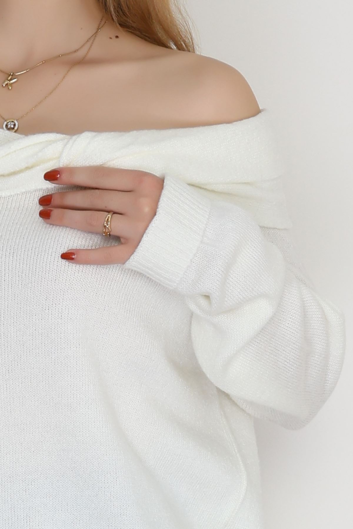 Madonna Yaka Önü Düğümlü Triko Ekru - 2432.1765.