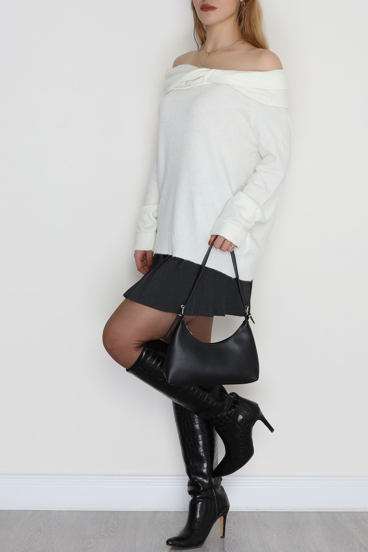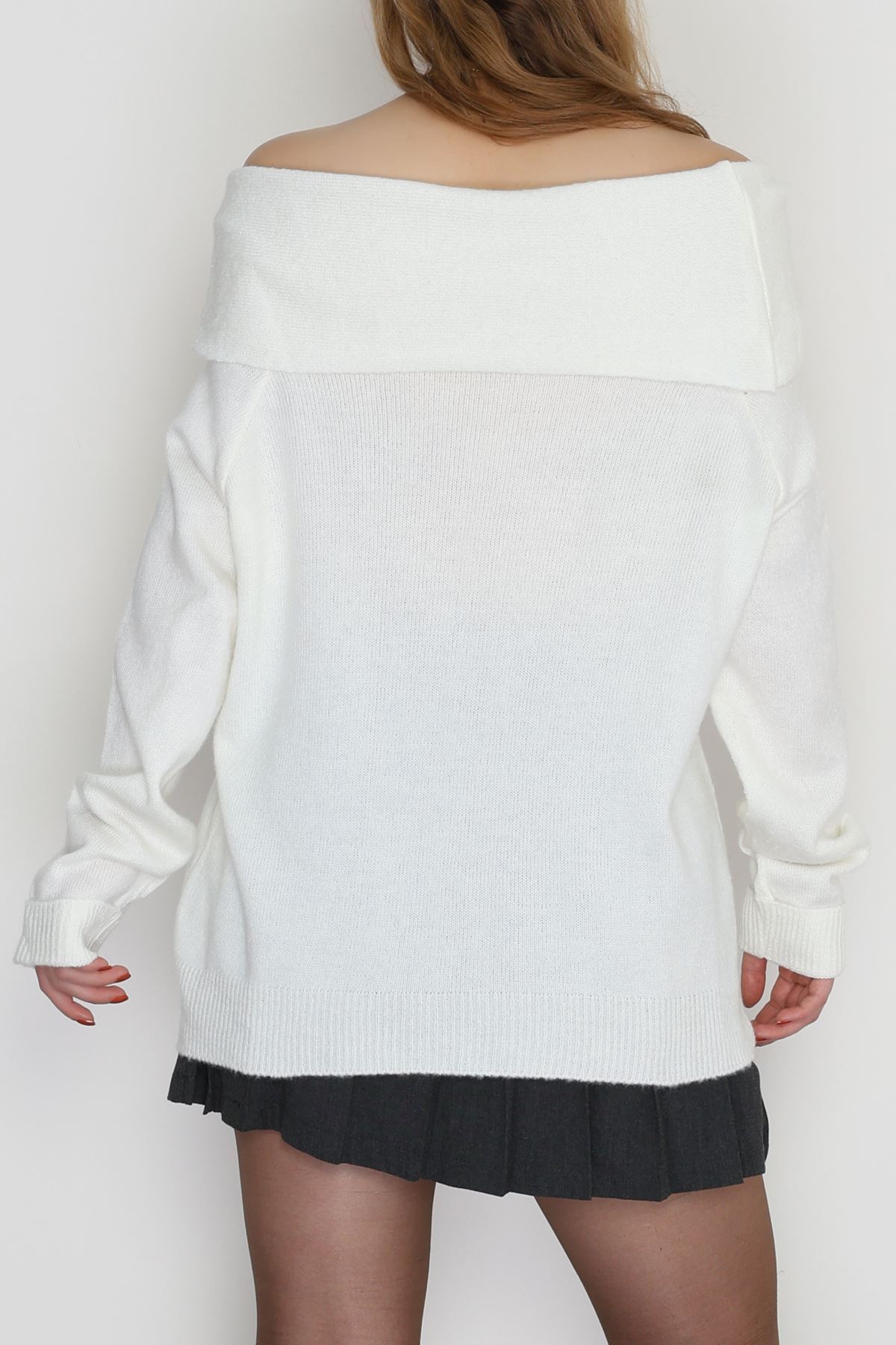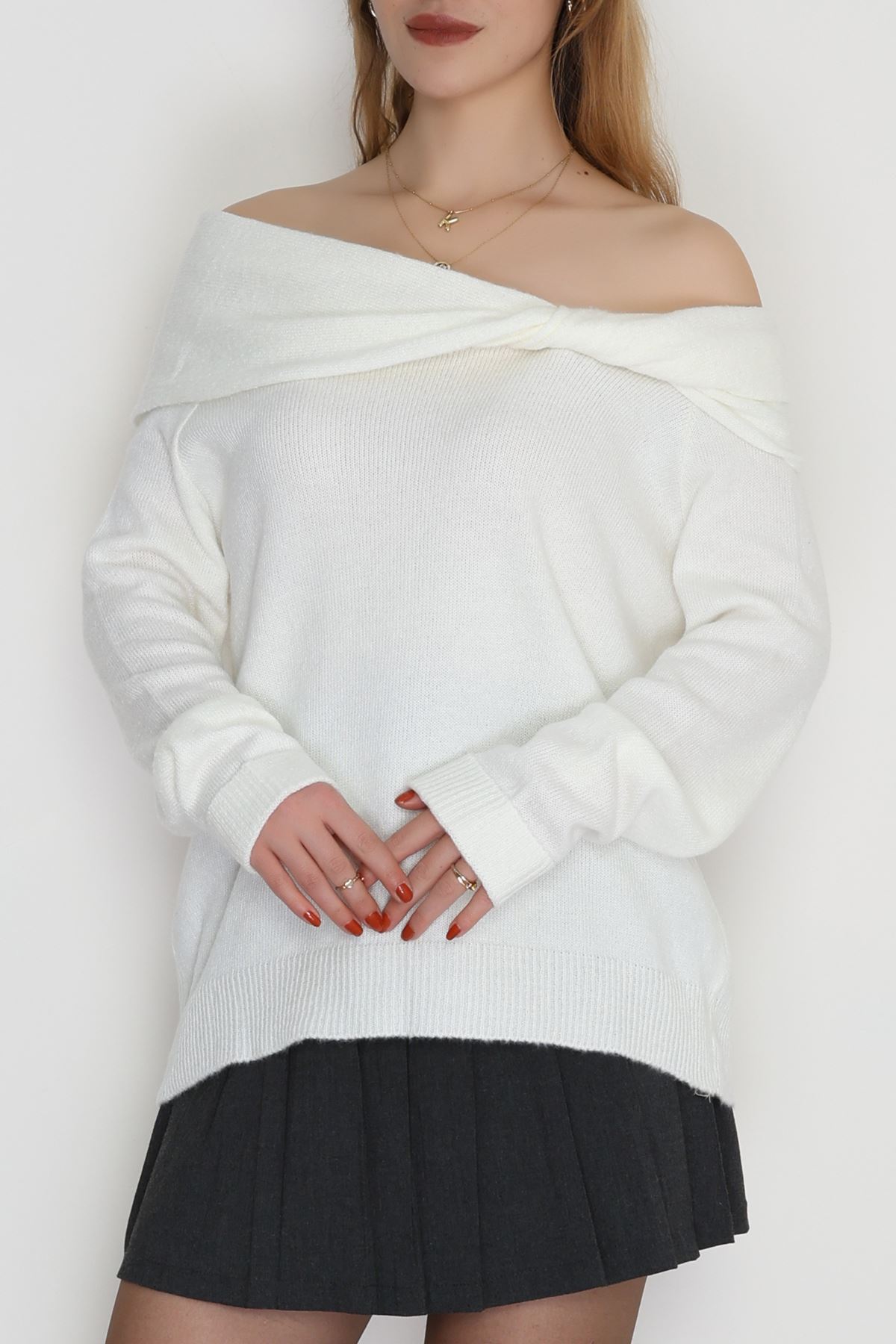 Madonna Yaka Önü Düğümlü Triko Ekru - 2432.1765.