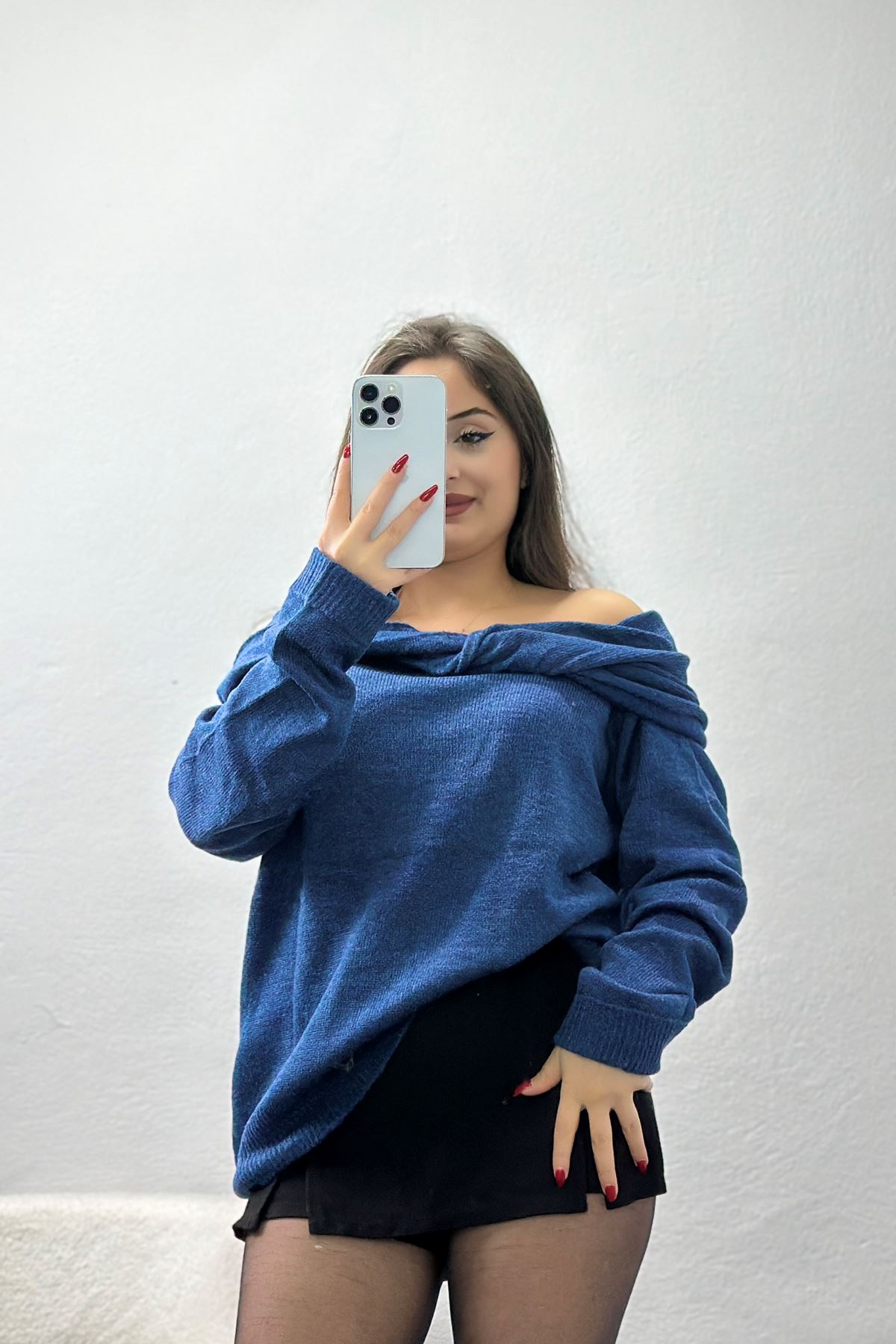 Madonna Yaka Önü Düğümlü Triko İndigo - 2432.1765.