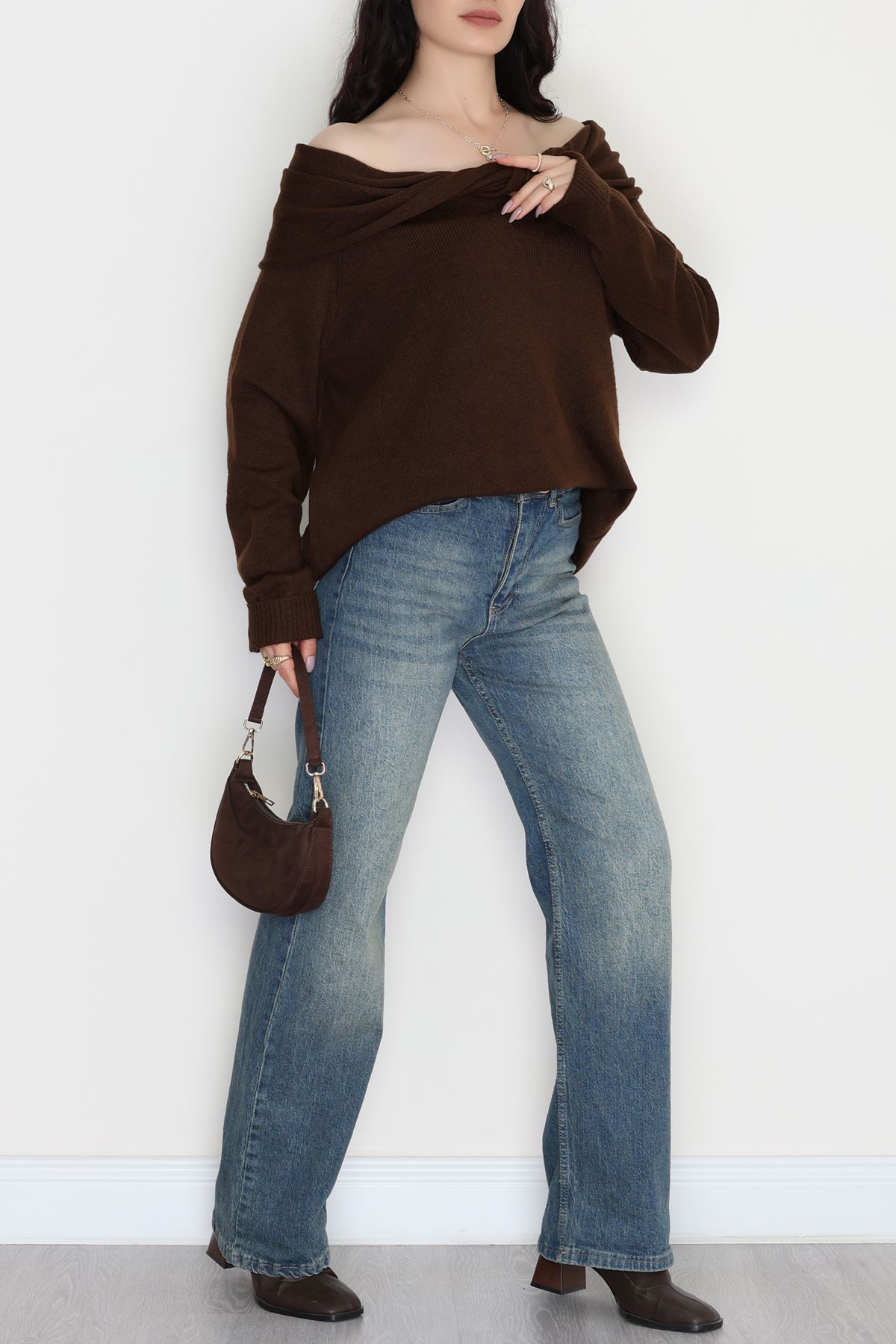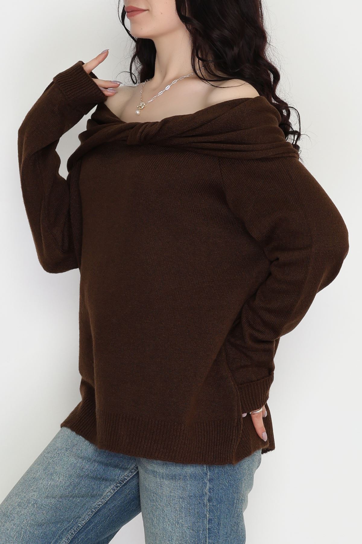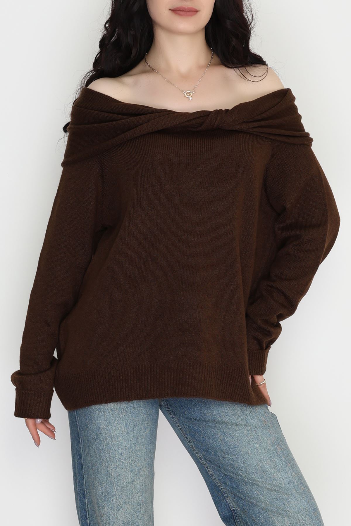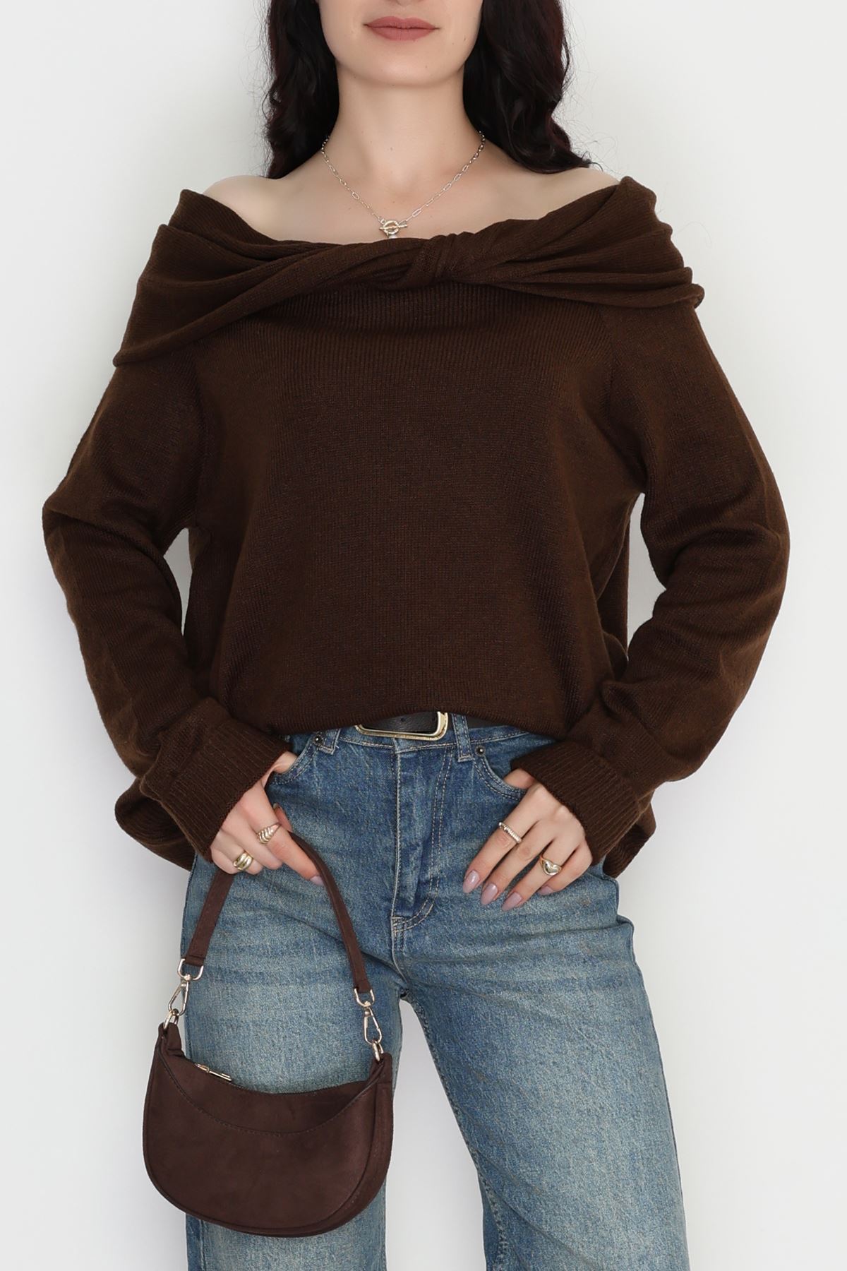Madonna Yaka Önü Düğümlü Triko Kahve - 2432.1765.