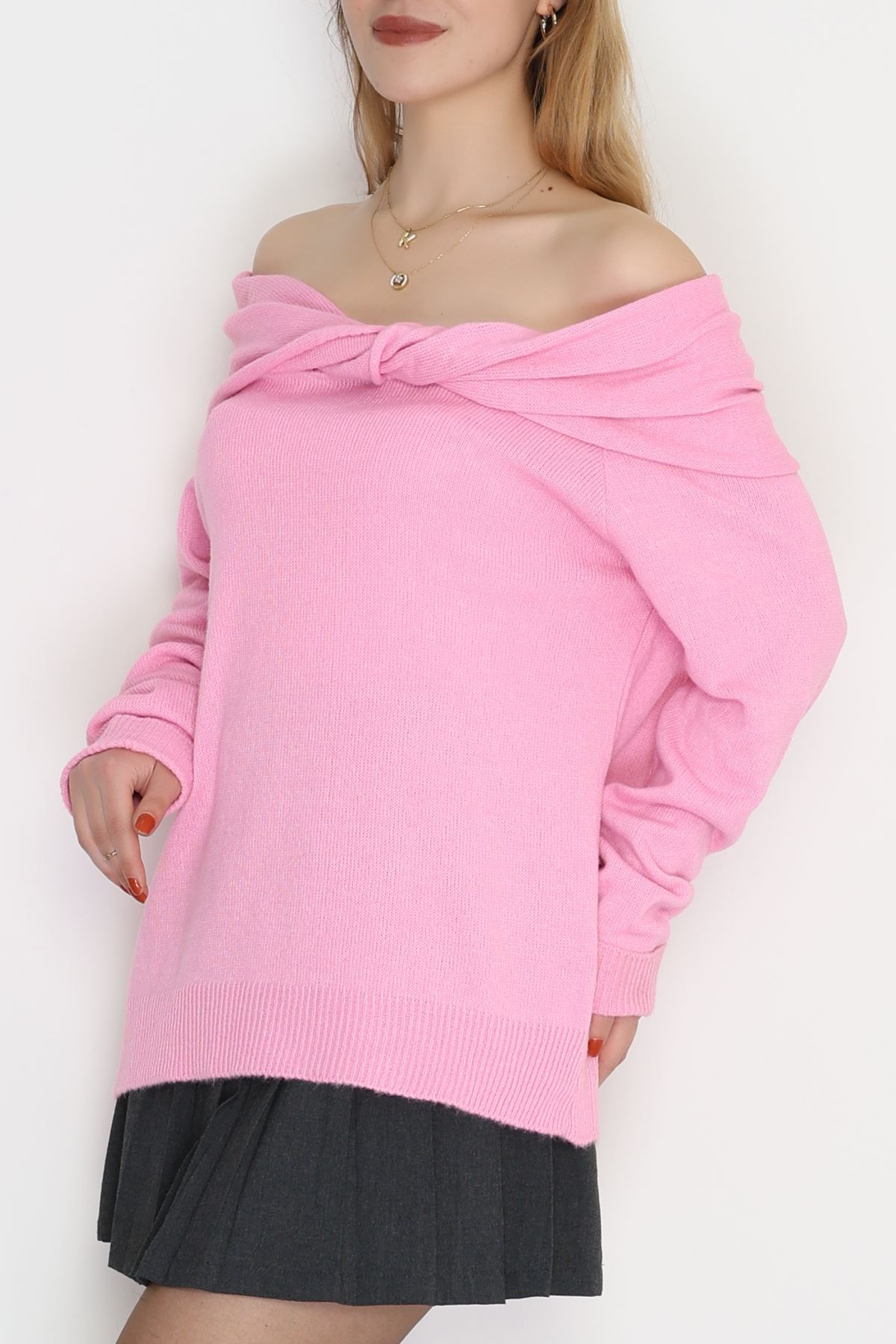 Madonna Yaka Önü Düğümlü Triko Pembe - 2432.1765.