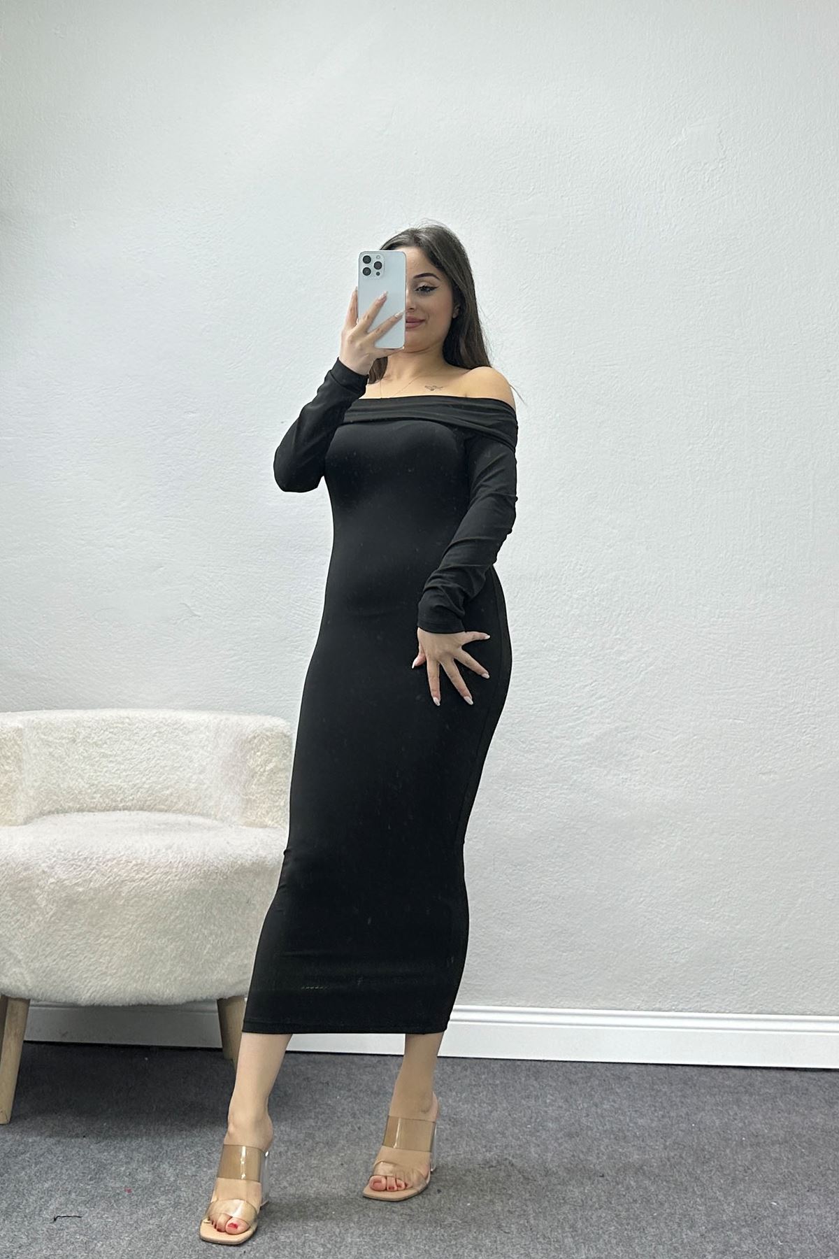 Vatkalı Sandy Elbise Siyahkadife - 41915.1999.