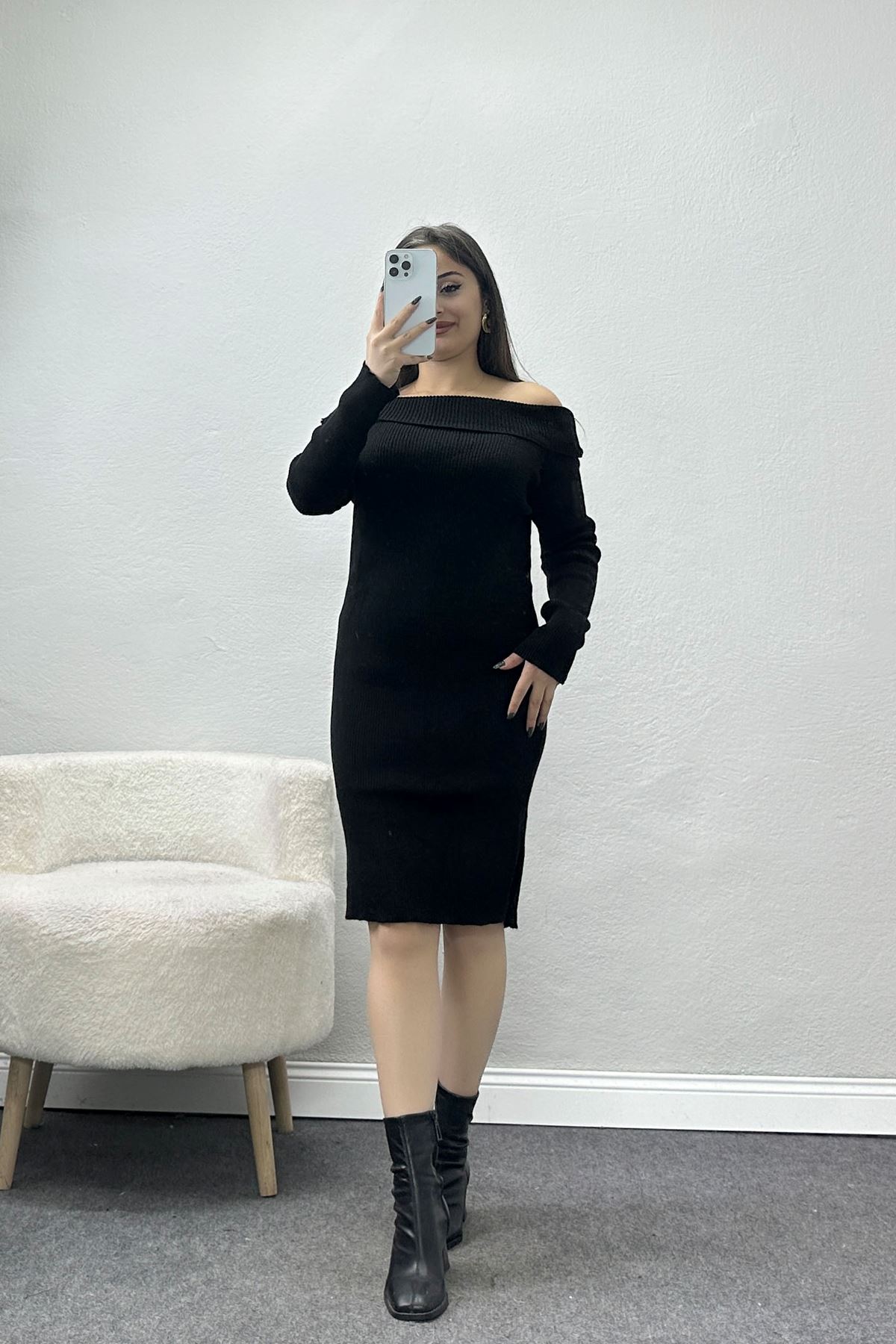 Madonna Yaka Triko Elbise Siyah - 42546.1765.