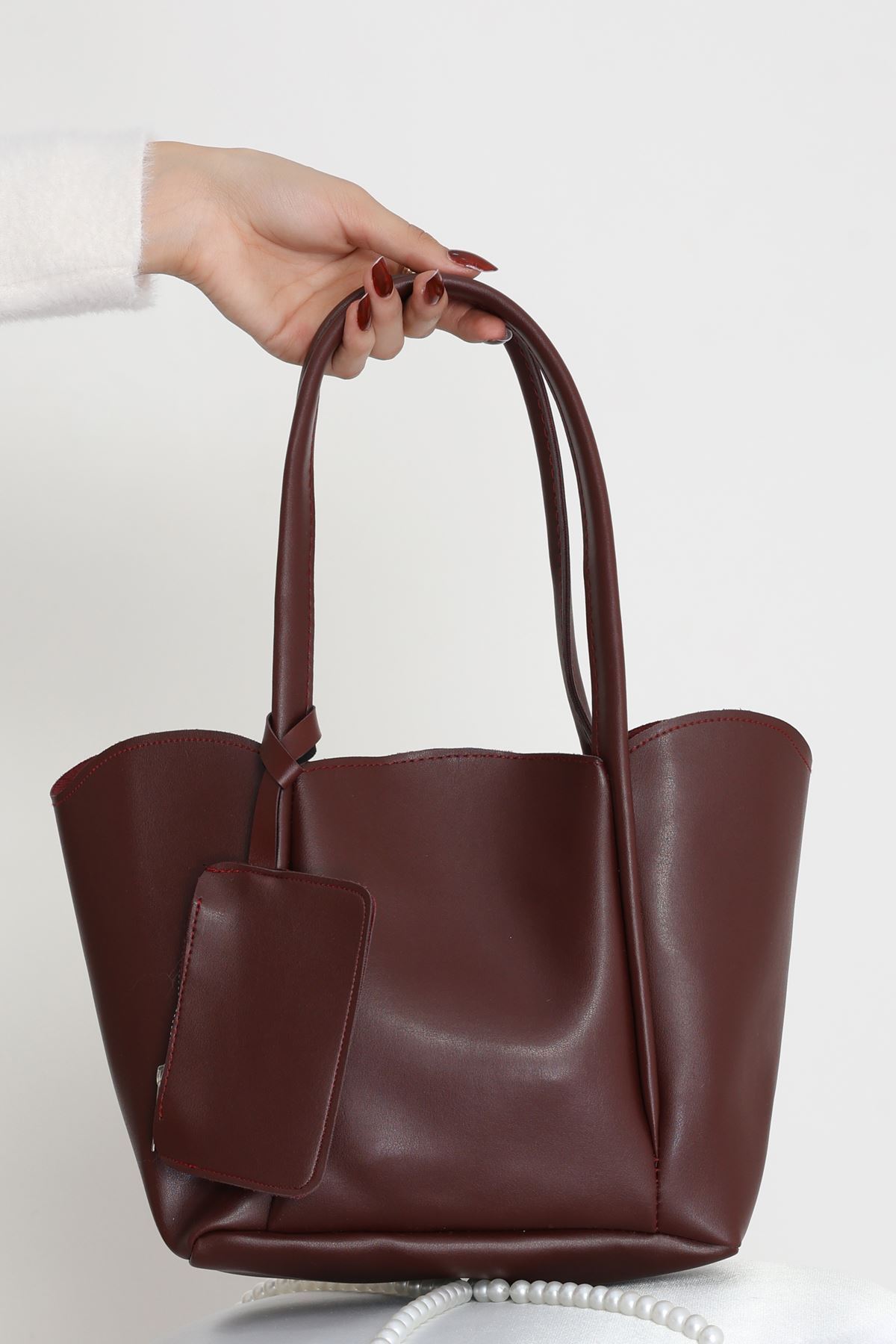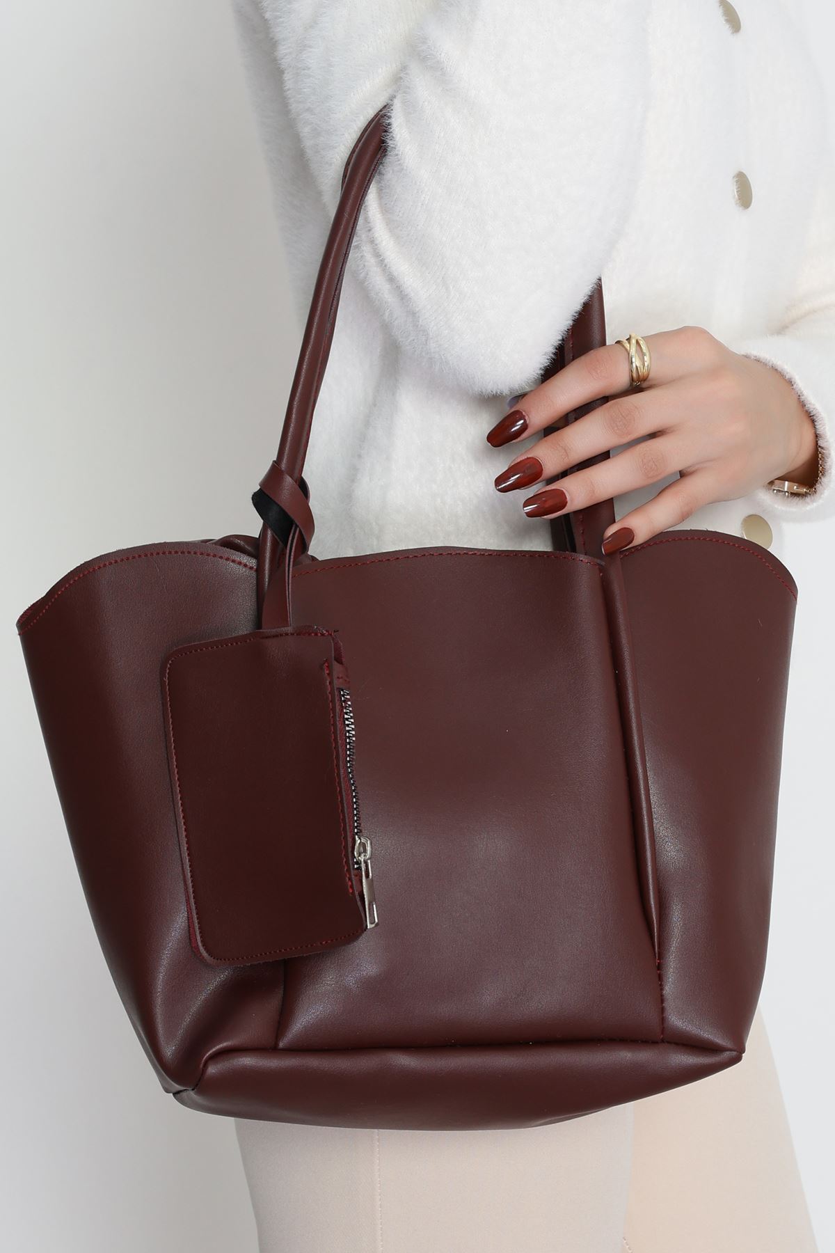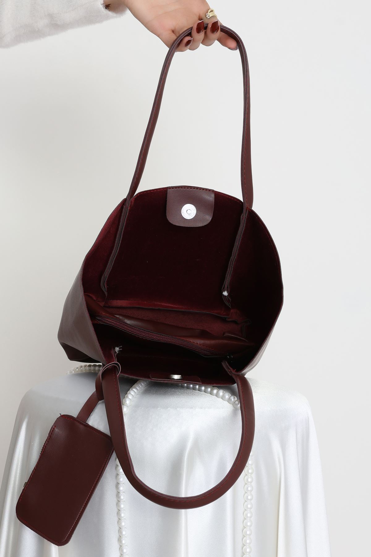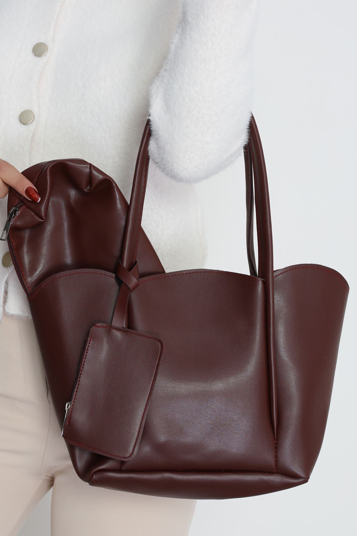 Makyaj Çantalı Ve Cüzdanlı Omuz Çantası Bordo - 31397.2063.