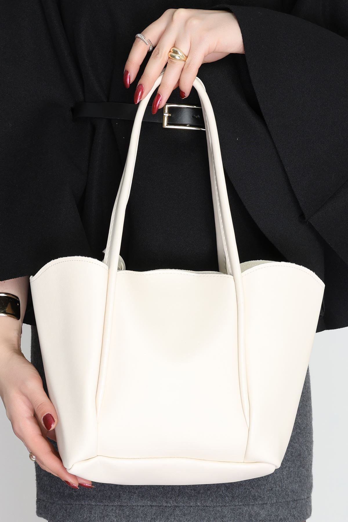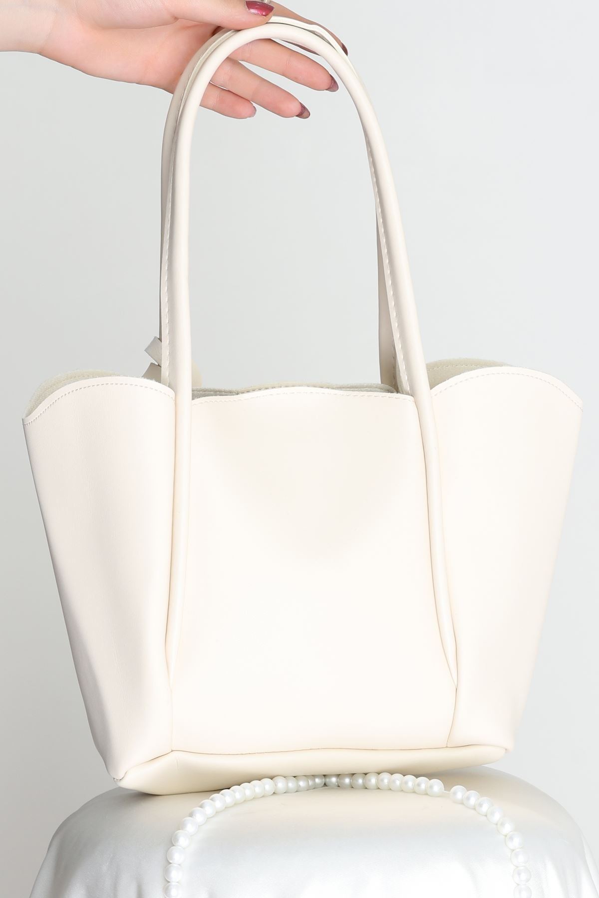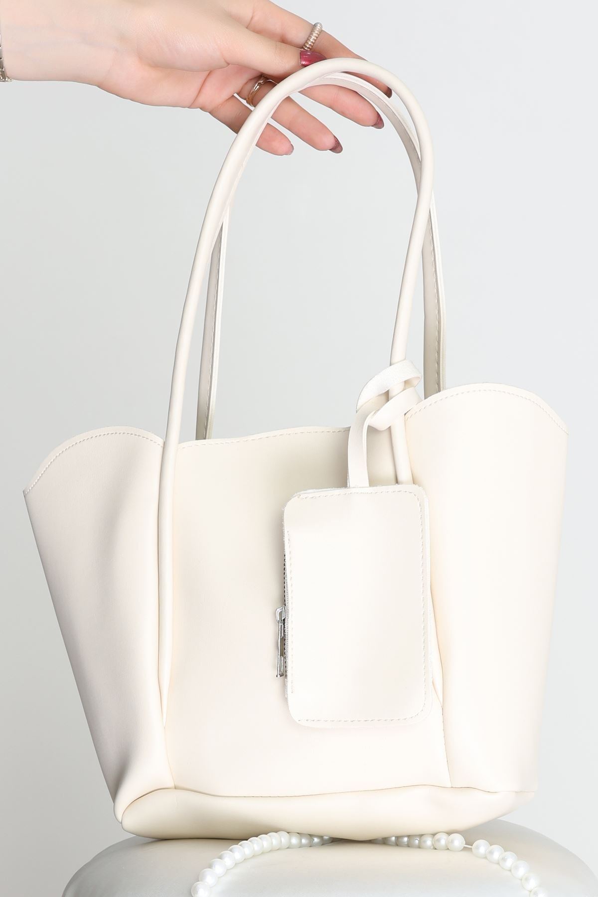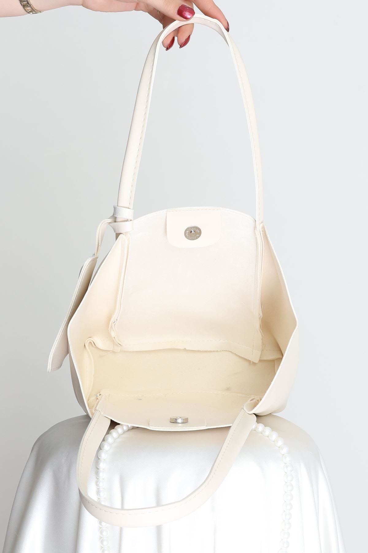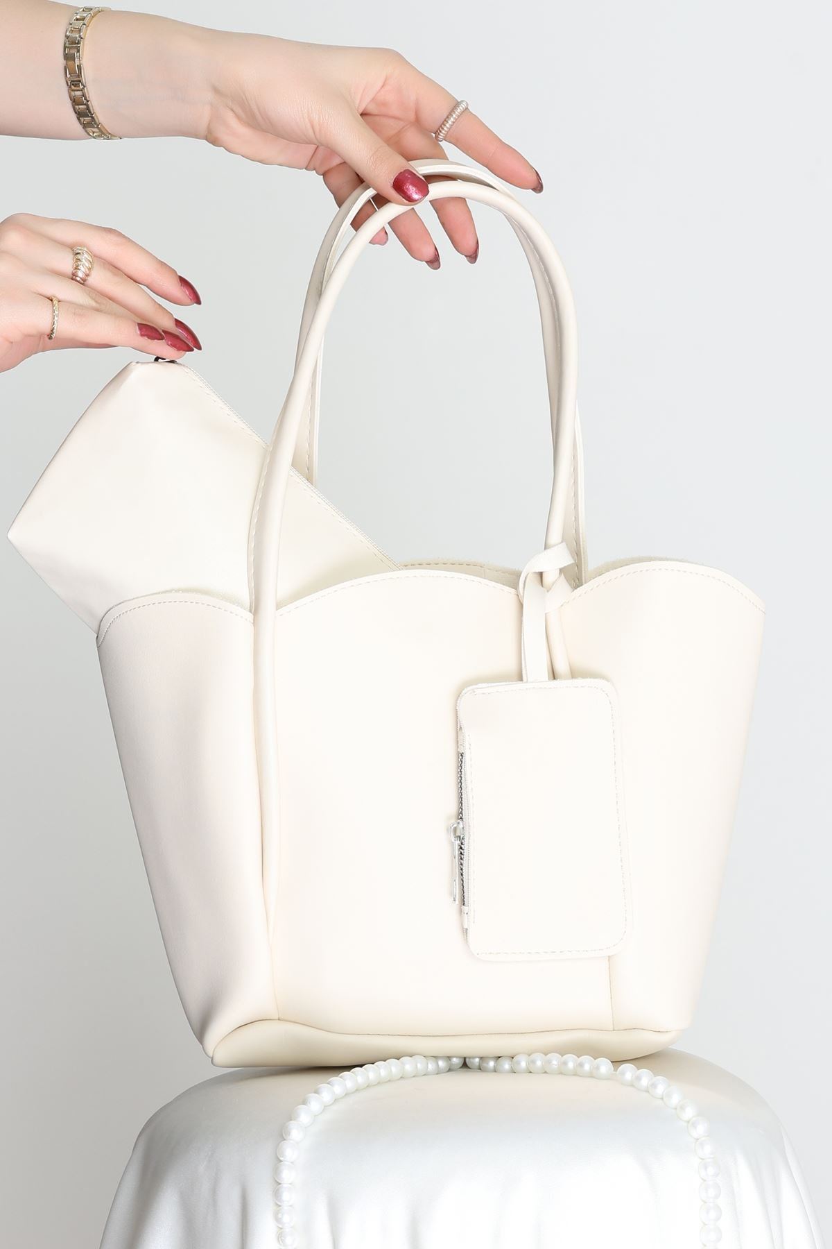 Makyaj Çantalı Ve Cüzdanlı Omuz Çantası Krem - 31397.2063.