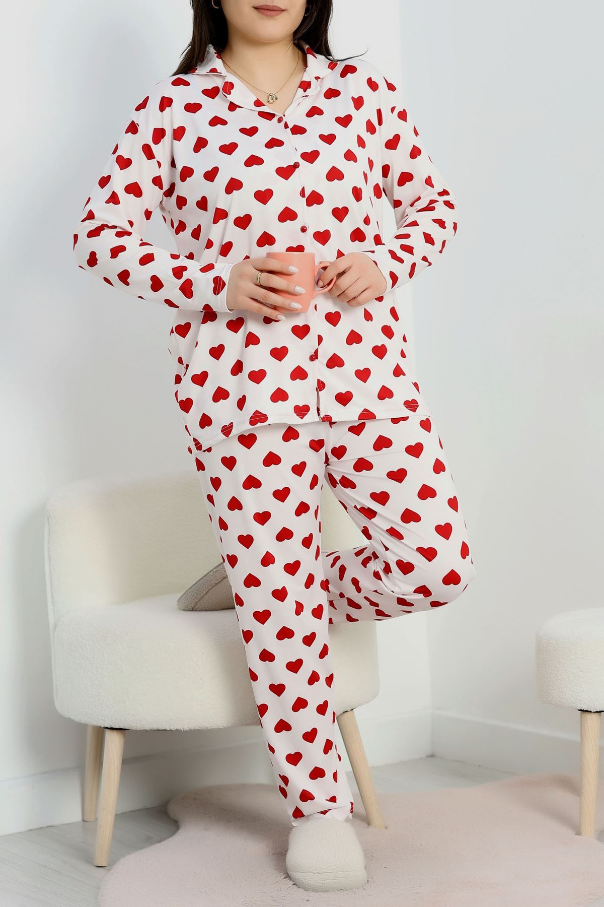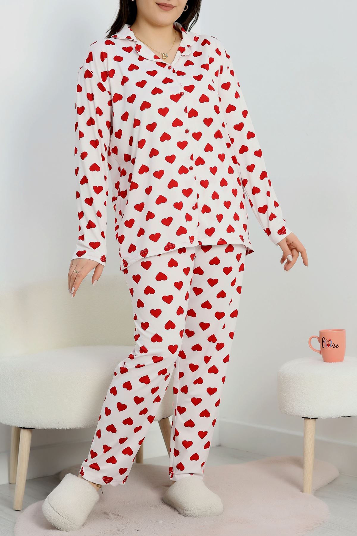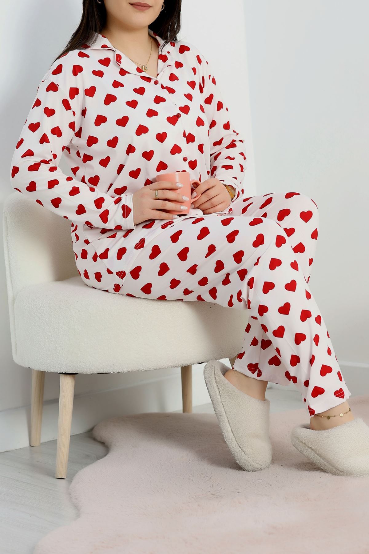 Soft Milan Düğmeli Pijama Takımı Kırmızıekose - 7511.1287.