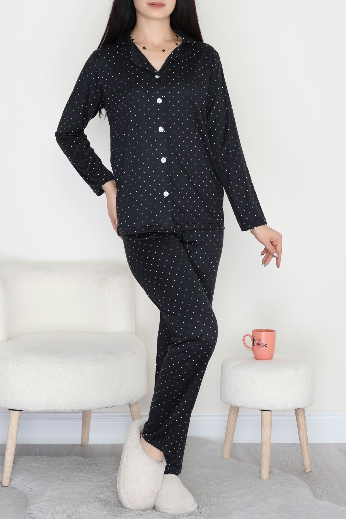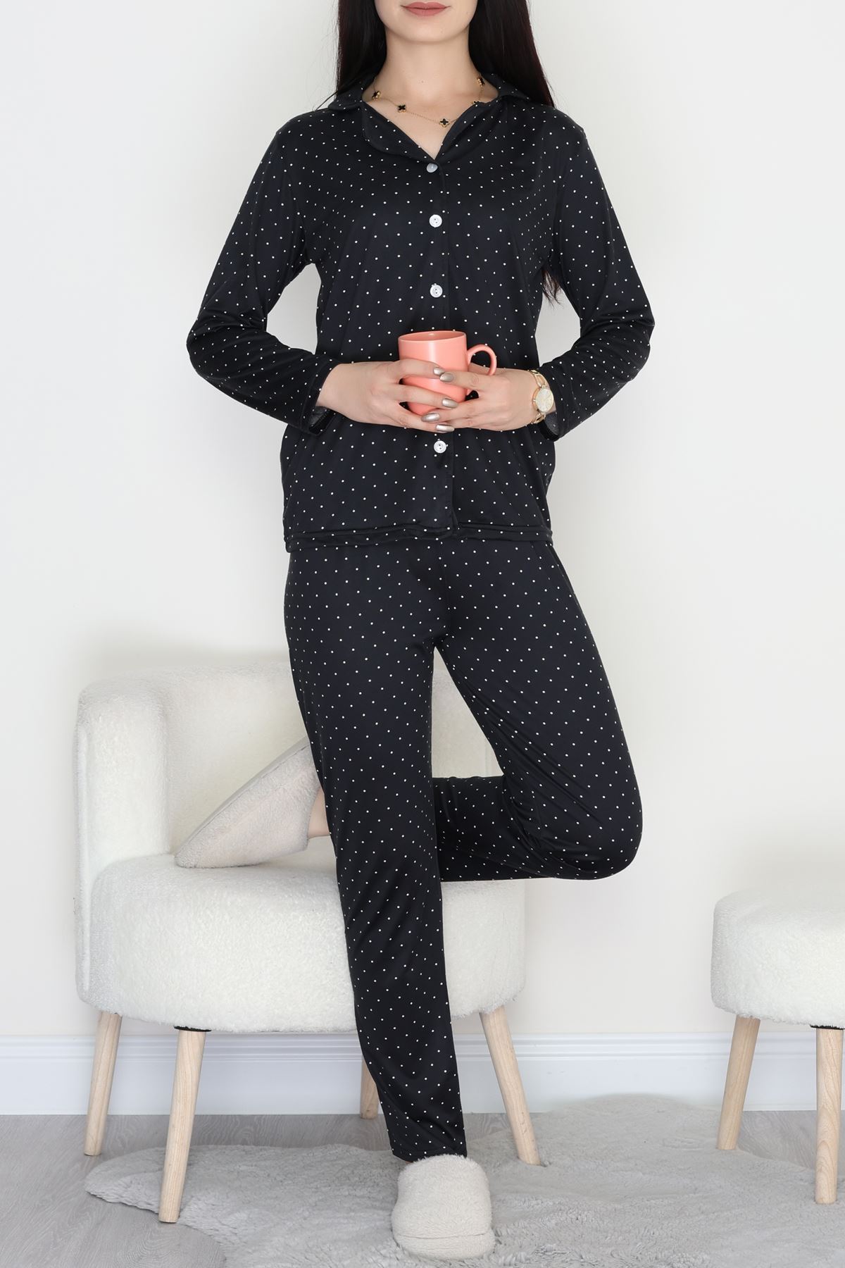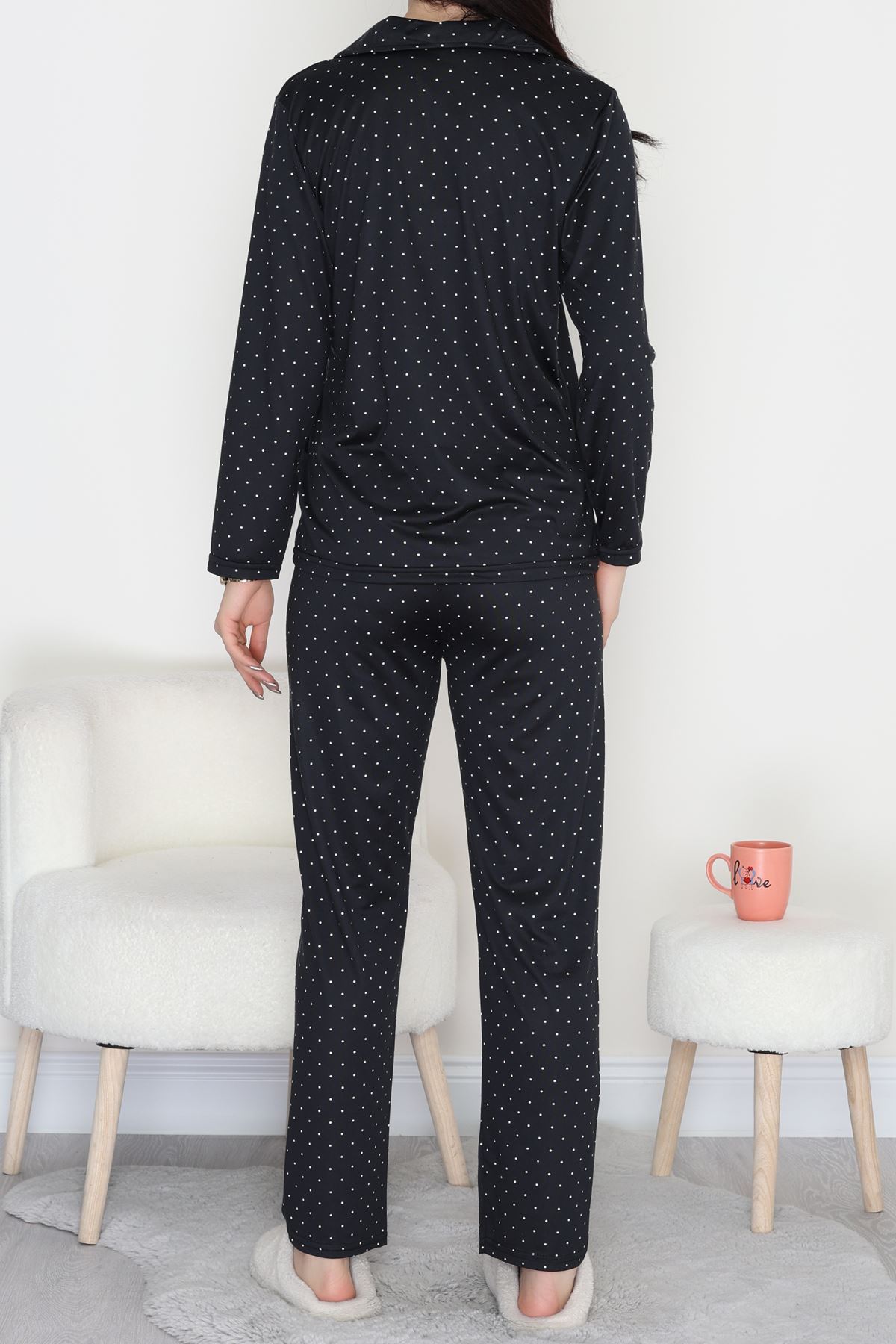 Milan Düğmeli Pijama Takımı Siyahpuantiye - 50870.1857.