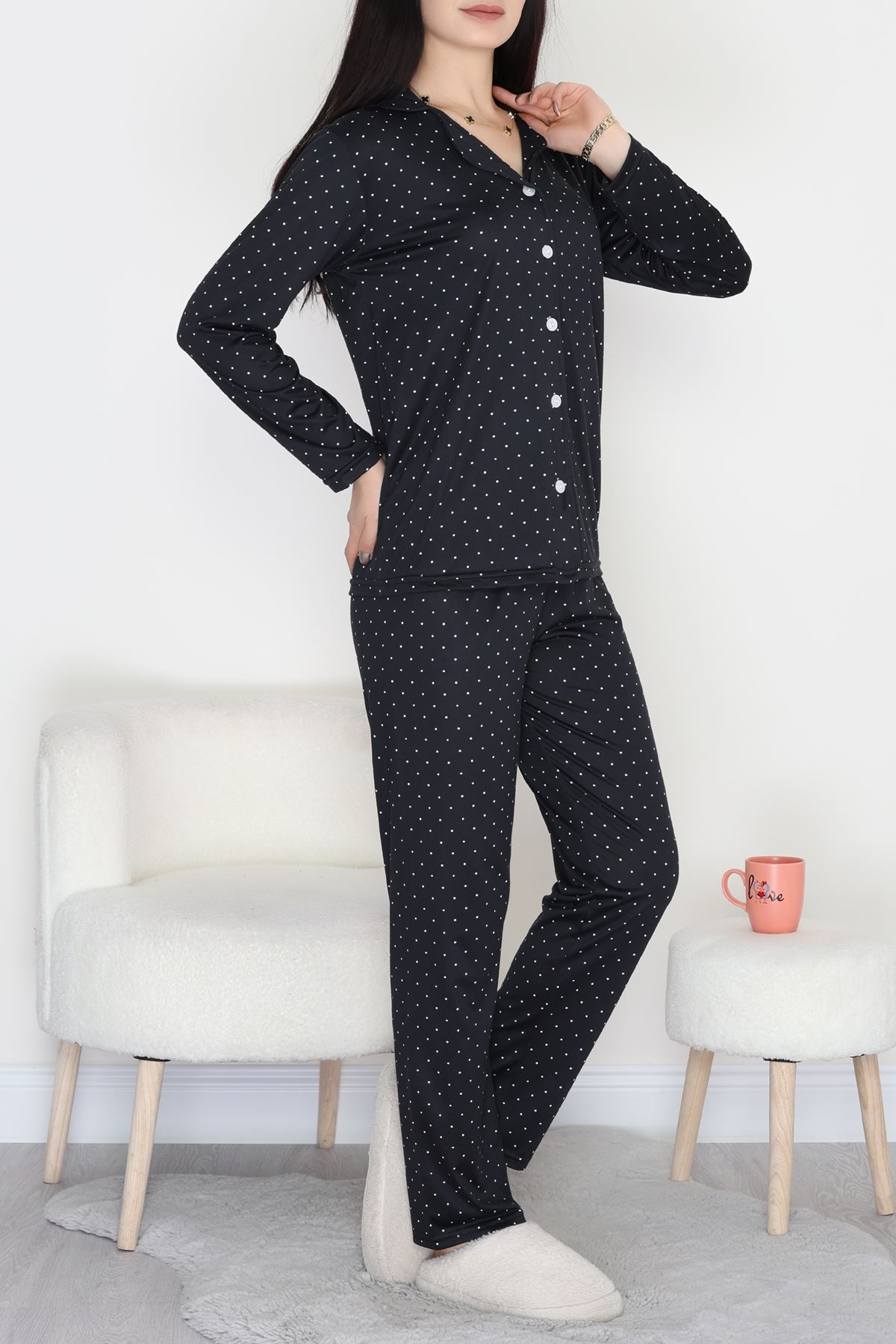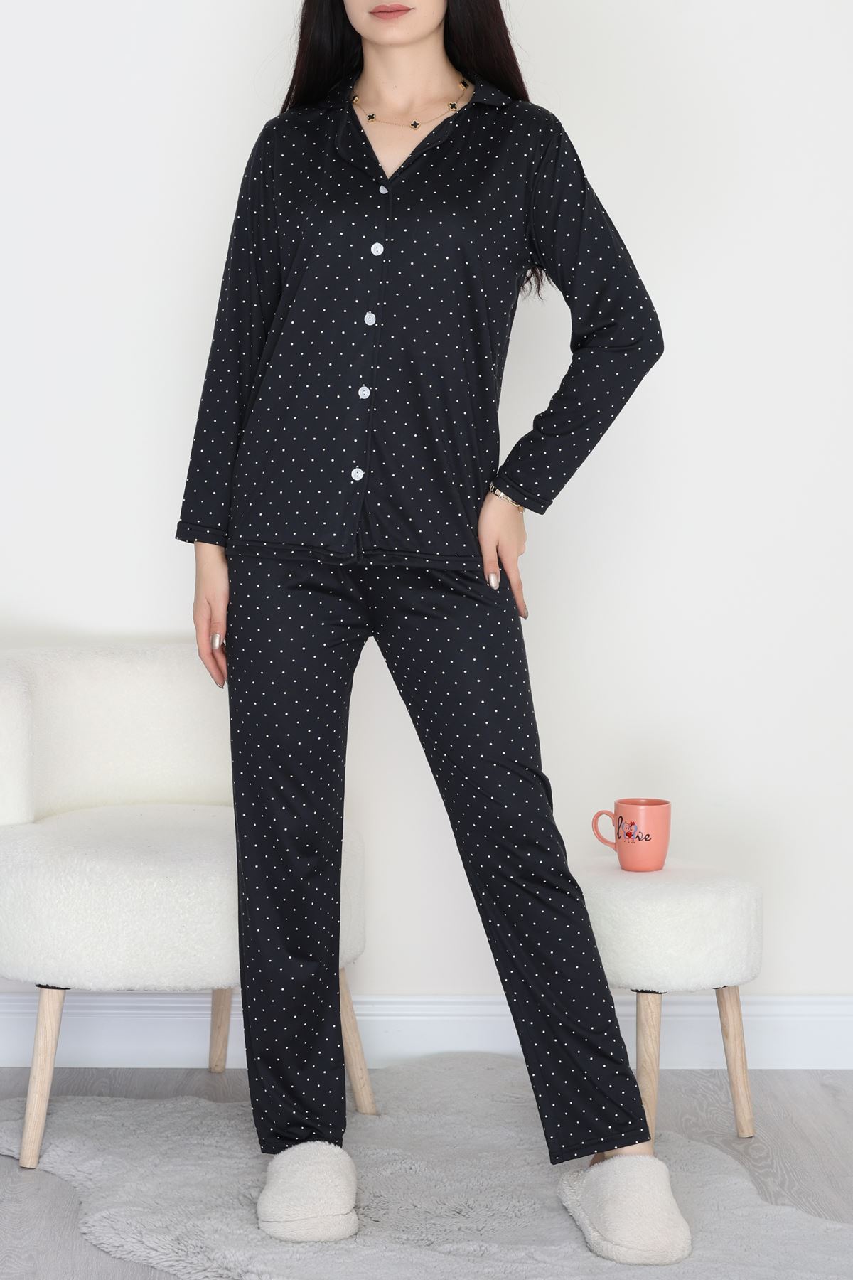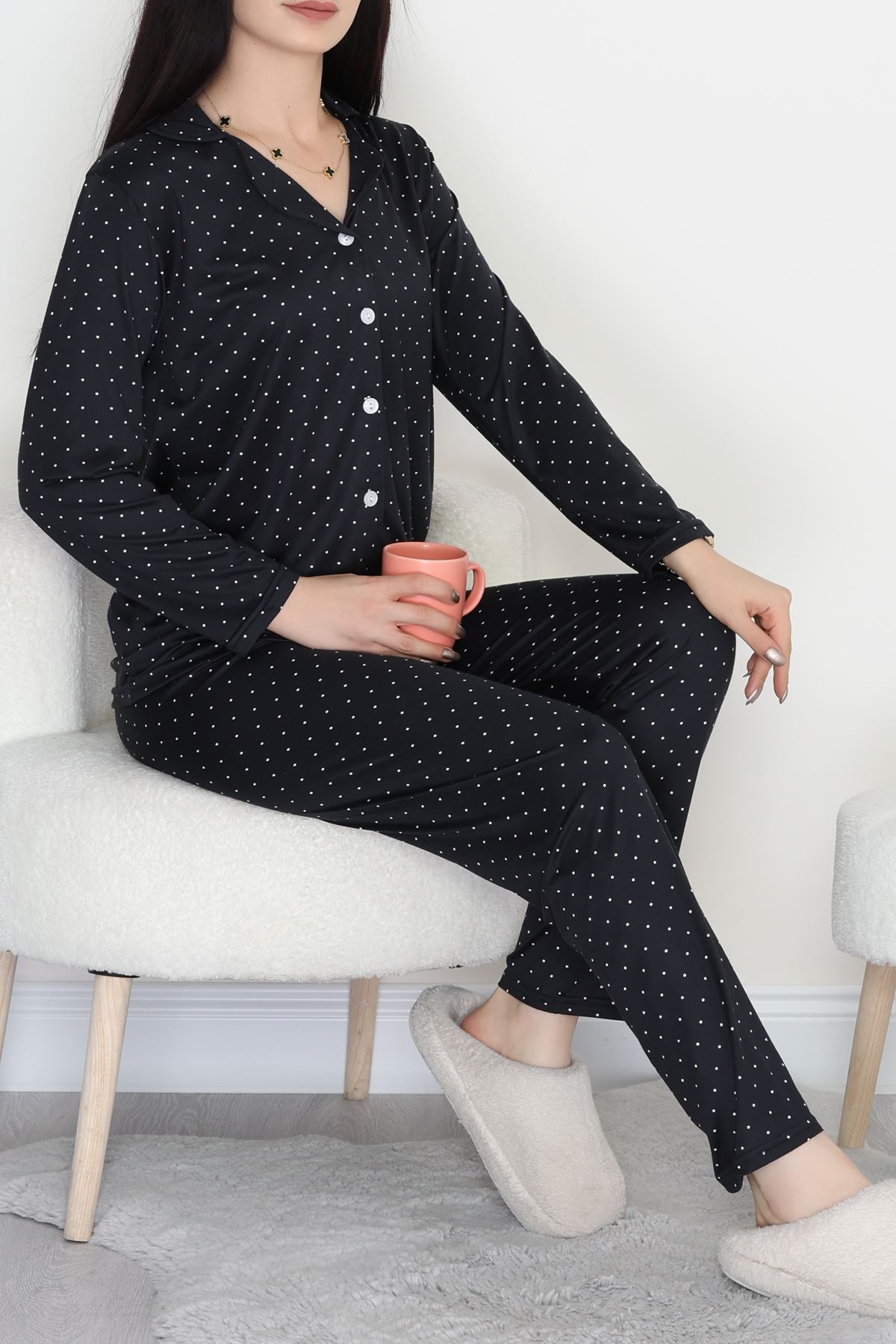 Milan Düğmeli Pijama Takımı Siyahpuantiye - 50870.1857.