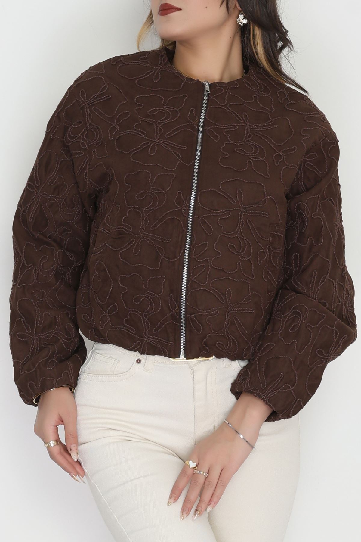 Nakış Detaylı Astarlı Bomber Ceket Kahve - 31634.439.