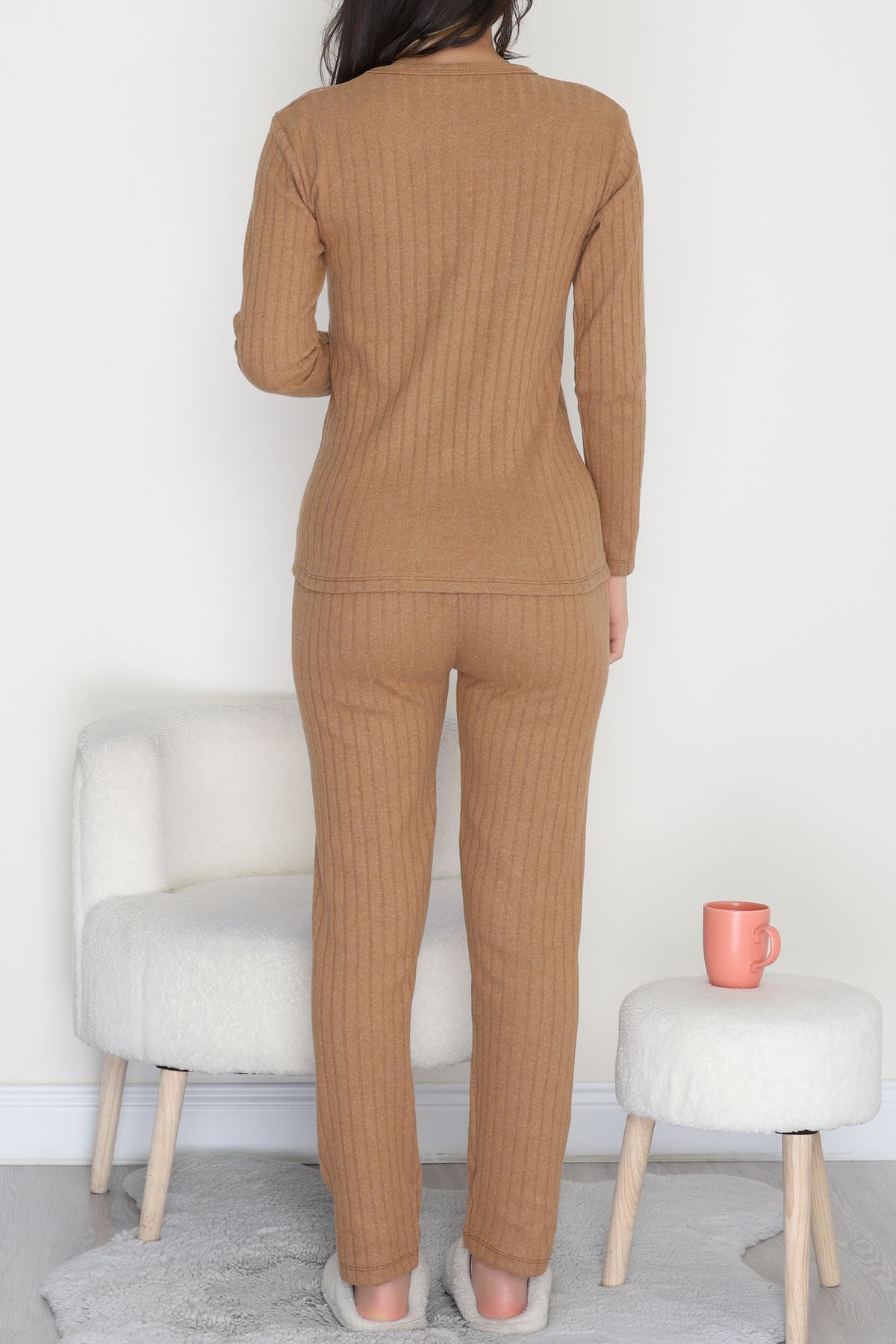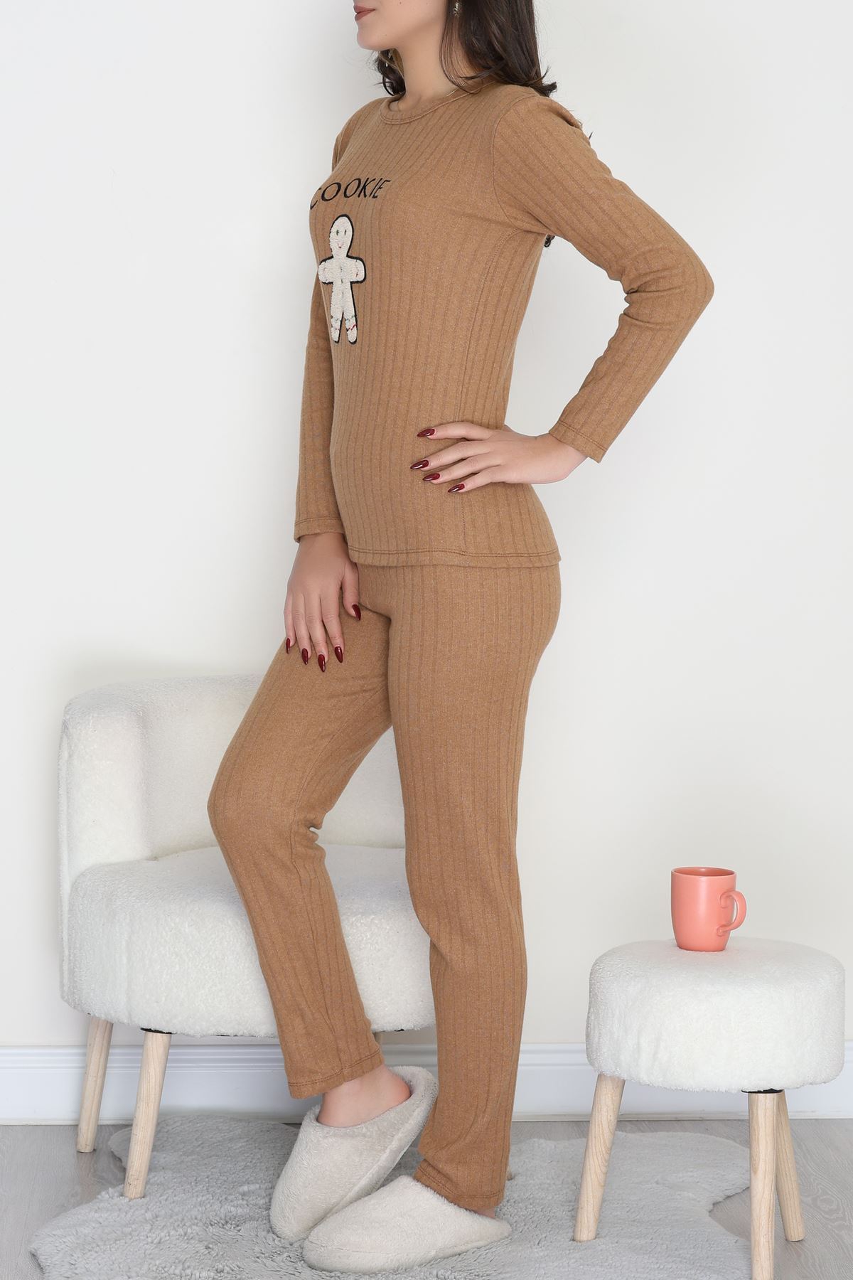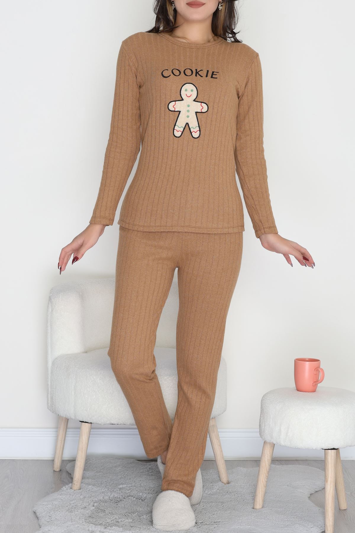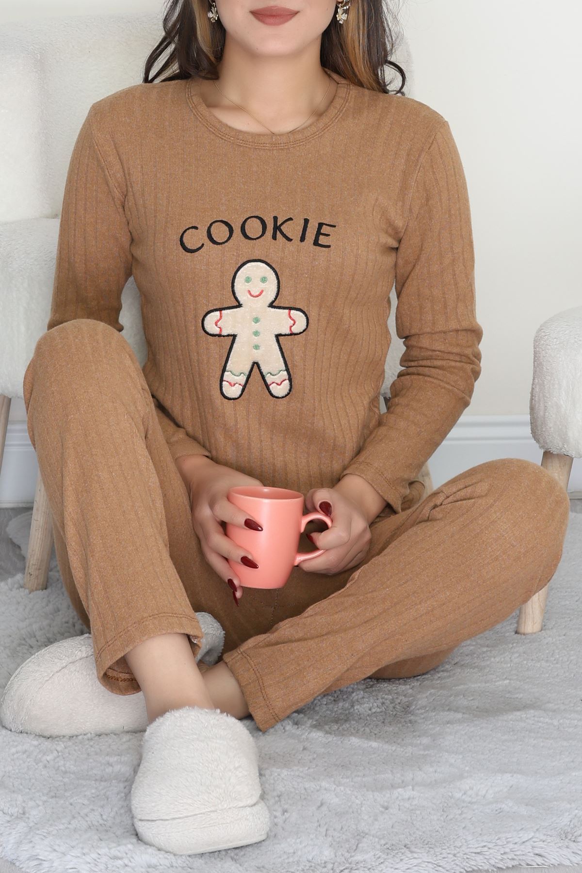 Nakışlı İnterlok Pijama Takımı Kahvekurabiye - 800.1287.