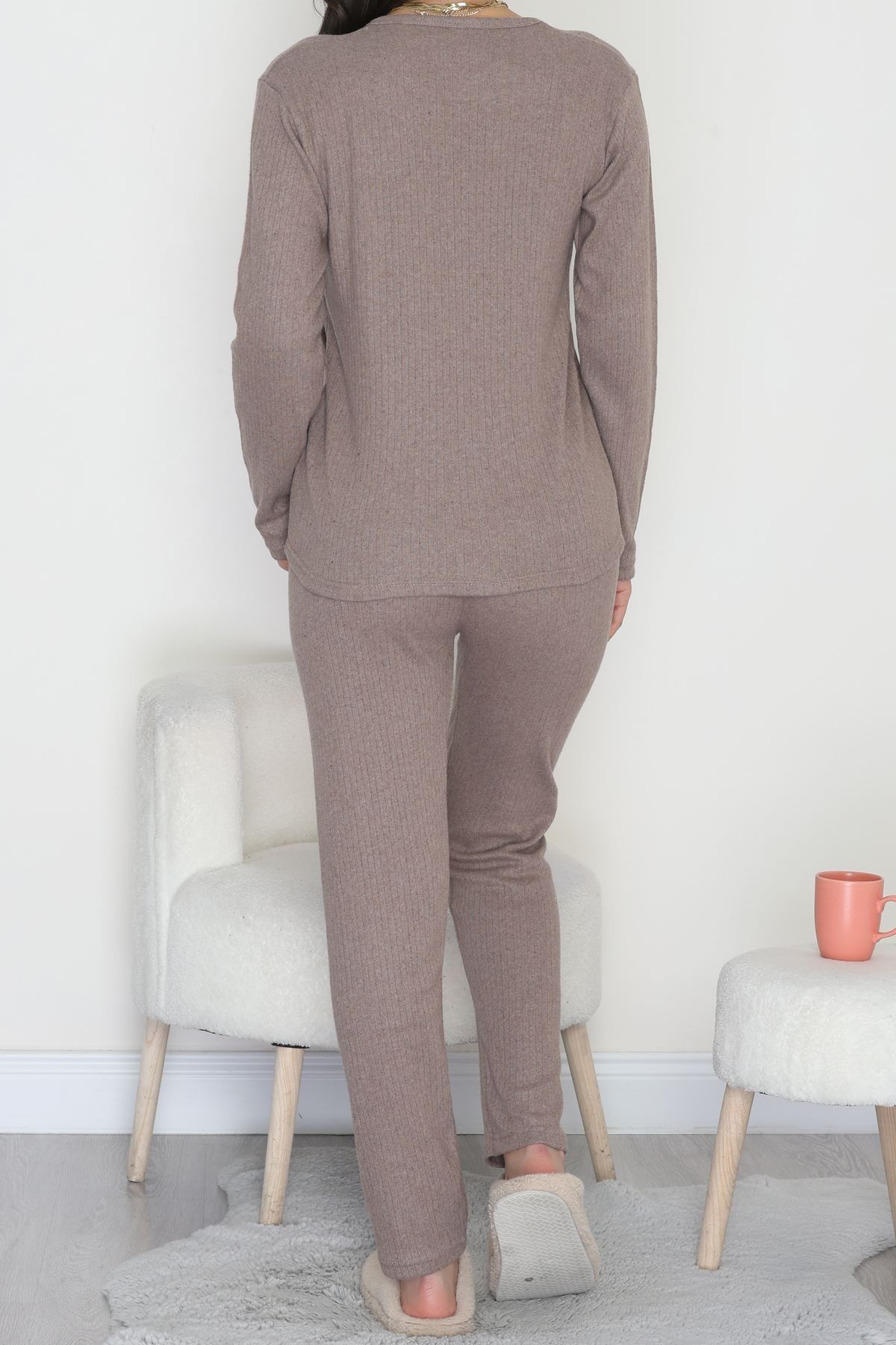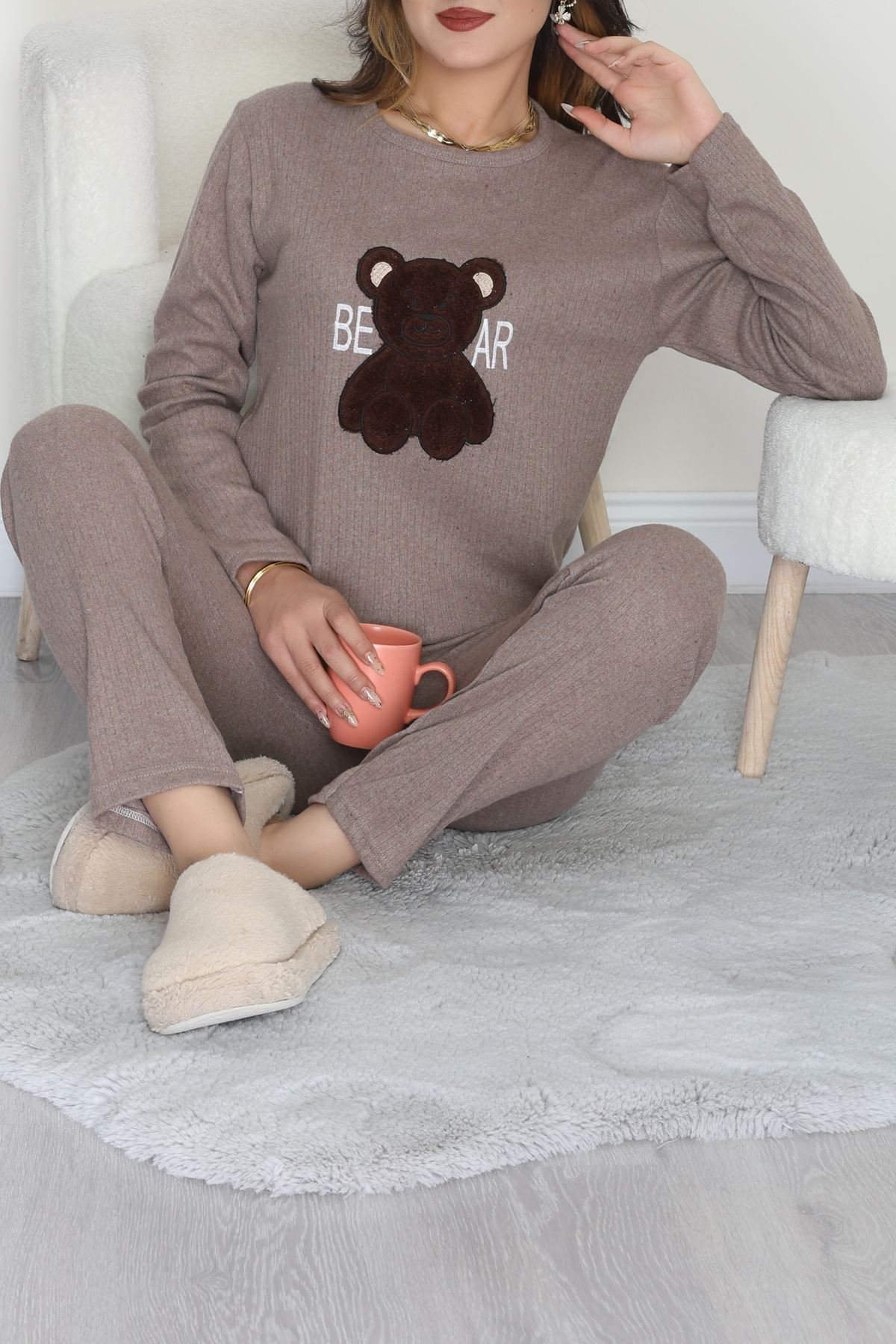 Nakışlı İnterlok Pijama Takımı Vizonkahve - 800.1287.