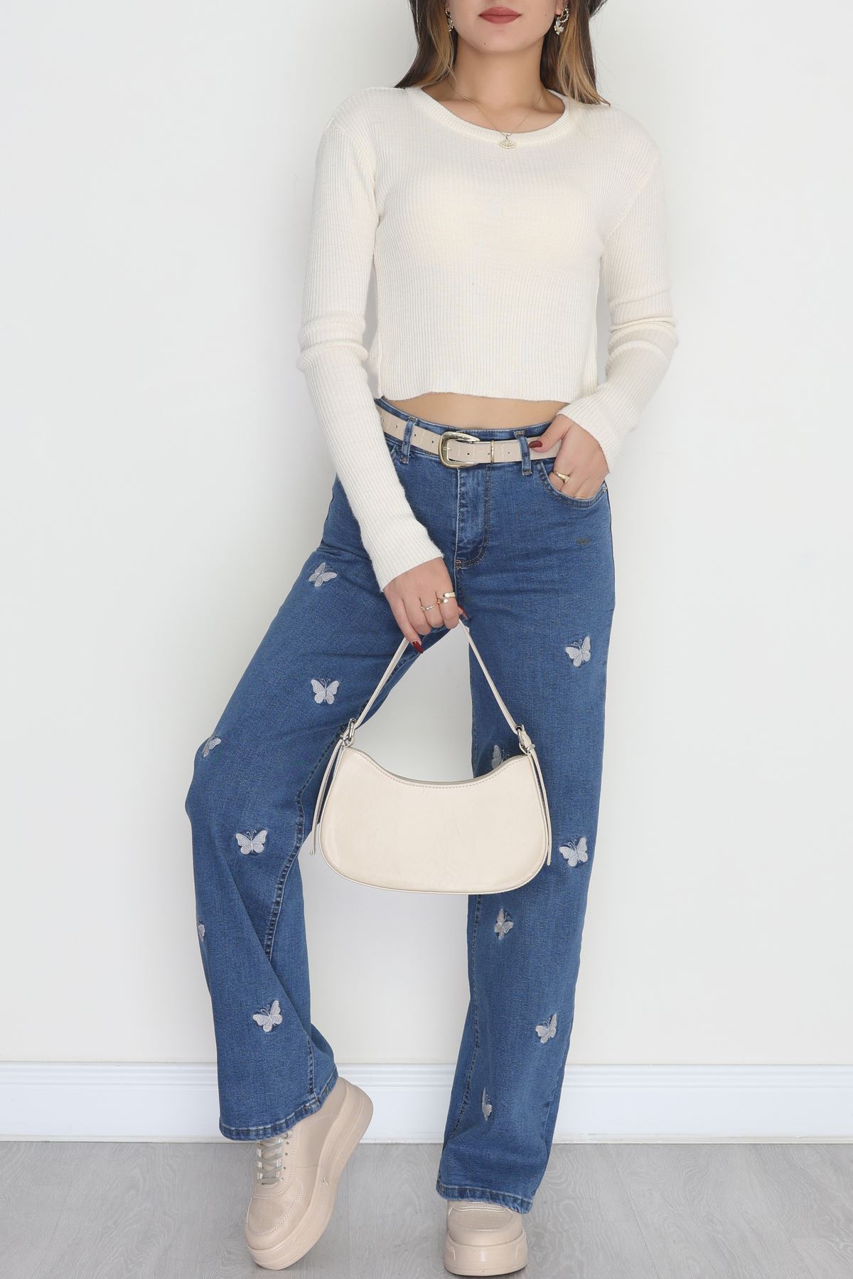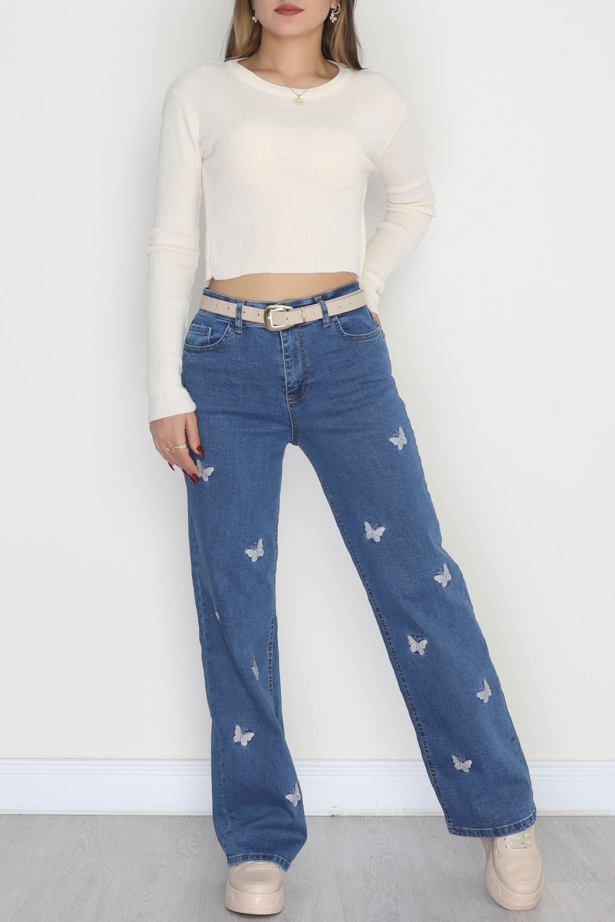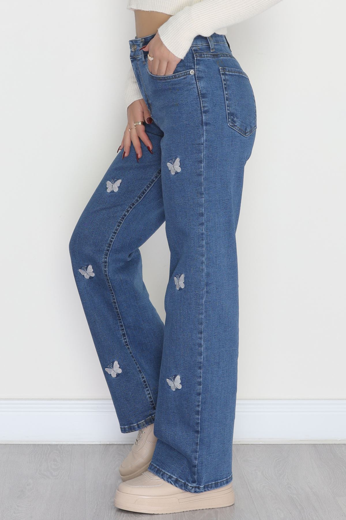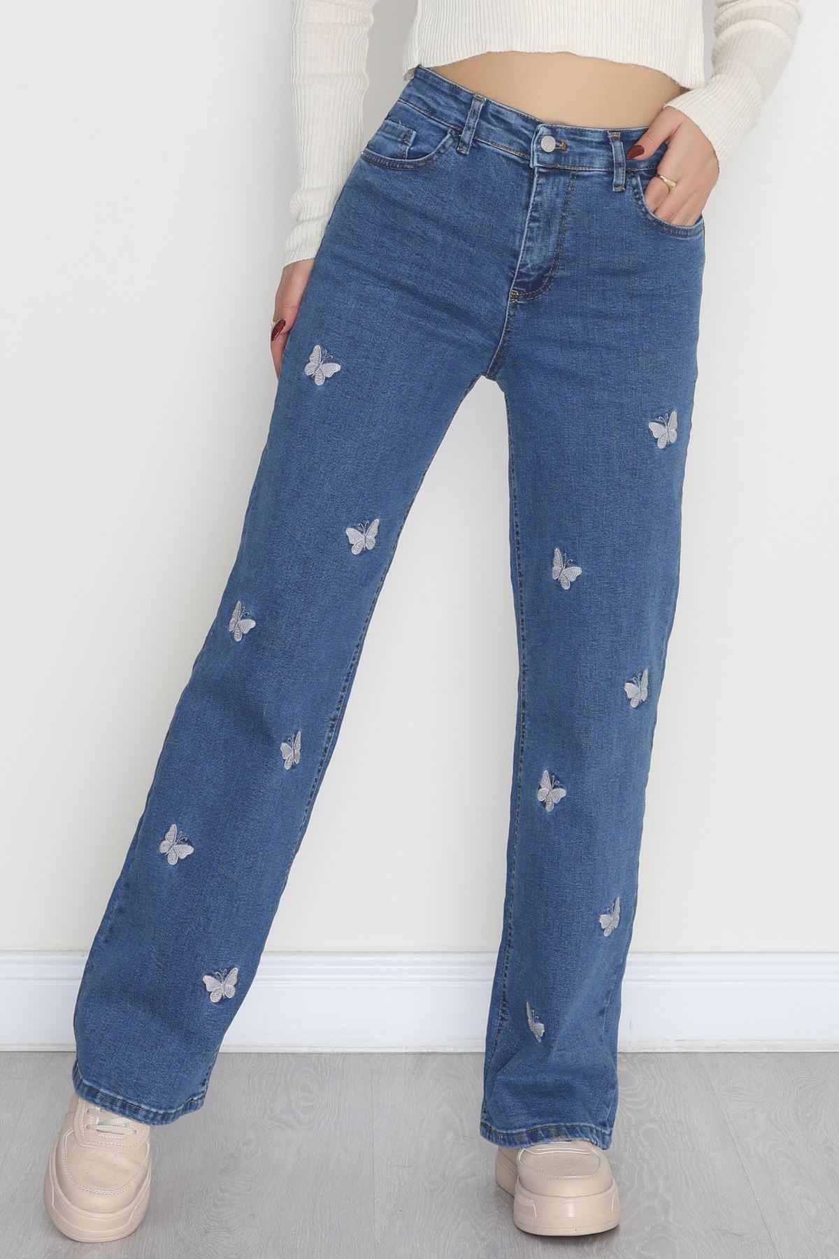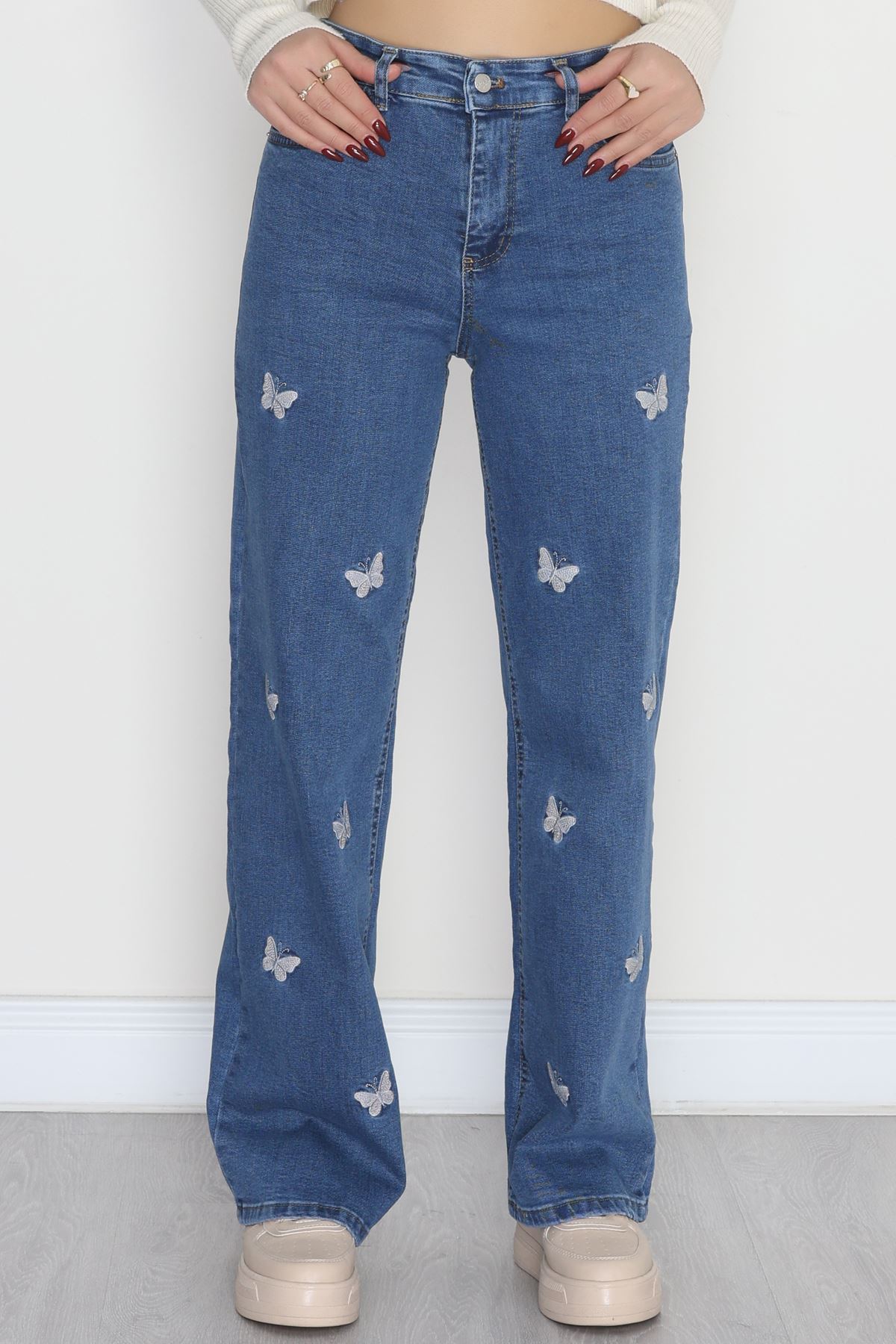 Nakışlı Palazzo Kot Pantolon Mavi - 31372.2001.