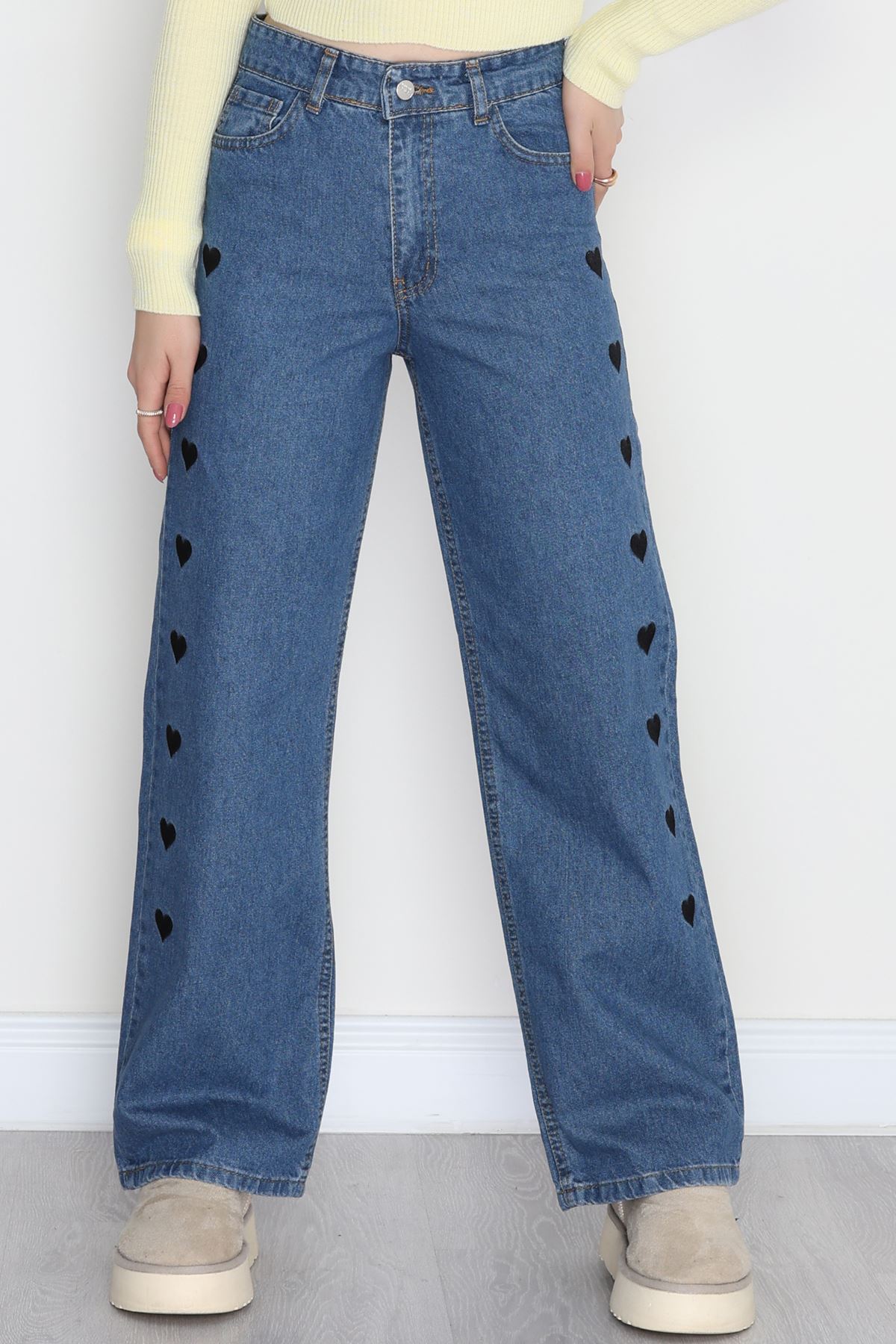 Nakışlı Palazzo Kot Pantolon Mavi2 - 31324.2001.