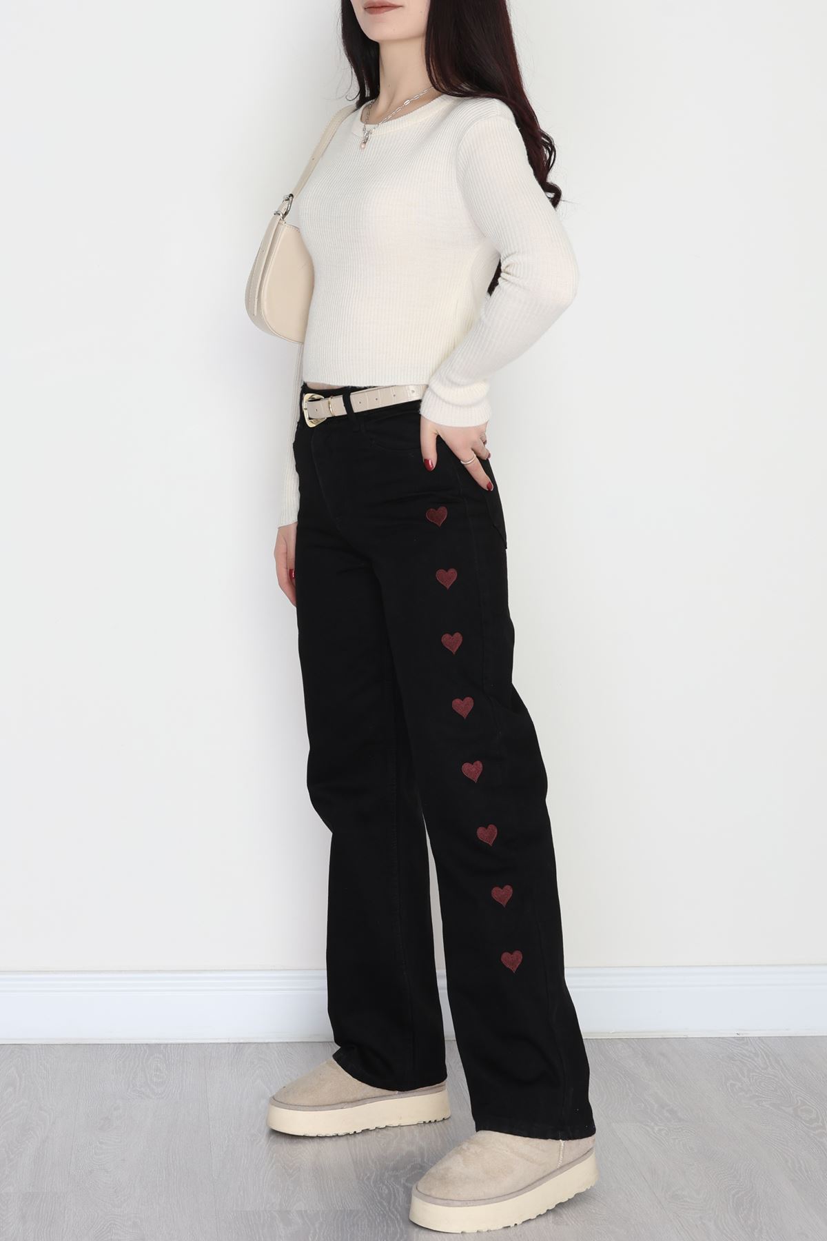 Nakışlı Palazzo Kot Pantolon Siyahbordo - 31324.2001.