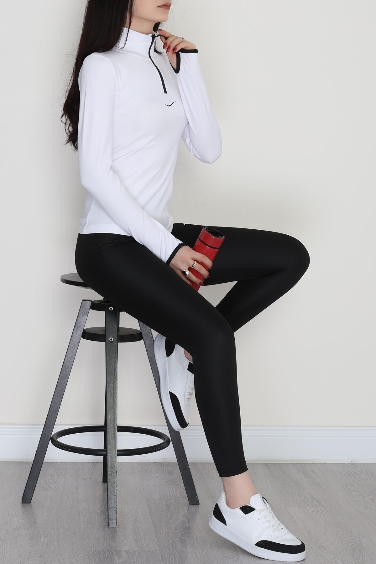 Parmak Geçmeli U Yaka Raporlu İnterlok Takım Siyah - 90975.1748.