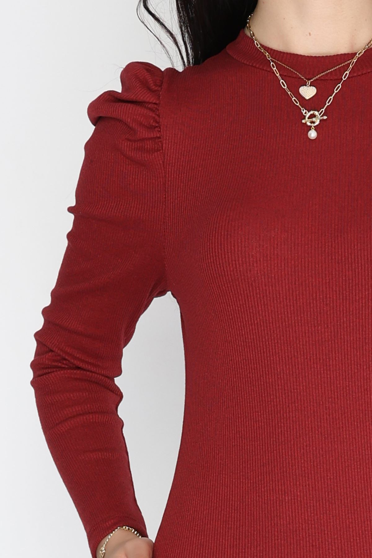 Bisiklet Yaka Triko Elbise Bordo - 4026.2043.