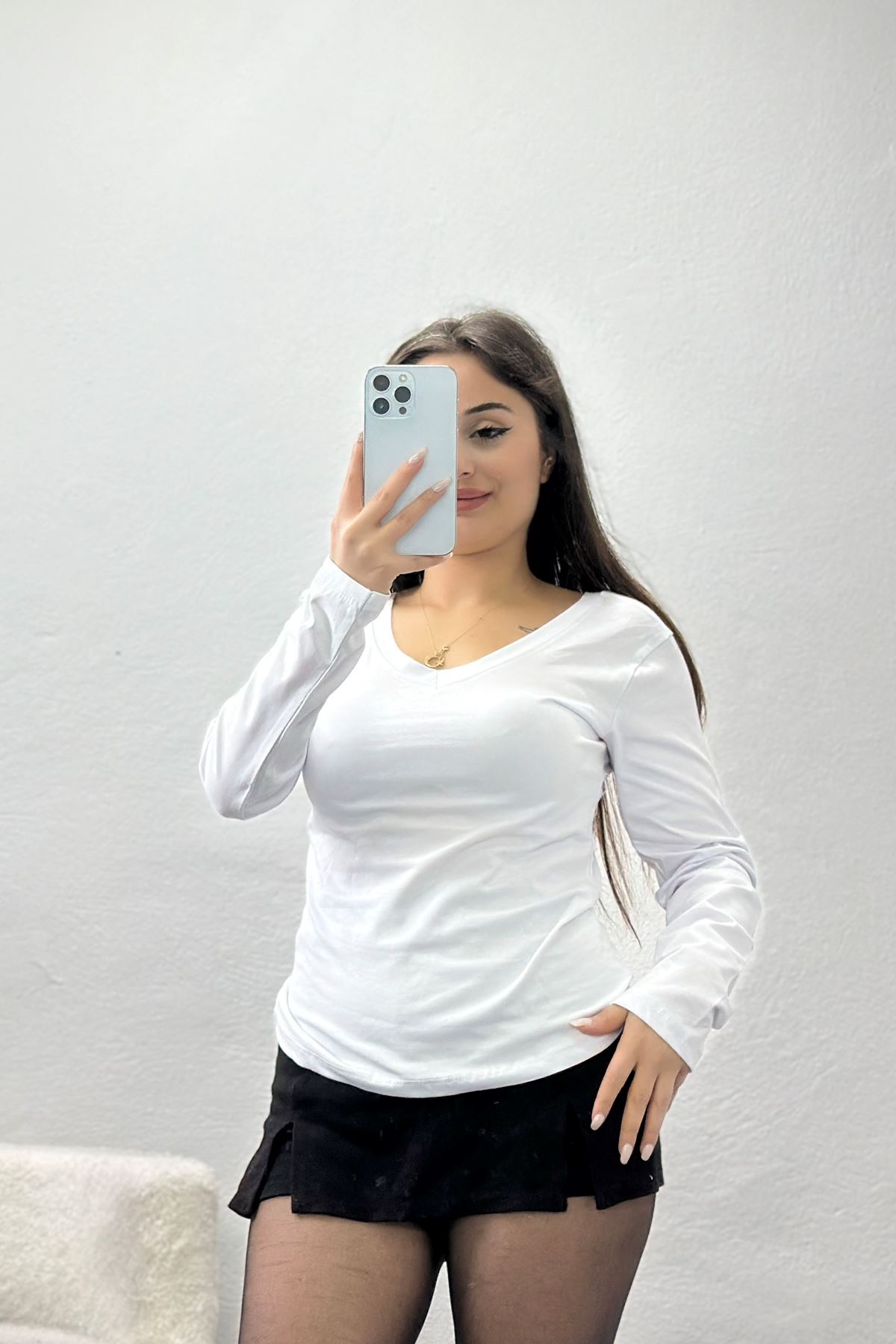 Ön Arka V Yaka Likralı Kompak Body Beyaz - 90940.1878.