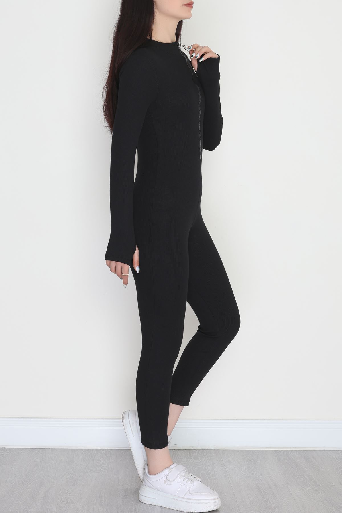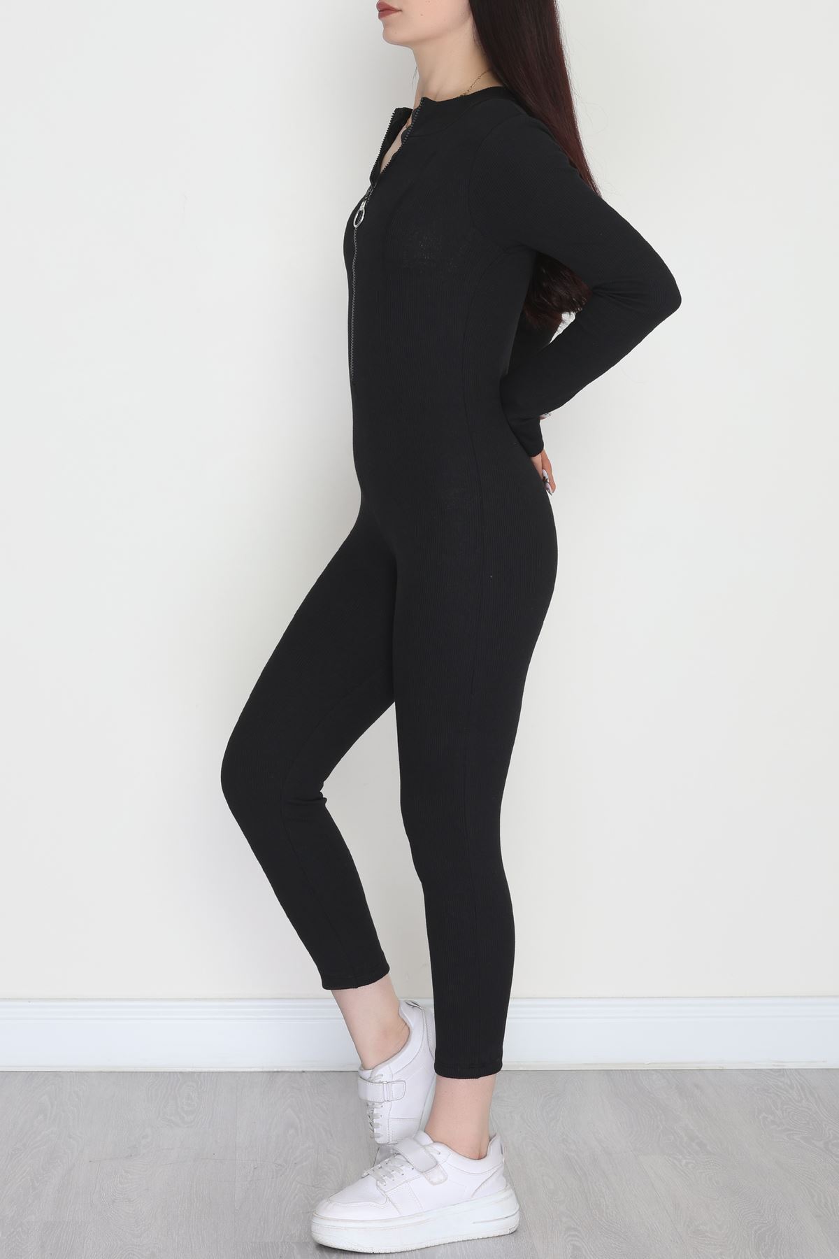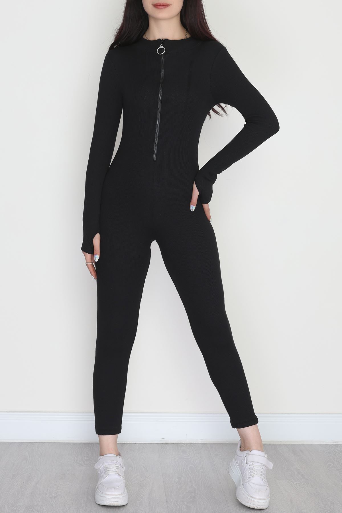 Ön Fermuar Detaylı Likralı Kaşkorse Tulum Siyah - 42620.1748.