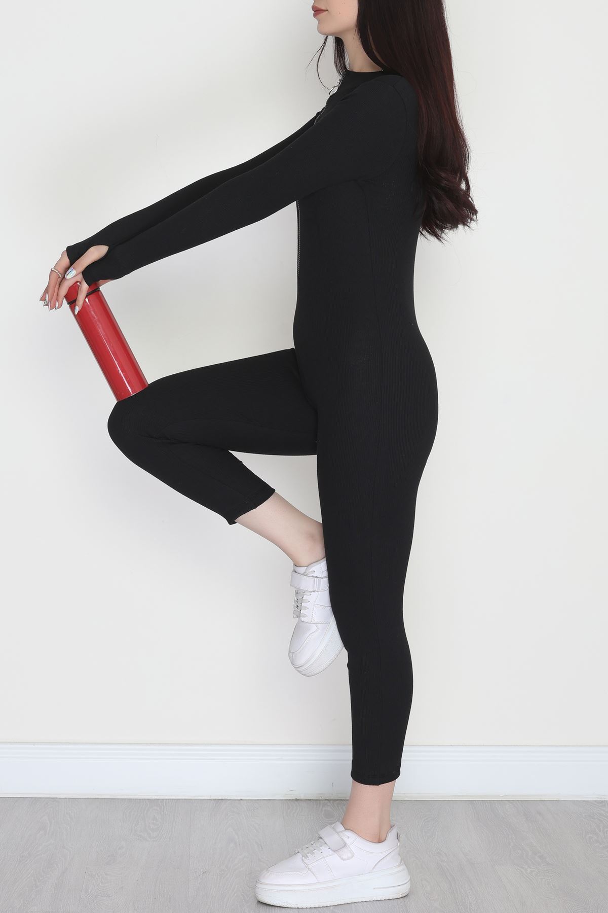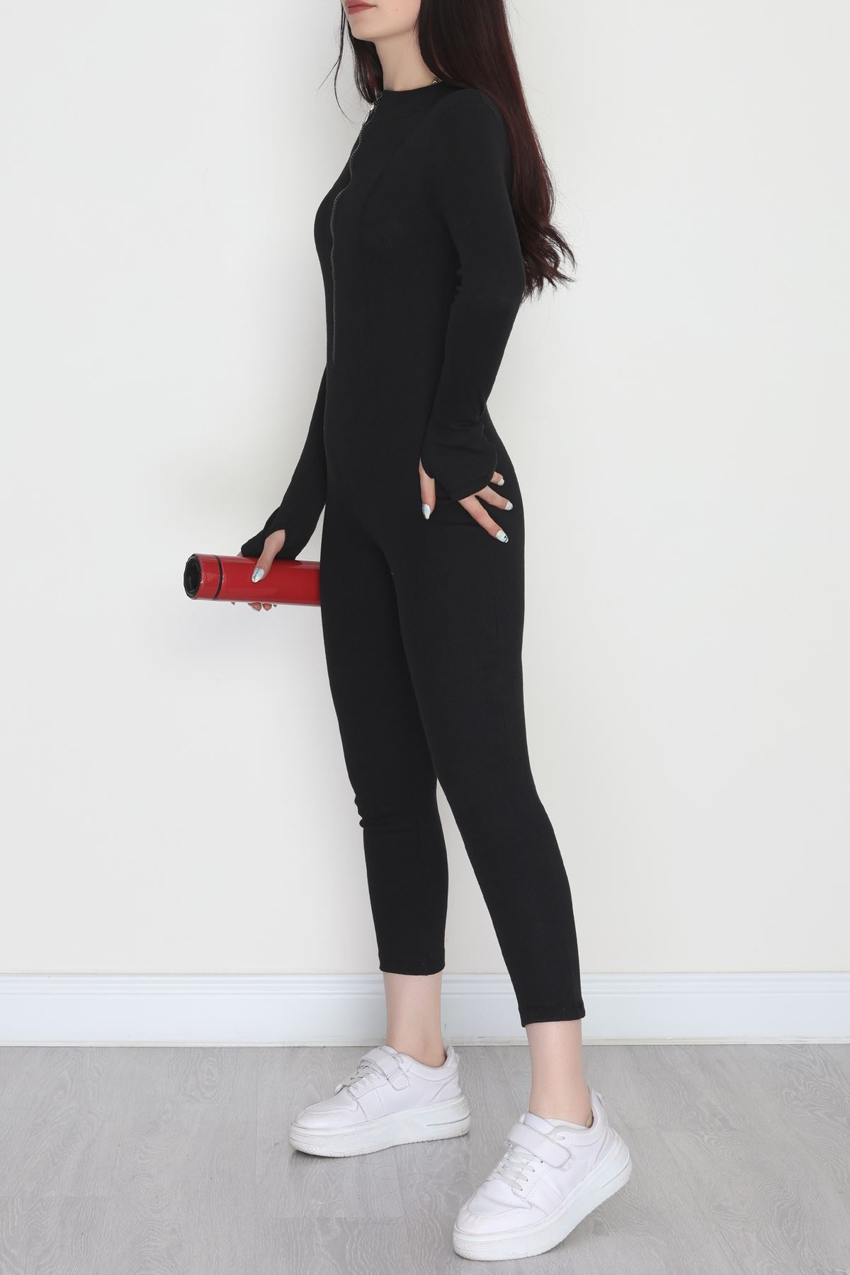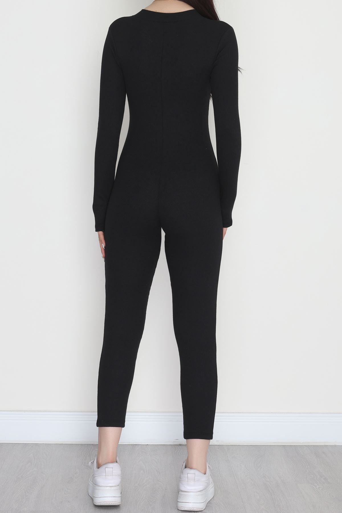Ön Fermuar Detaylı Likralı Kaşkorse Tulum Siyah - 42620.1748.