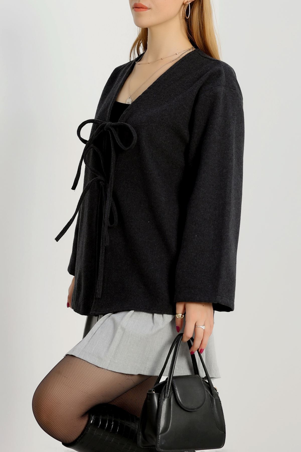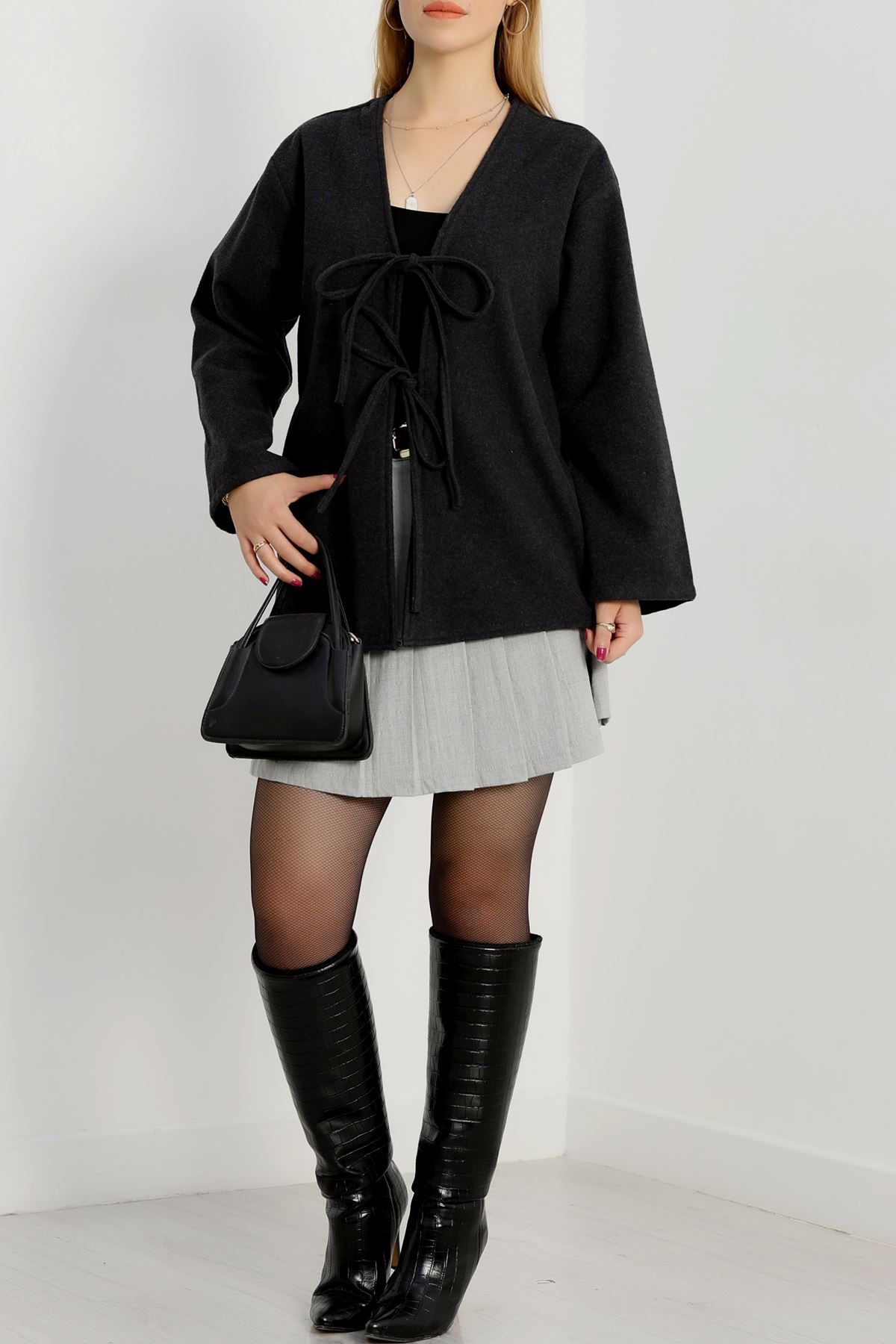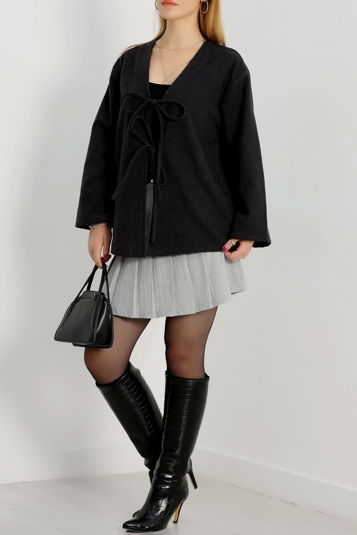 Önü Bağcıklı Kaşe Gömlek Hırka Füme - 70995.1775.