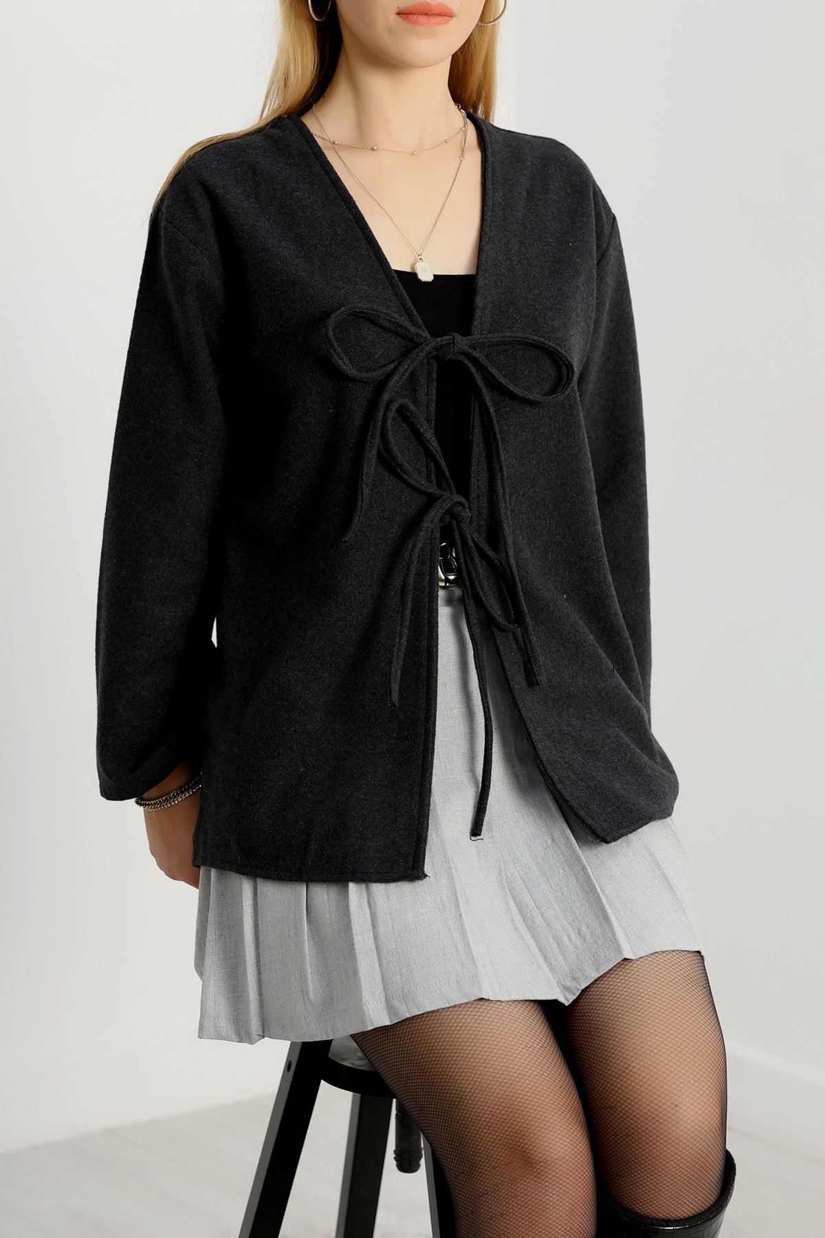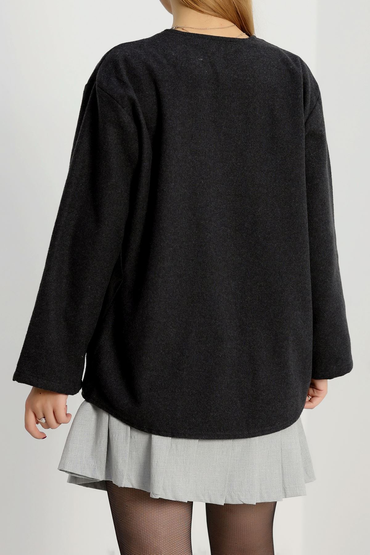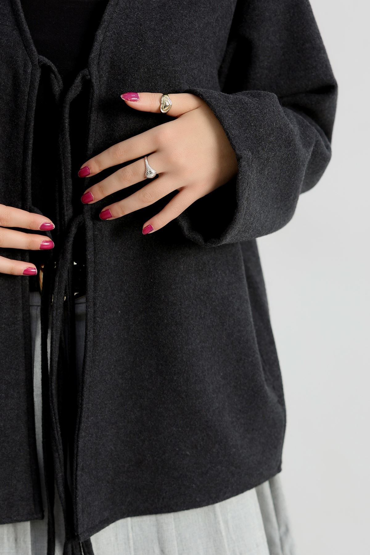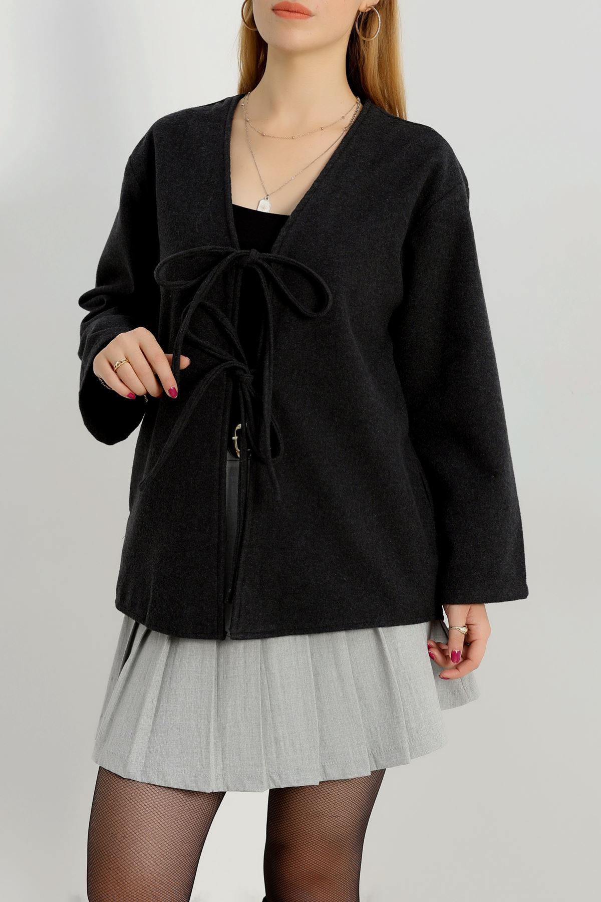 Önü Bağcıklı Kaşe Gömlek Hırka Füme - 70995.1775.