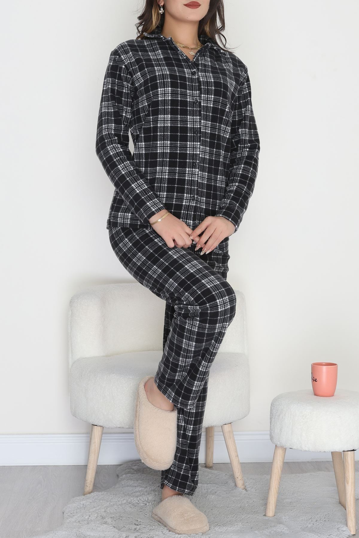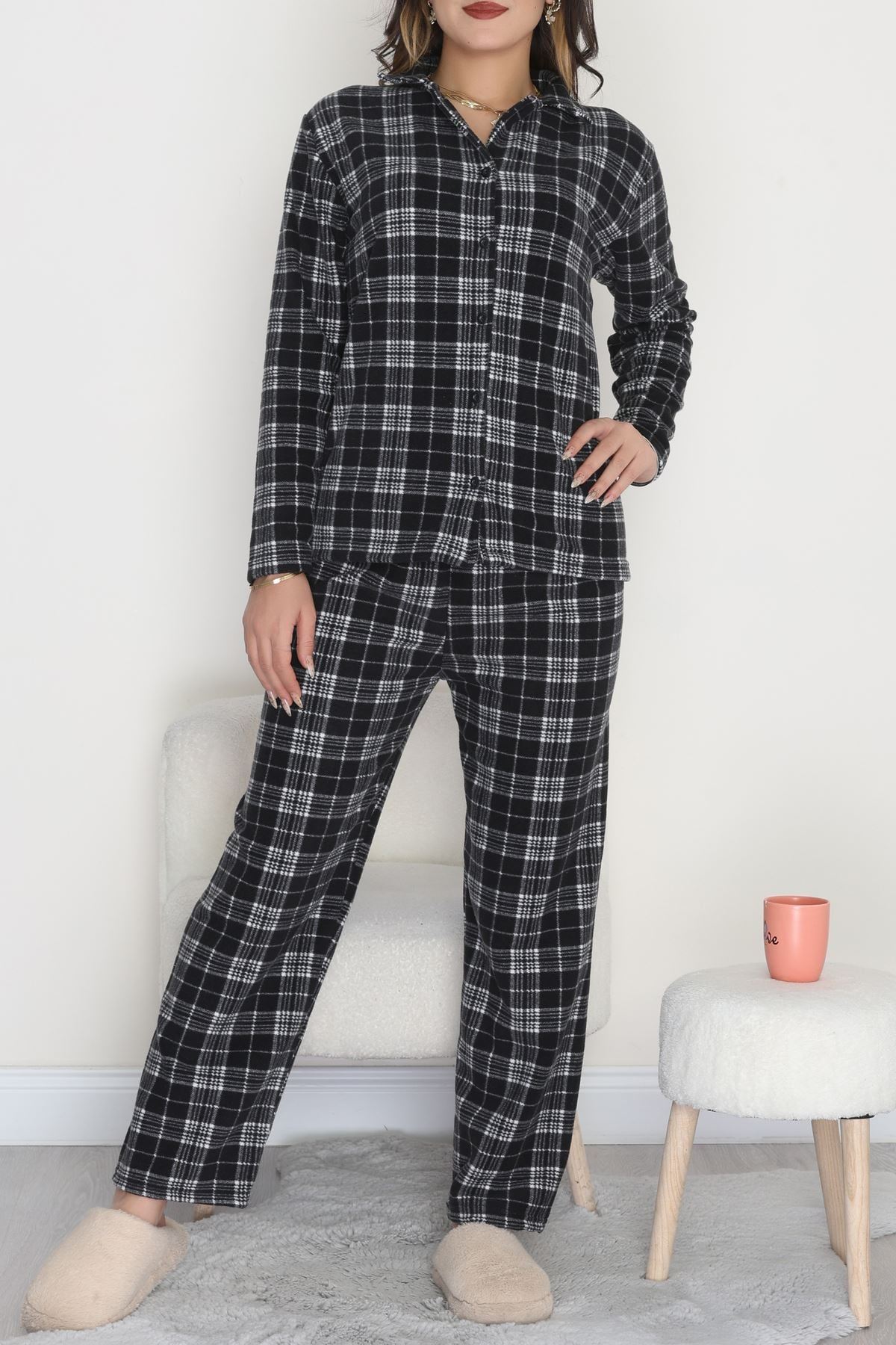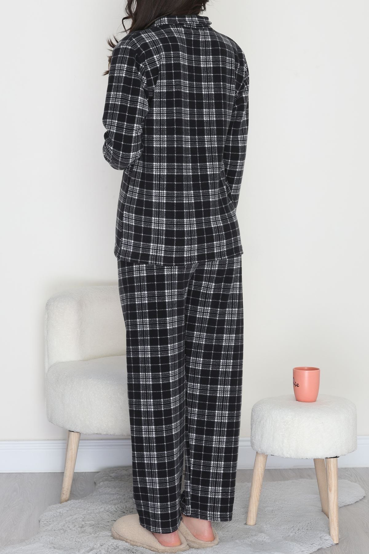 Düğmeli Süet Pijama Takımı Siyahayı - 450.1287.