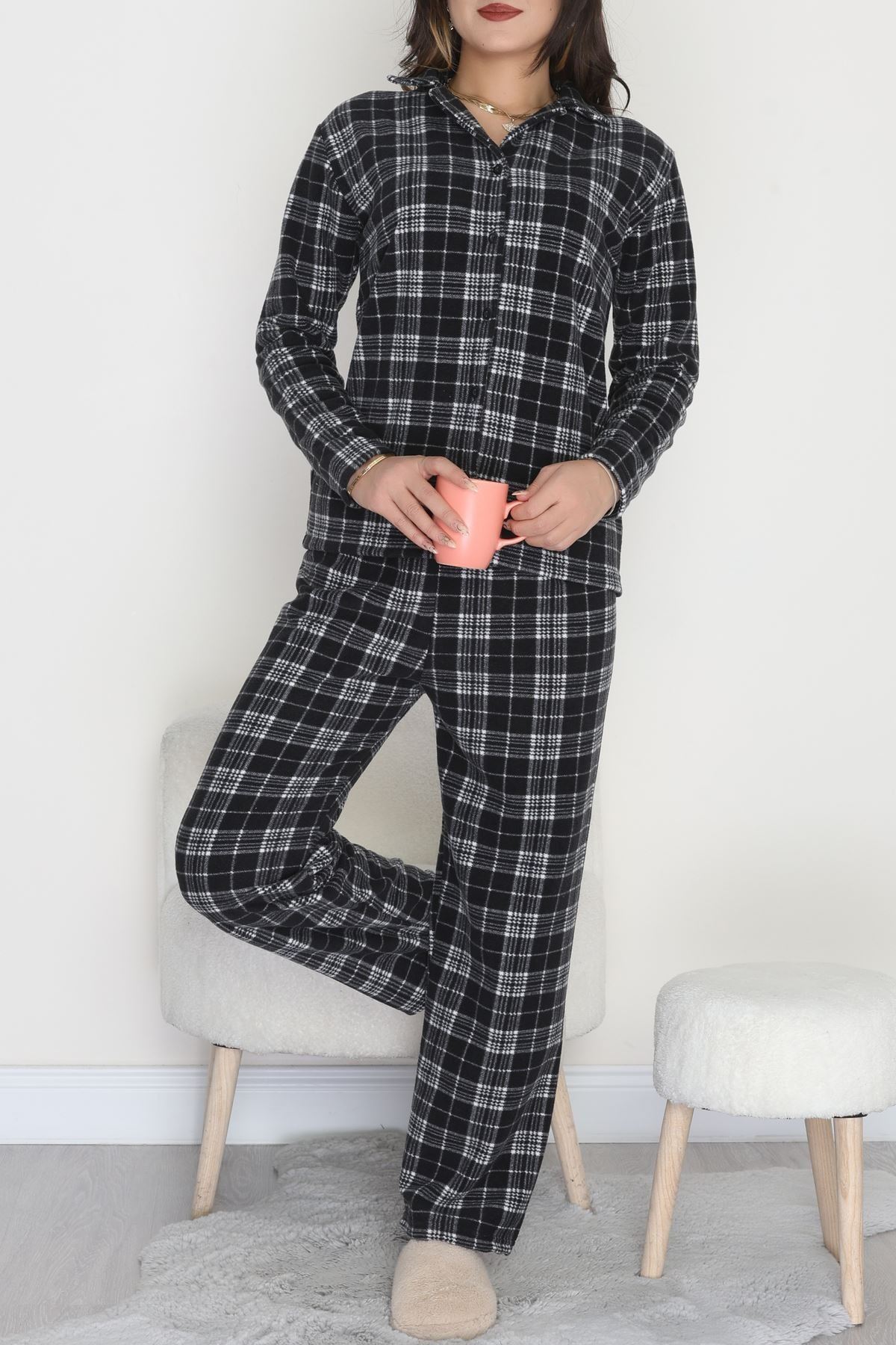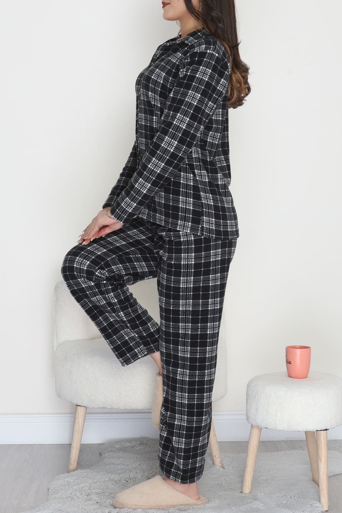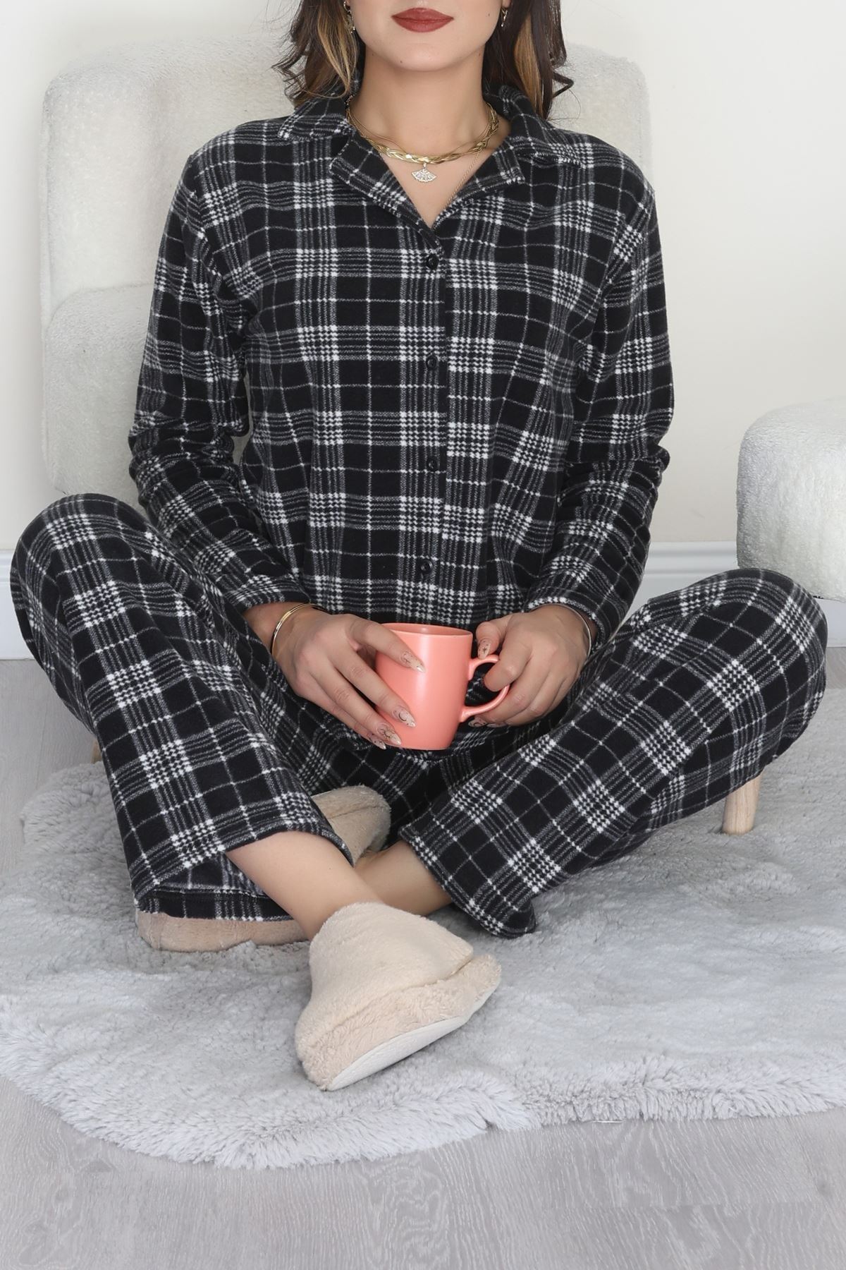 Düğmeli Süet Pijama Takımı Siyahayı - 450.1287.